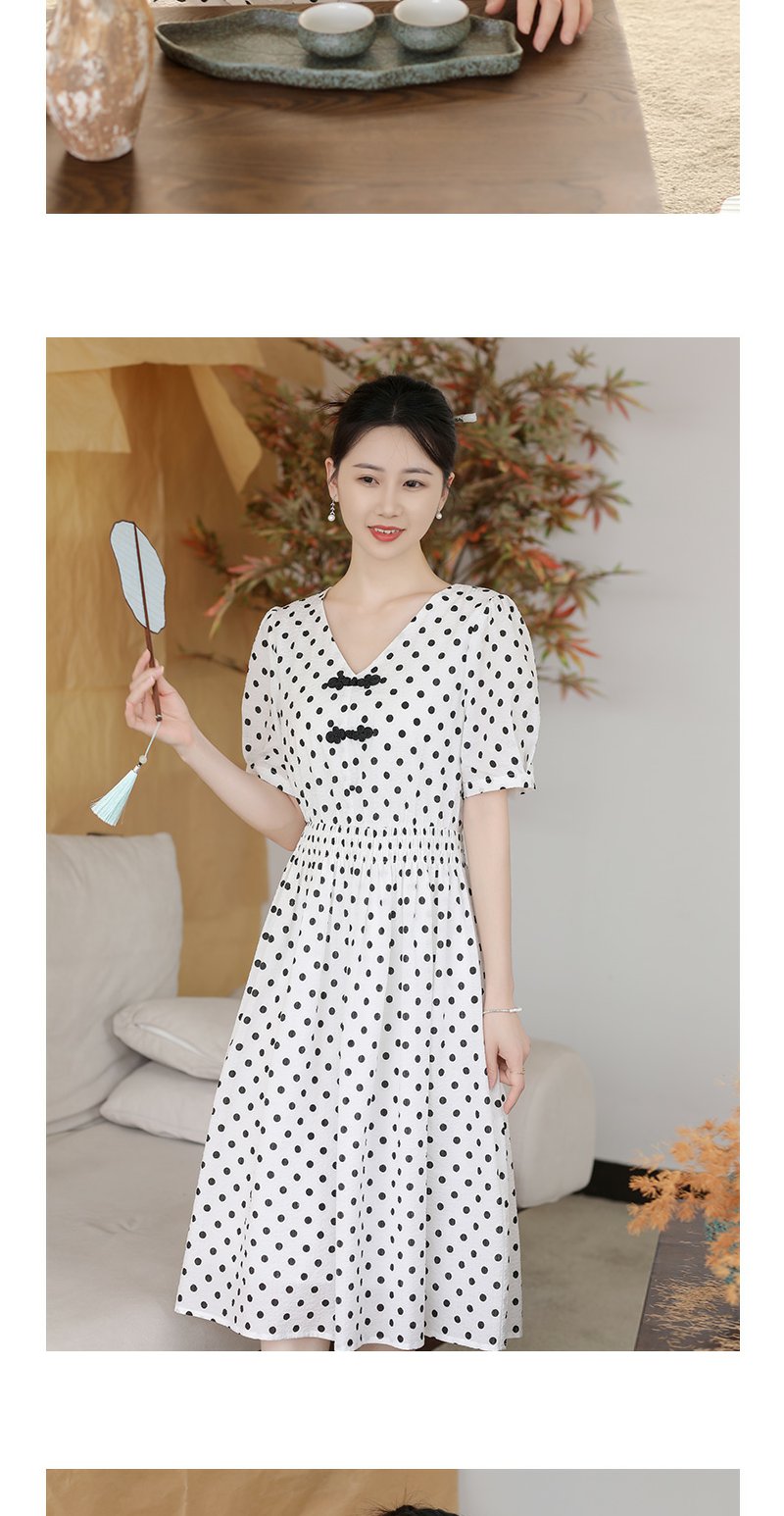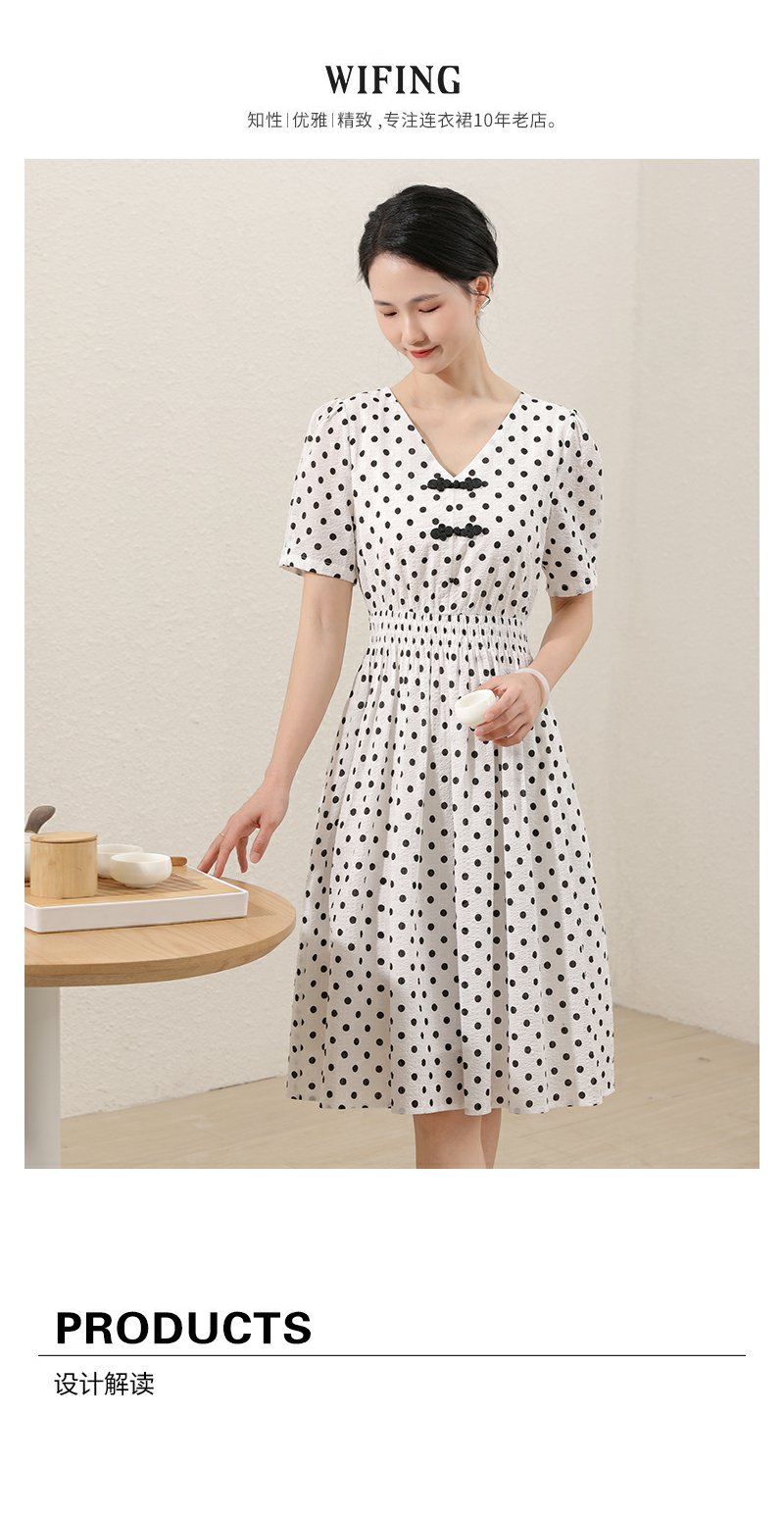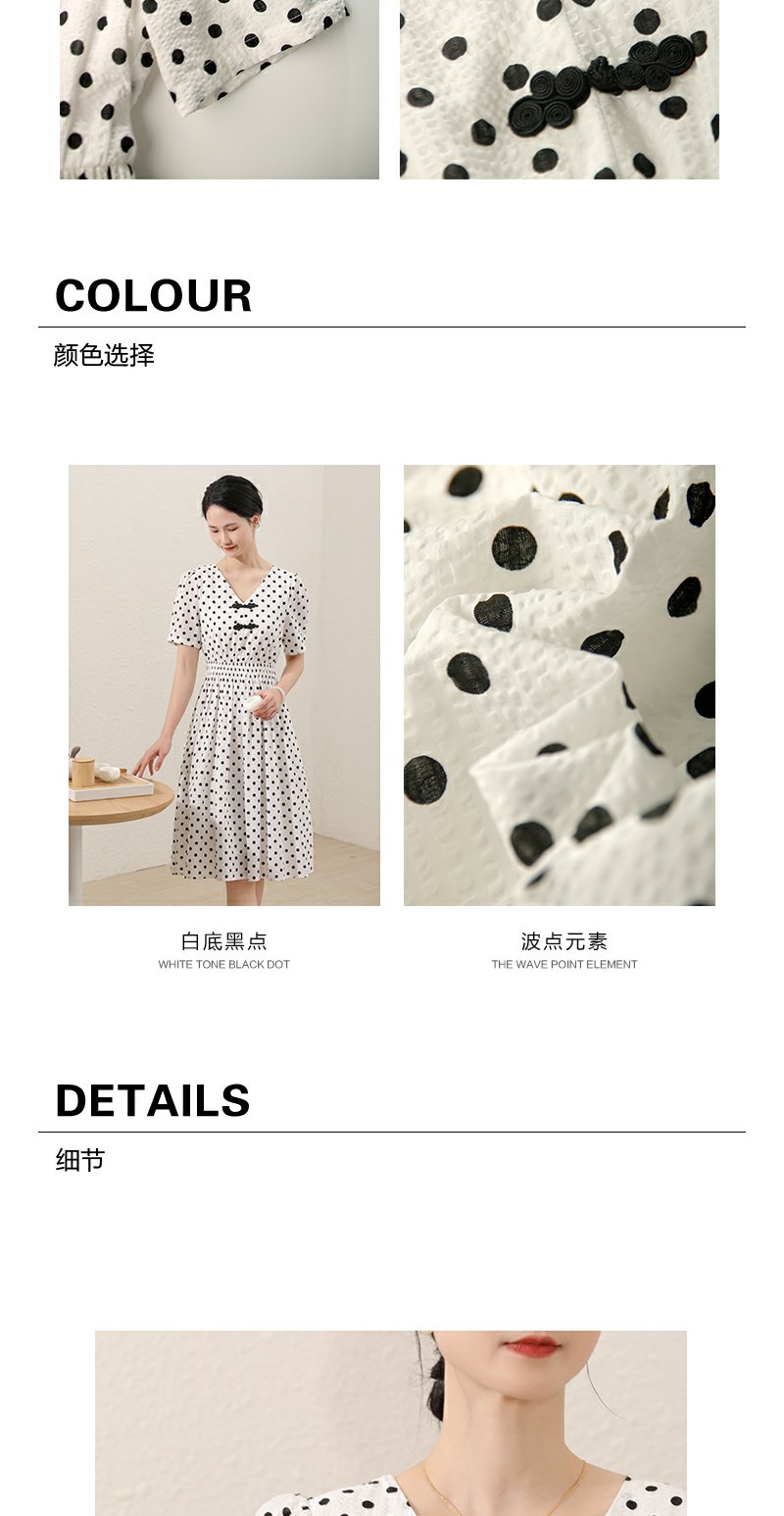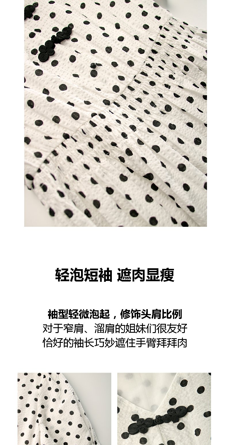 未风白色棉布新中式波点连衣裙女夏2025新款夏季气质收腰遮肚裙子