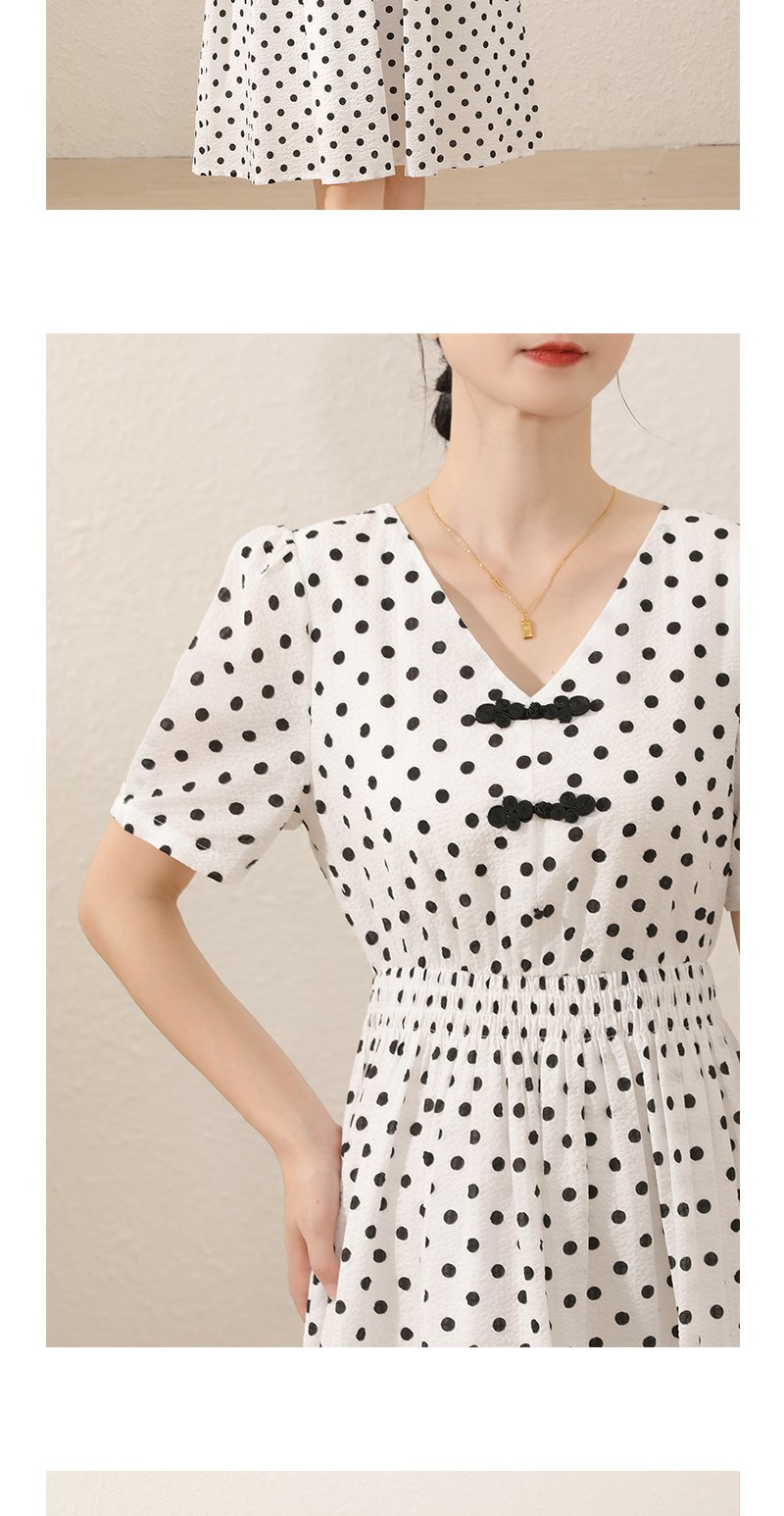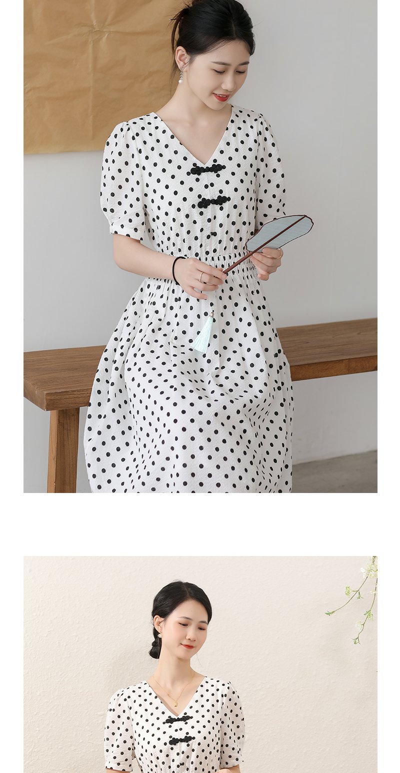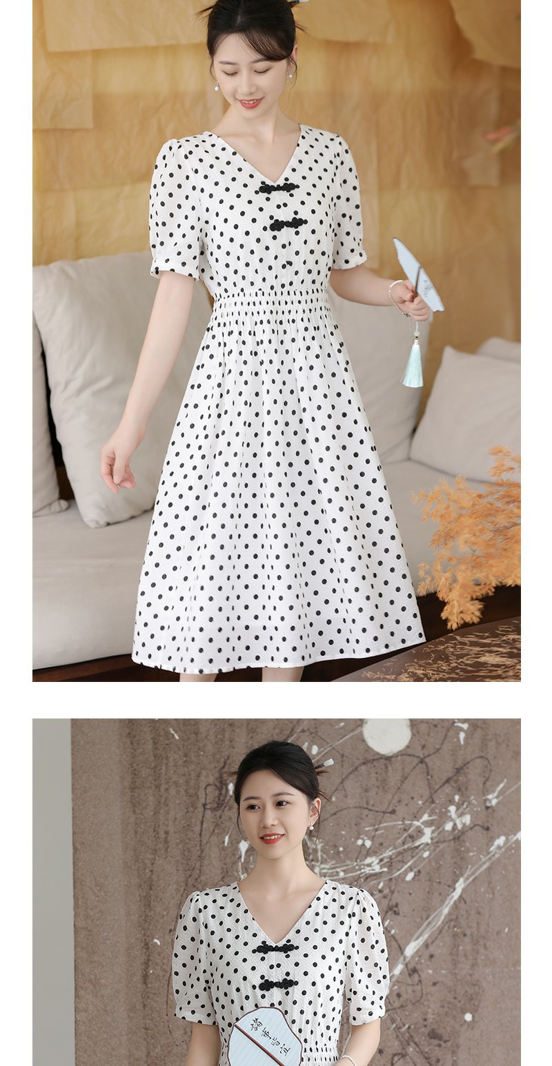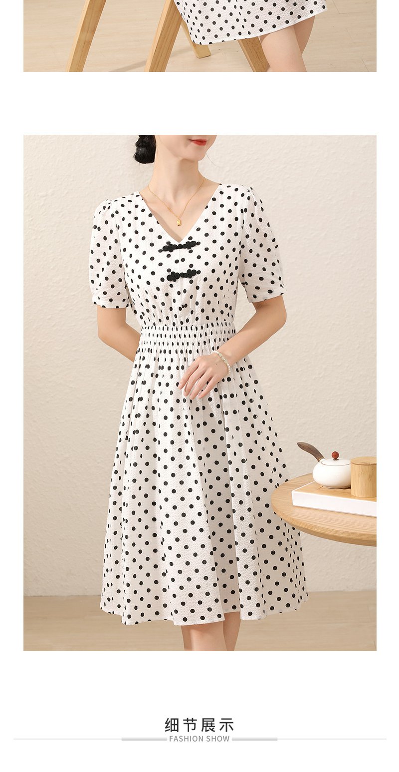 未风白色棉布新中式波点连衣裙女夏2025新款夏季气质收腰遮肚裙子