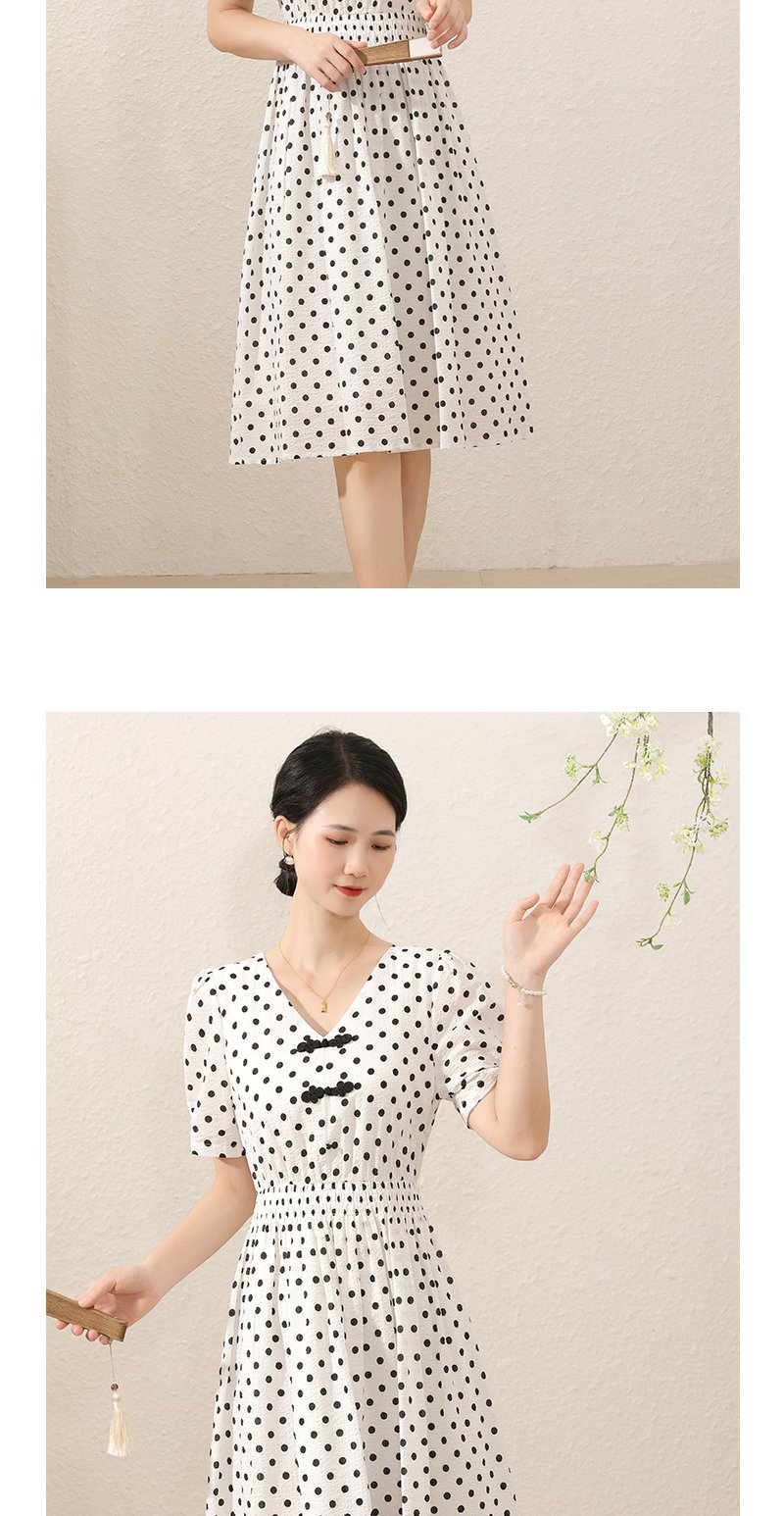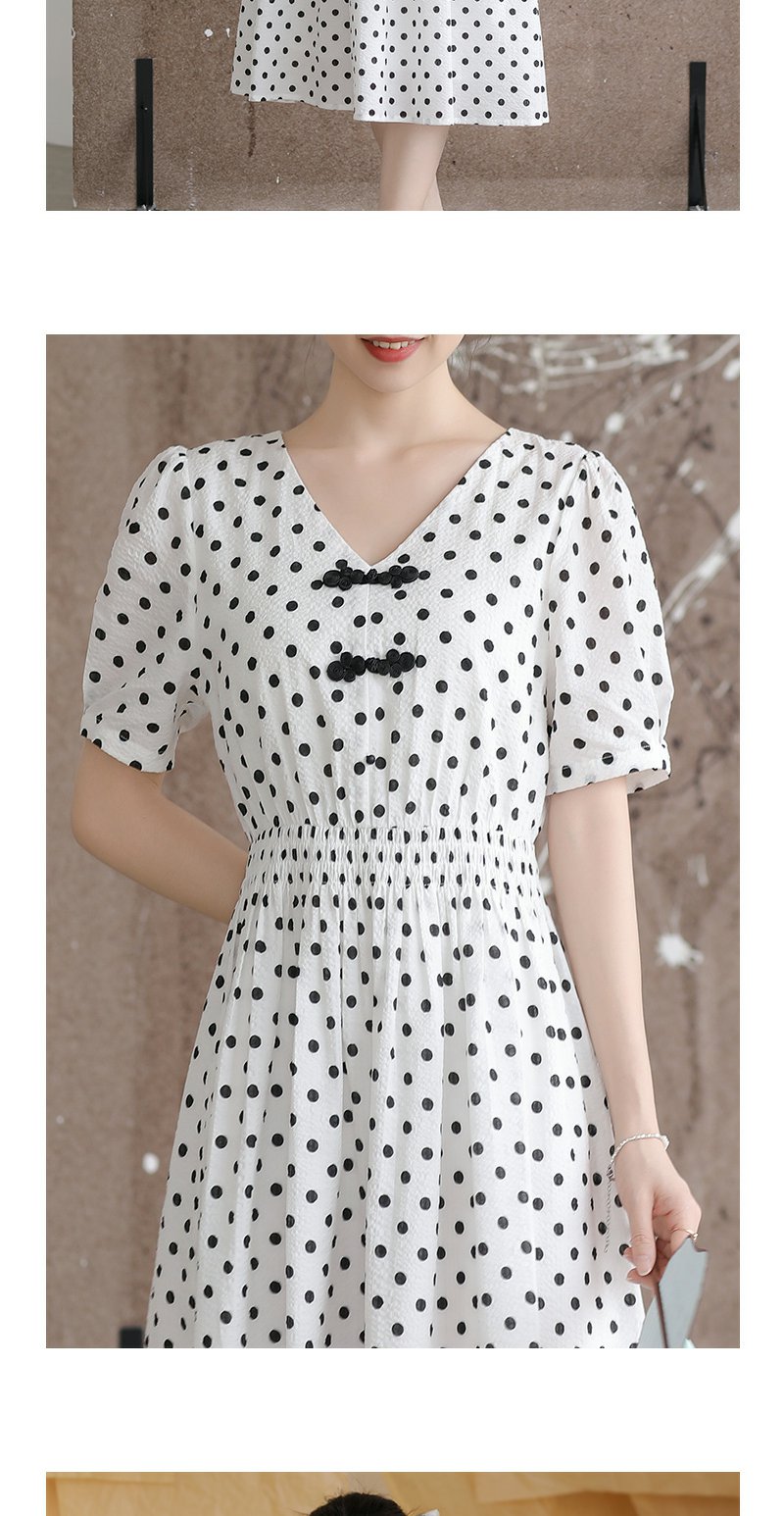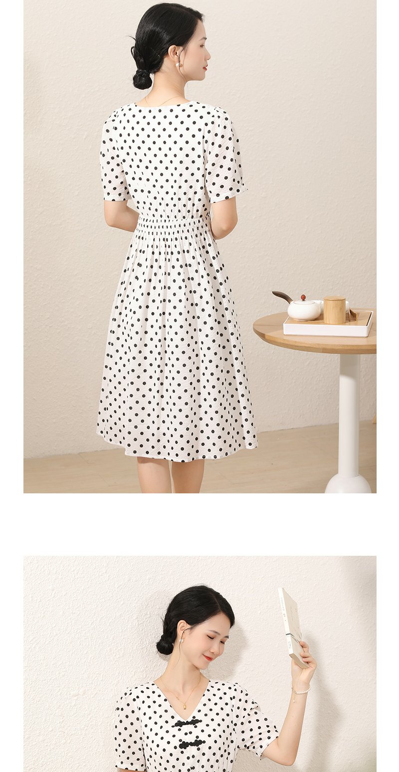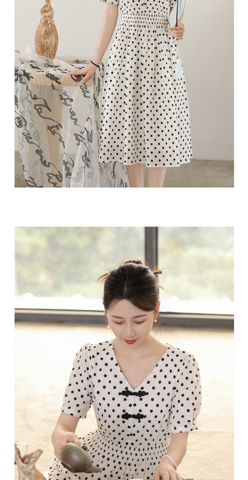 未风白色棉布新中式波点连衣裙女夏2025新款夏季气质收腰遮肚裙子