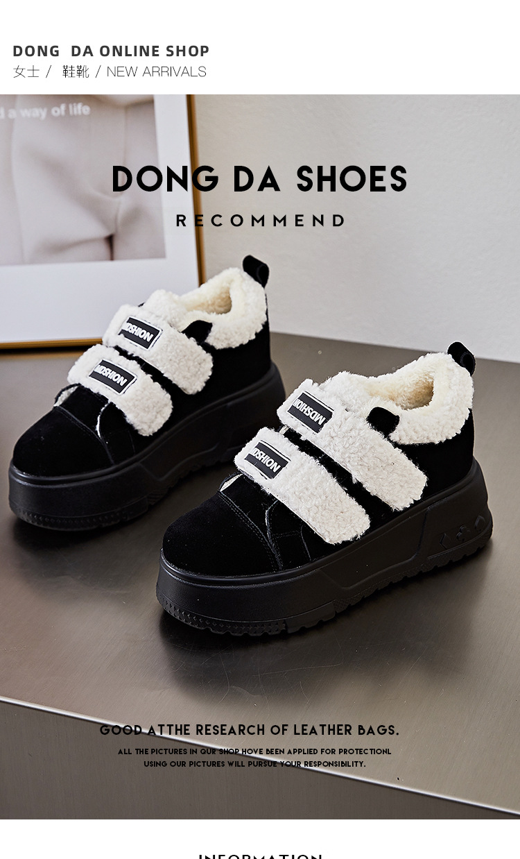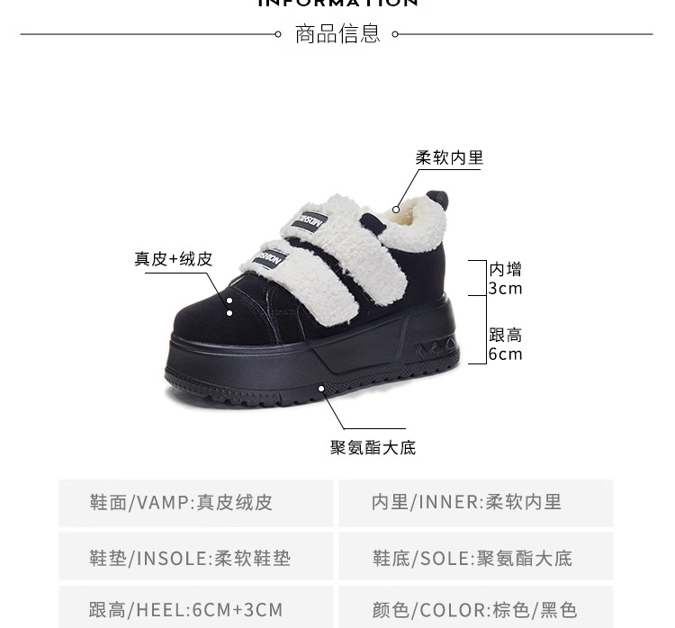 赵露思同款 新款牛皮小白鞋女冬加绒真皮厚底内增高女鞋雪地靴棉鞋