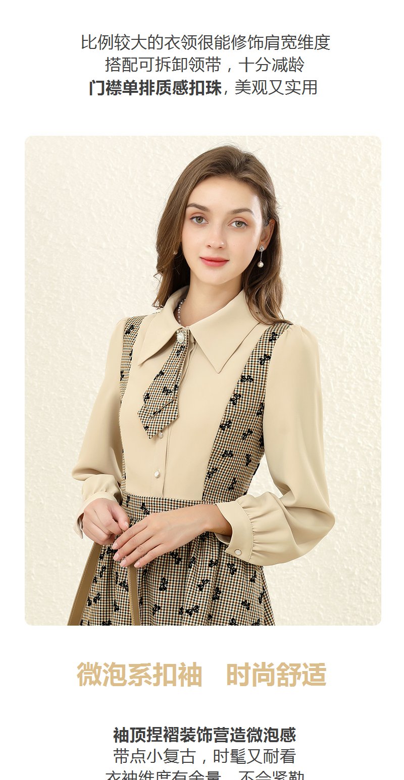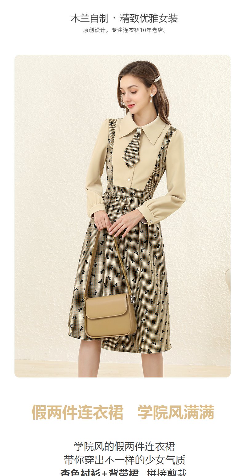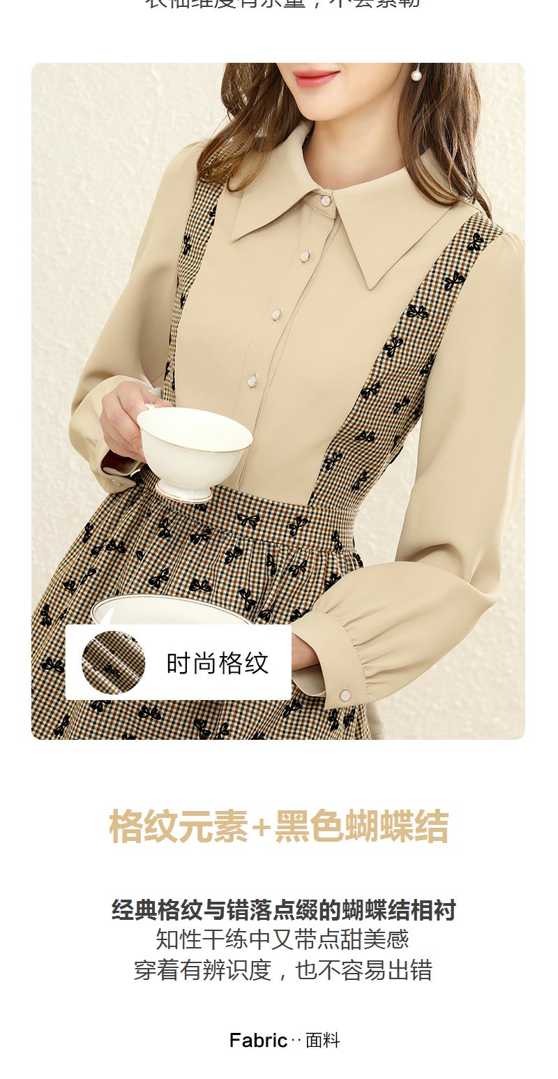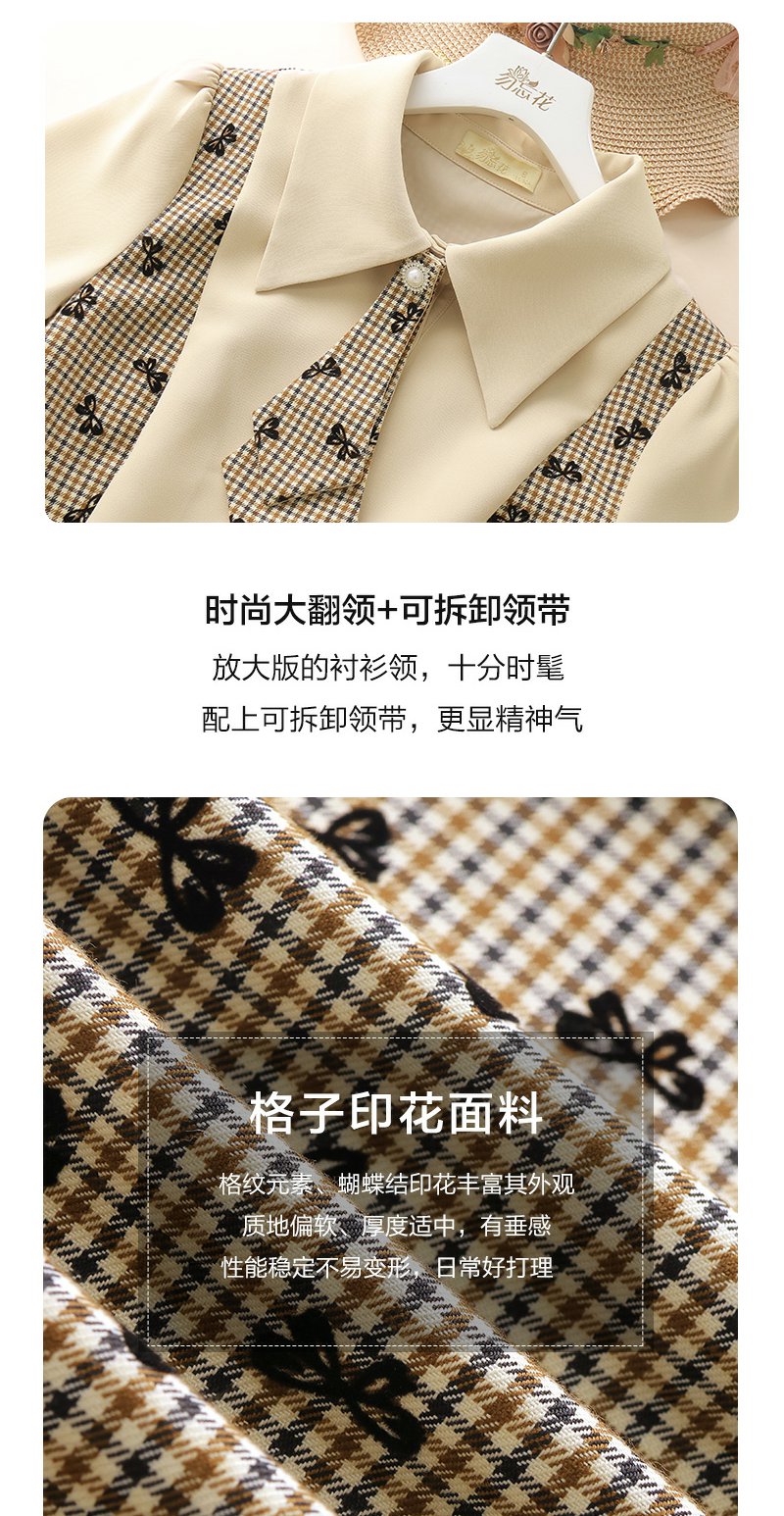 勿忘花格子拼接衬衫连衣裙女初秋2025春季新款气质假两件内搭裙子