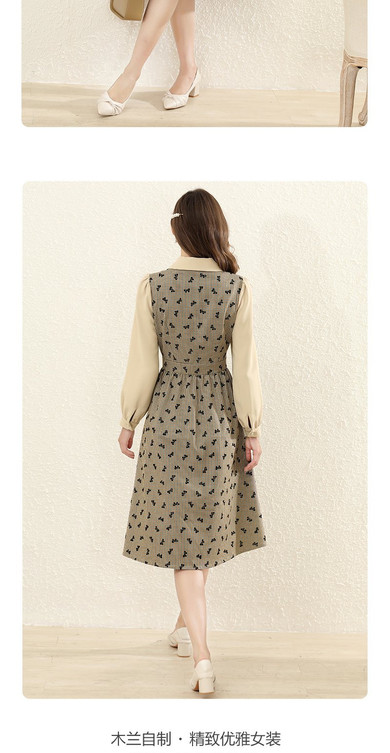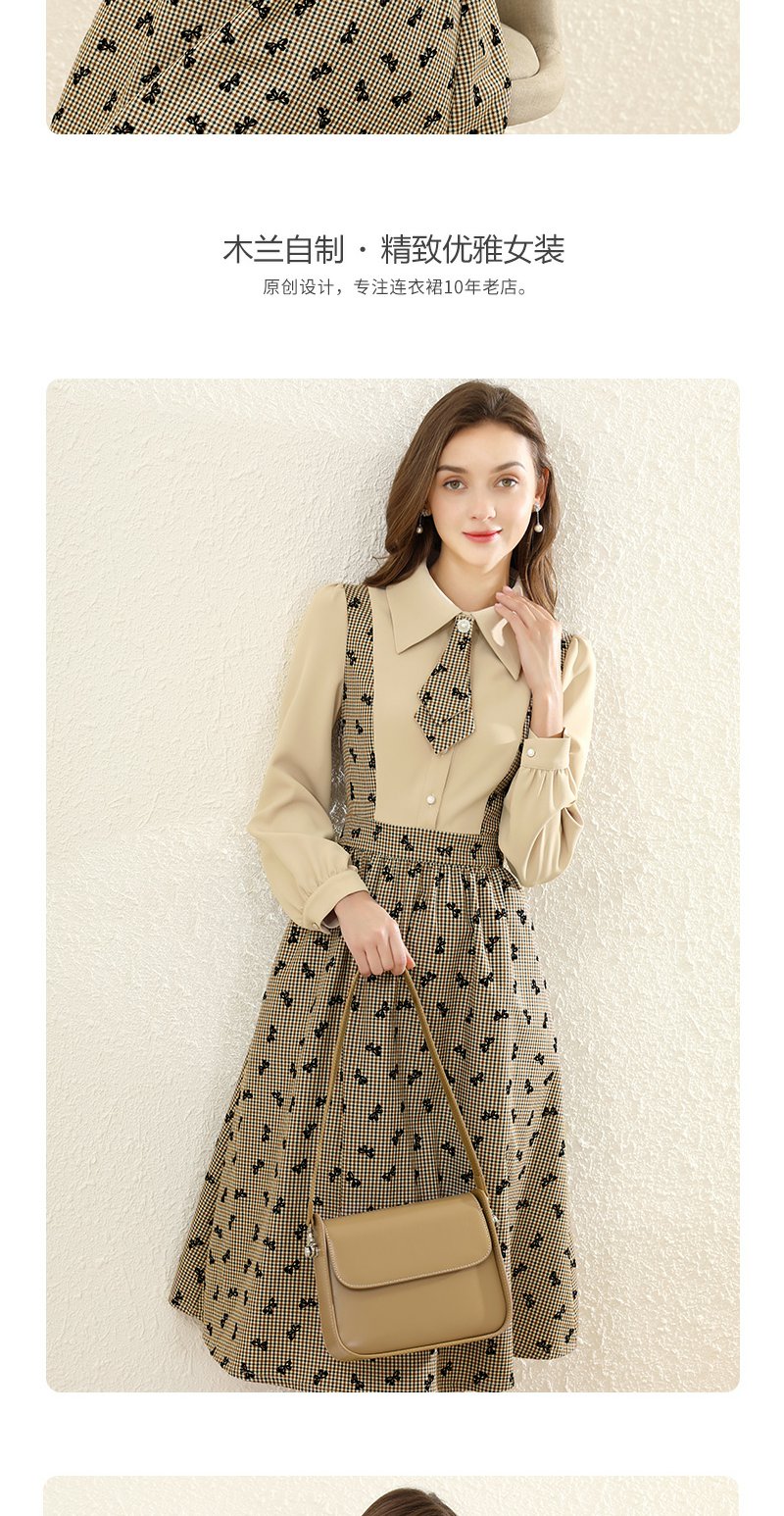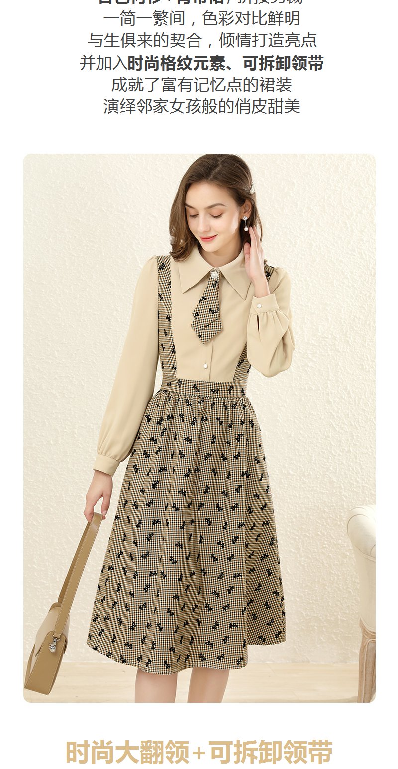勿忘花格子拼接衬衫连衣裙女初秋2025春季新款气质假两件内搭裙子