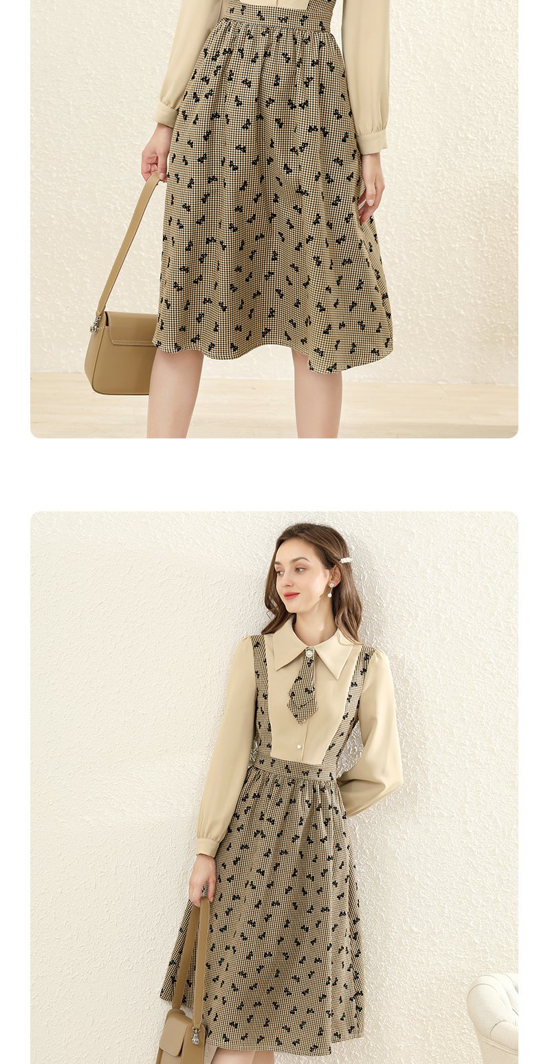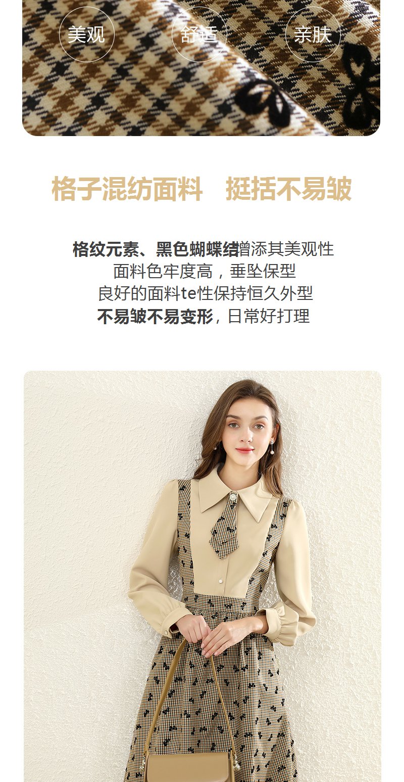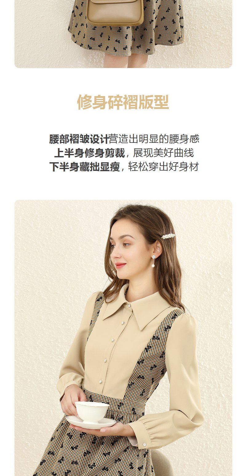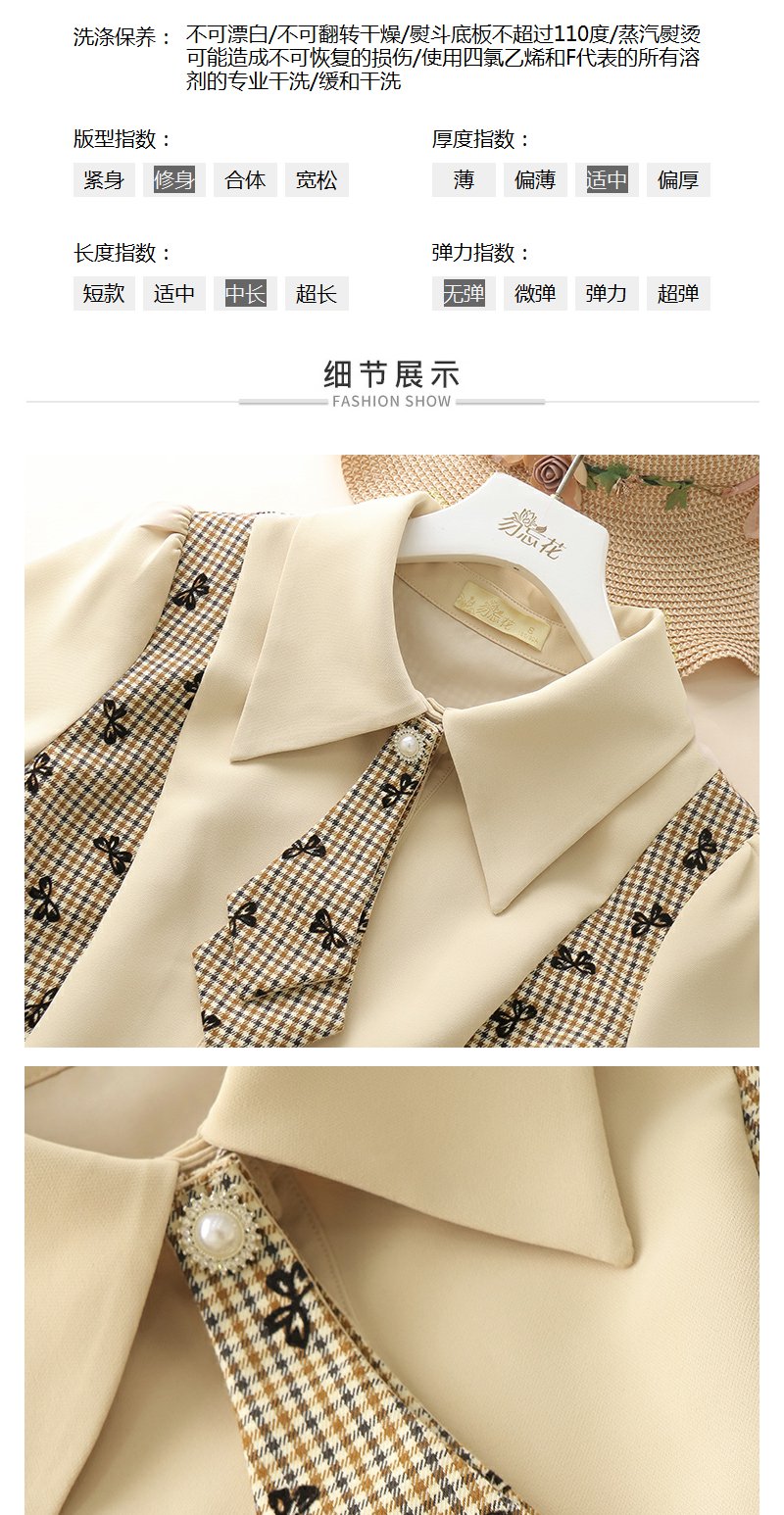 勿忘花格子拼接衬衫连衣裙女初秋2025春季新款气质假两件内搭裙子