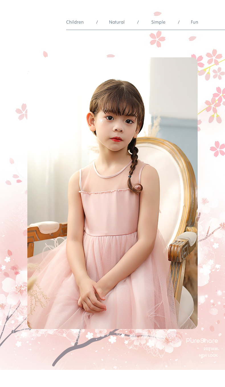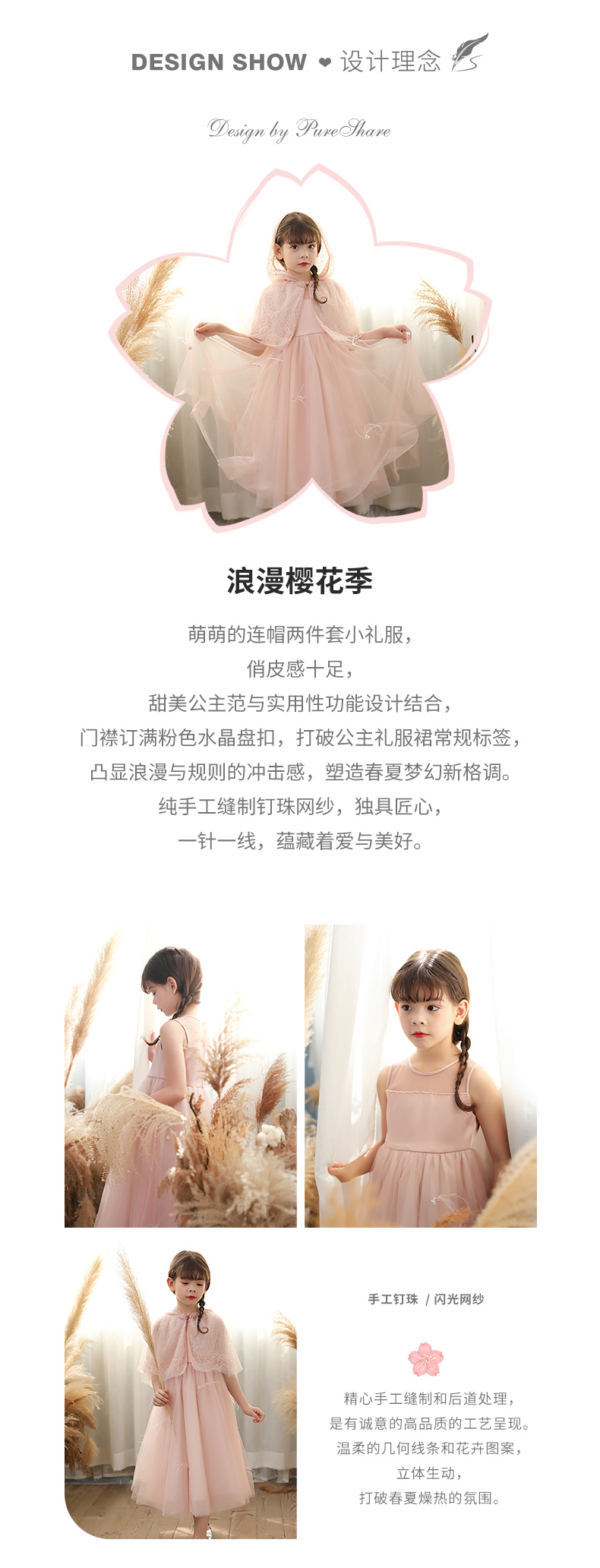 pureshare 女童连衣裙公主裙夏新款蓬蓬纱裙可爱气质生日走秀-浪漫樱花季