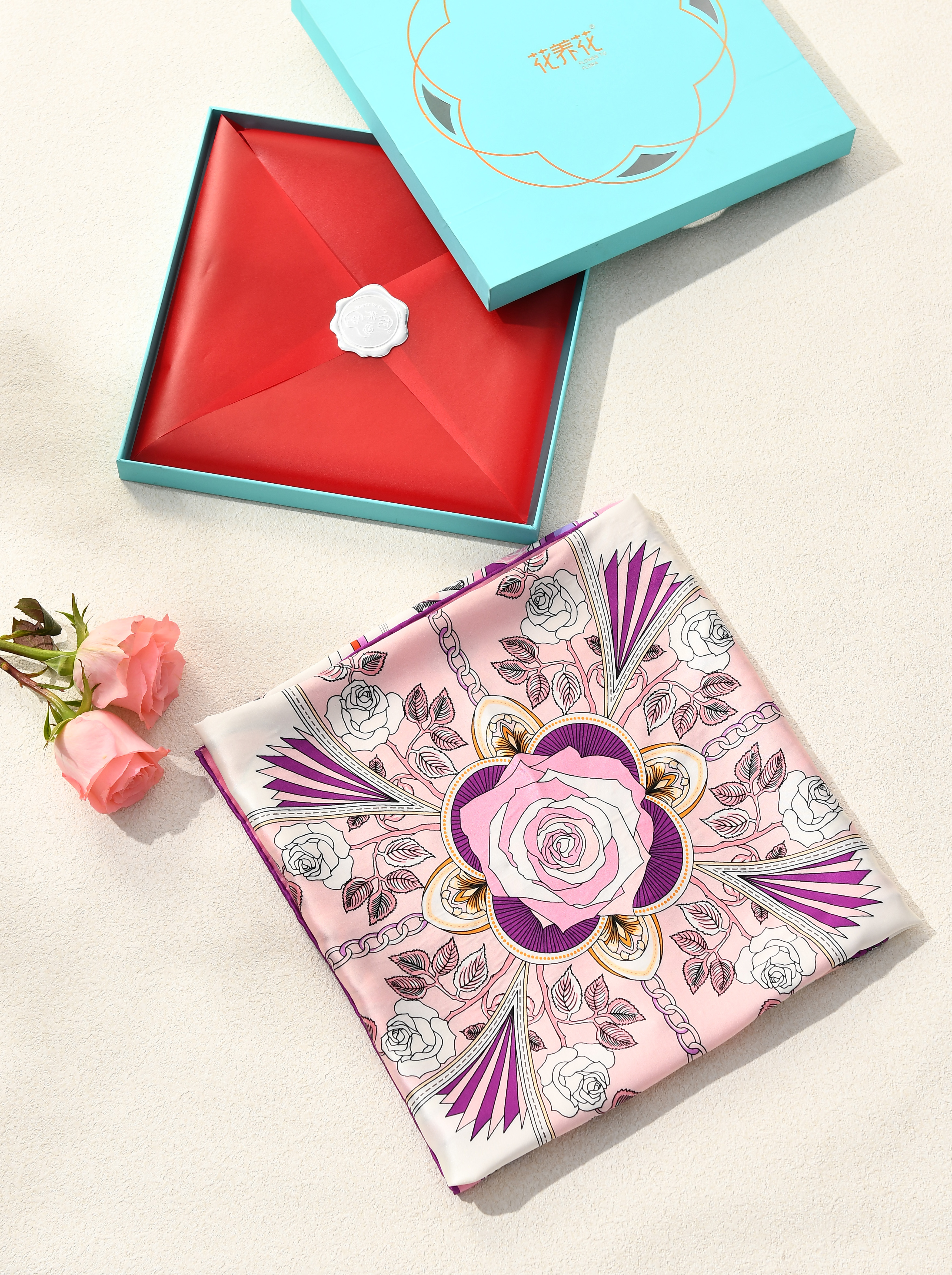 玫瑰花精制 玫瑰丝巾90cm*90cm