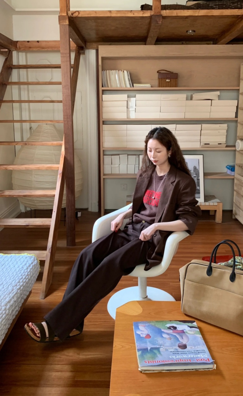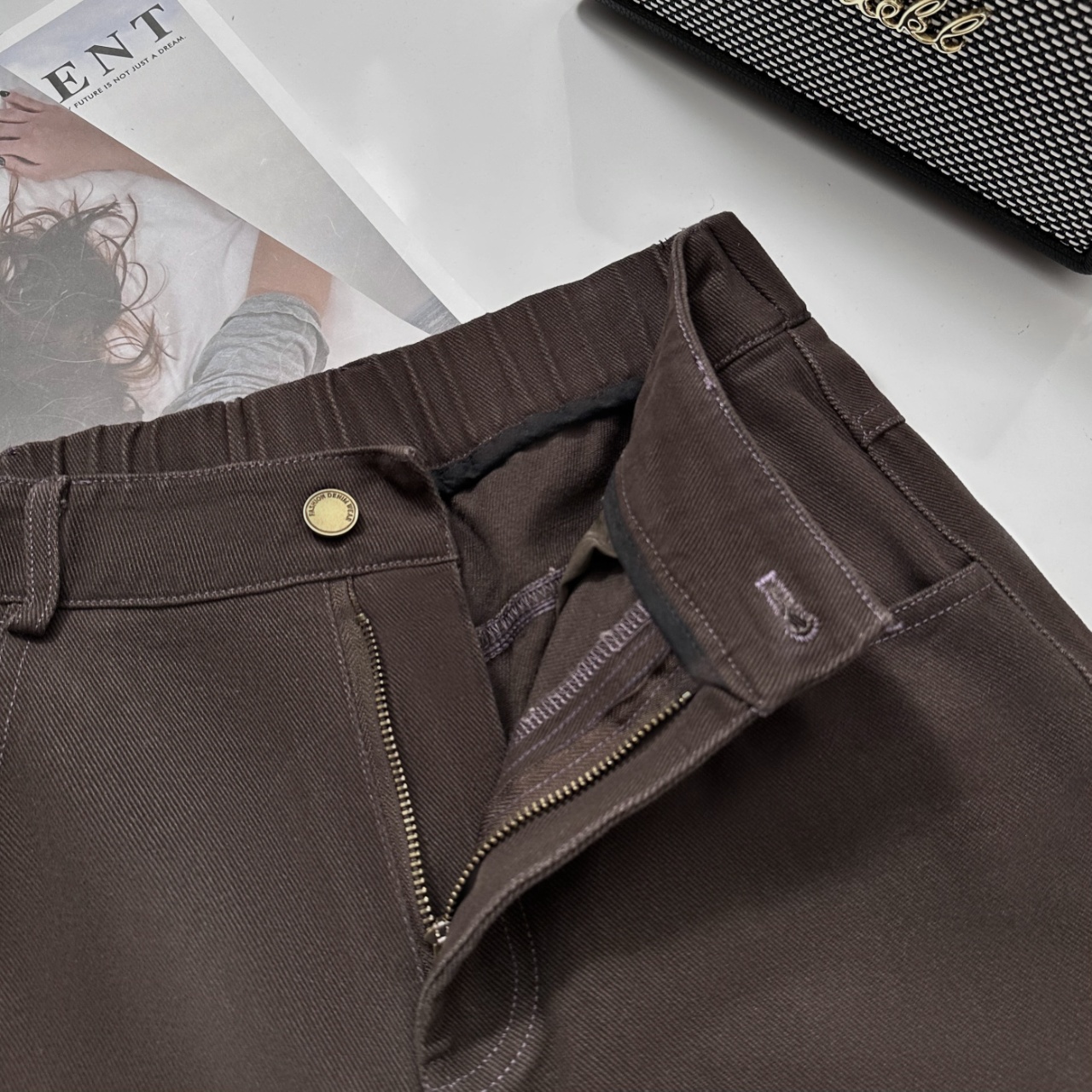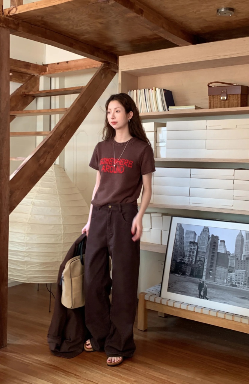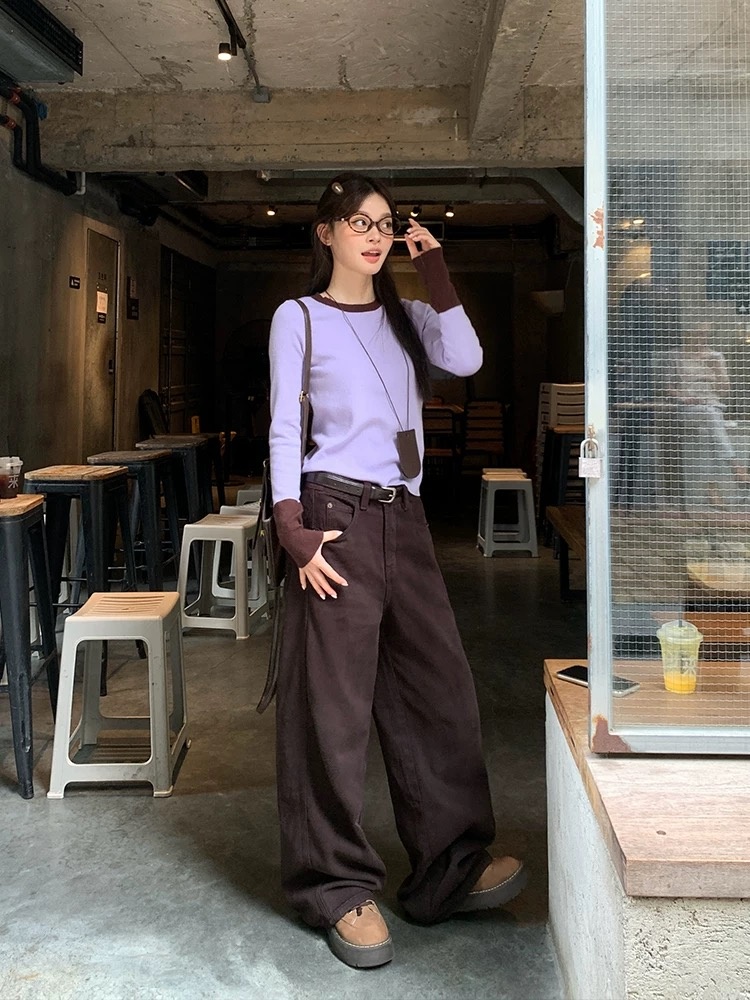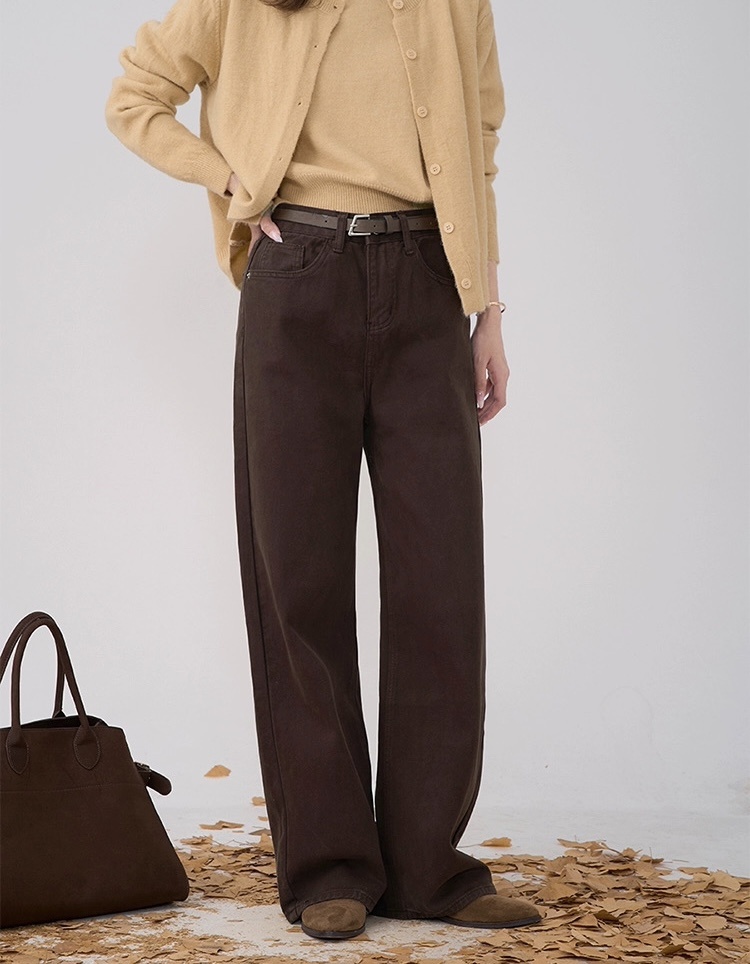 爆款3-7天发货!:isabelle marran美拉德咖中高腰直筒纯棉牛仔裤JS3692899