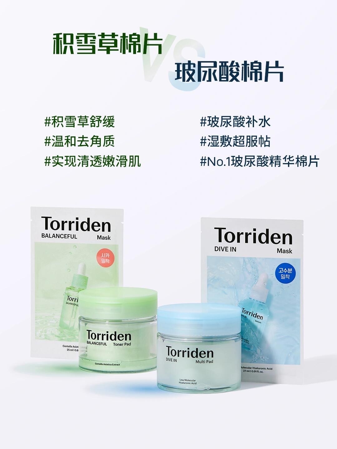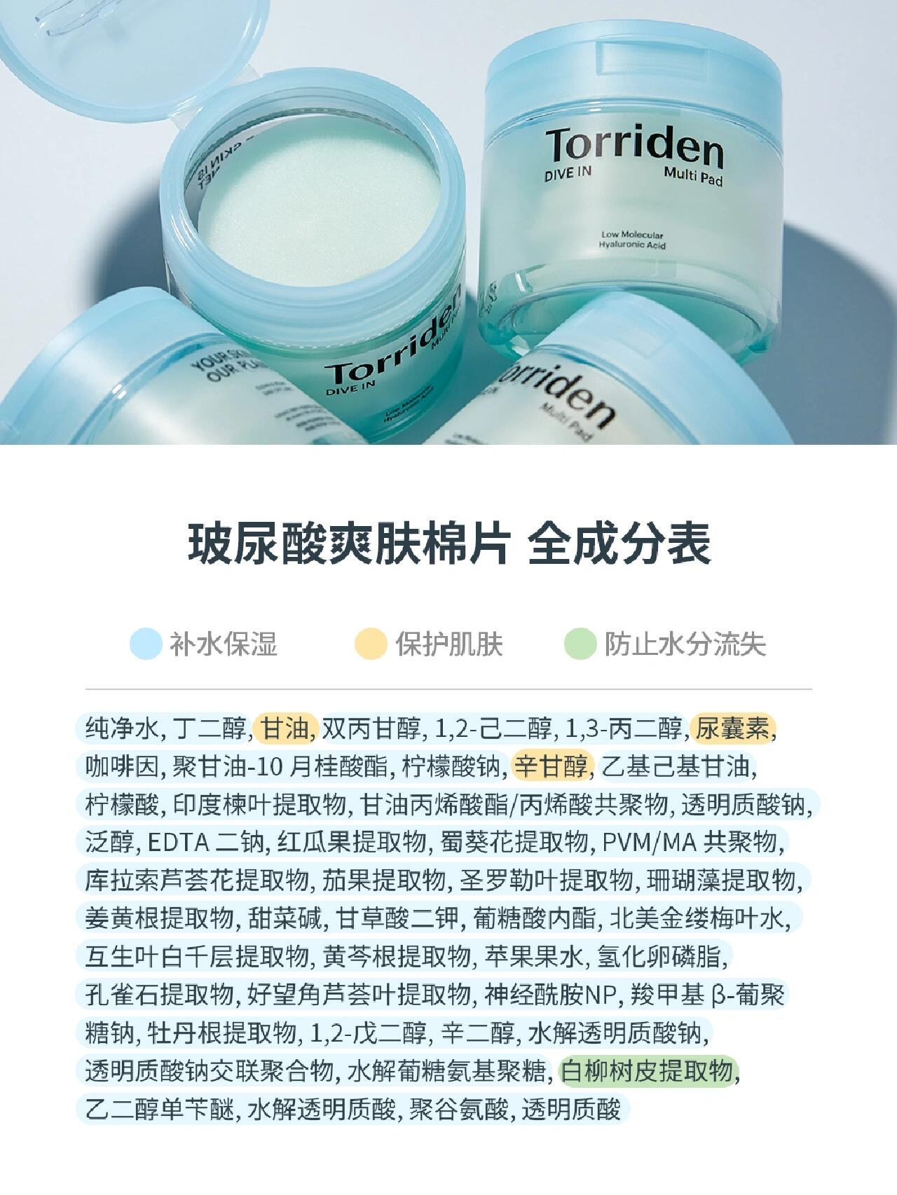 韩国Torriden桃瑞丹5重玻尿酸/积雪草 爽肤棉片改善肌理收毛孔去角质 舒缓 湿敷