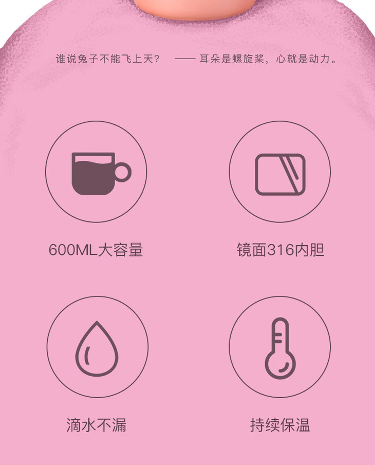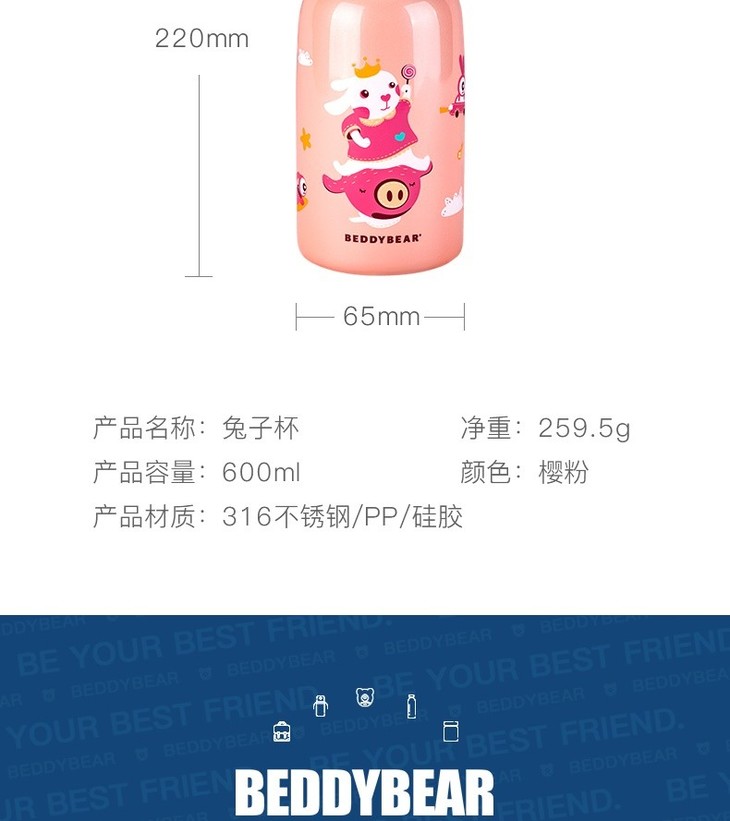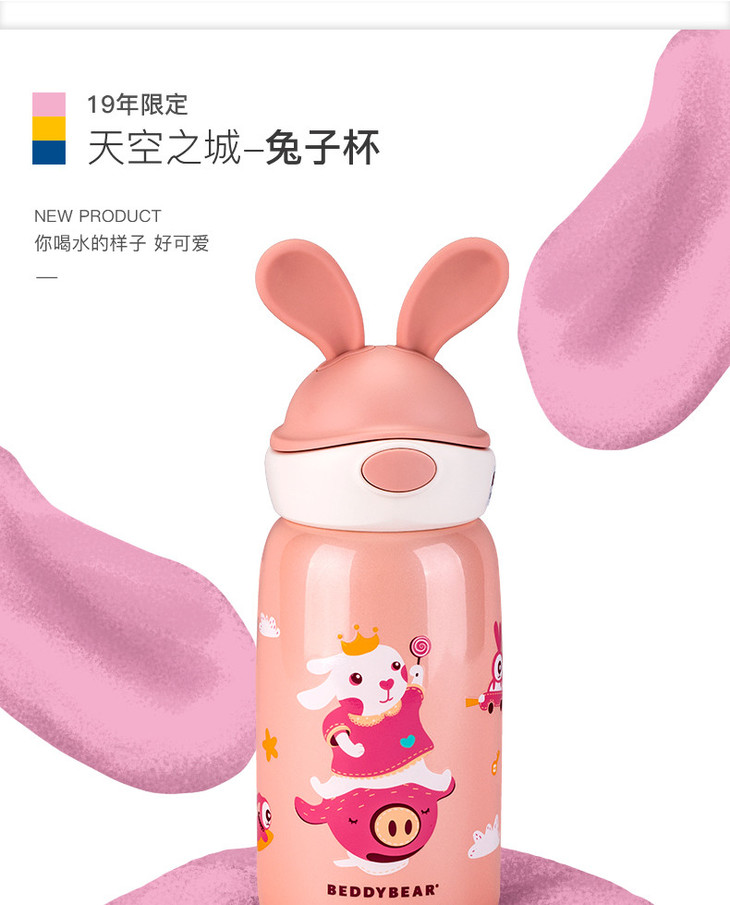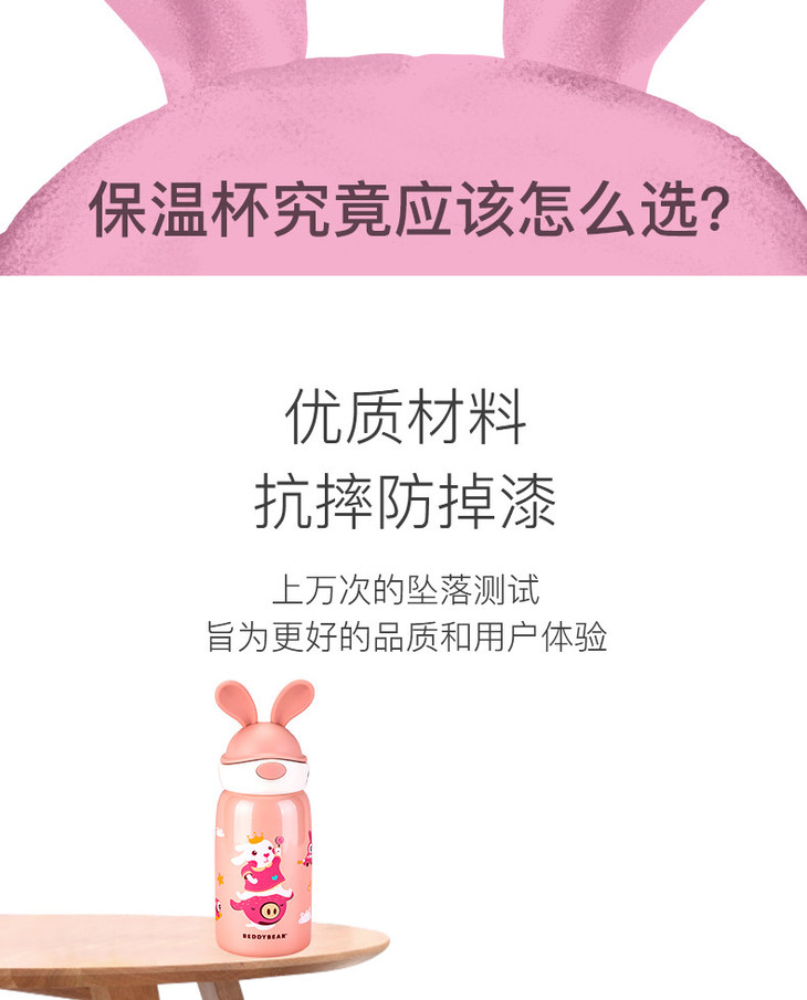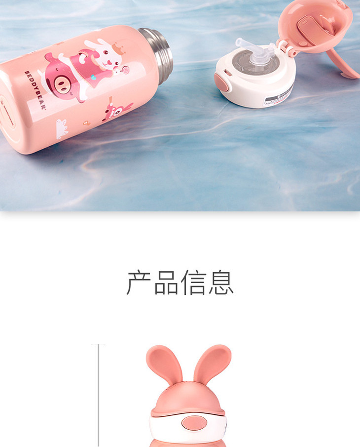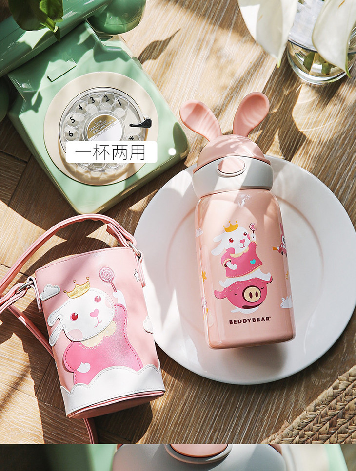 【品牌直发】【杯具熊定制款儿童杯】双杯盖 硅胶耳朵保温杯 杯身浮雕 600ml兔飞飞