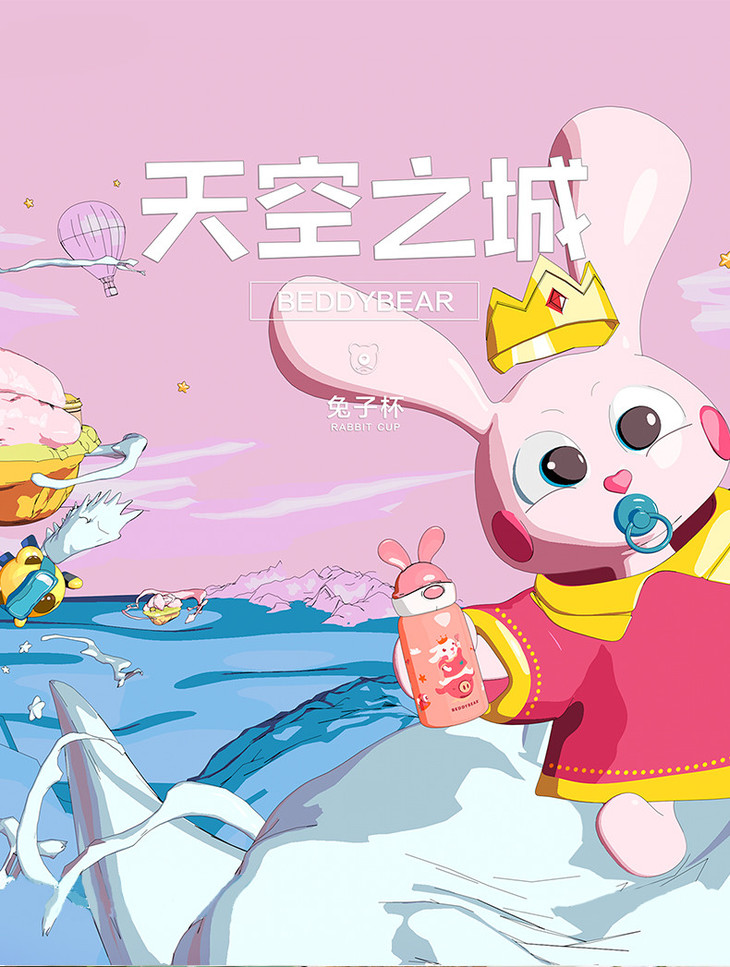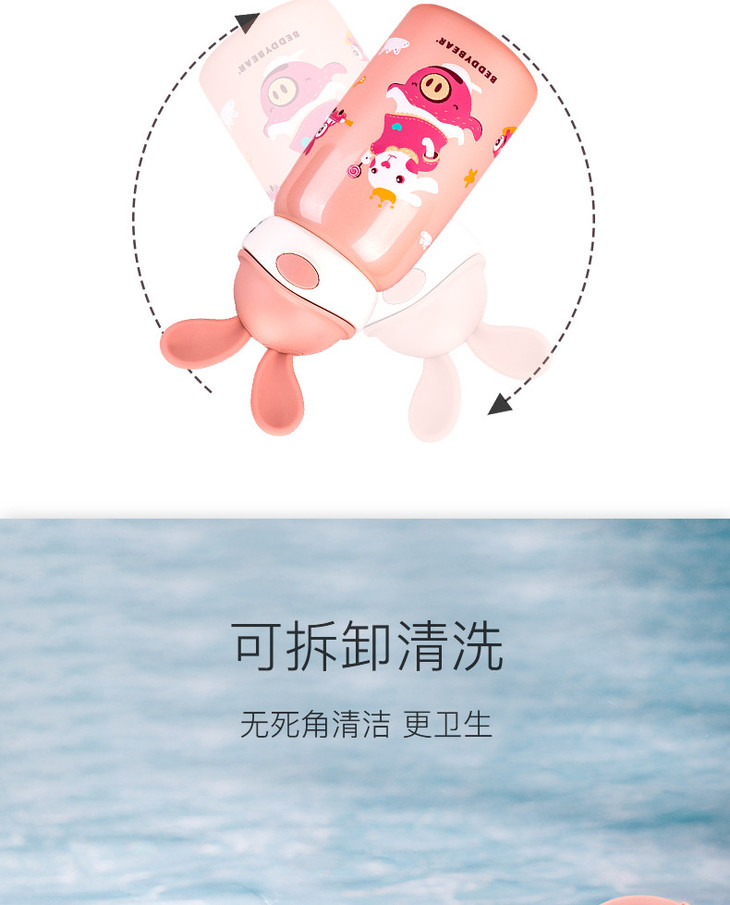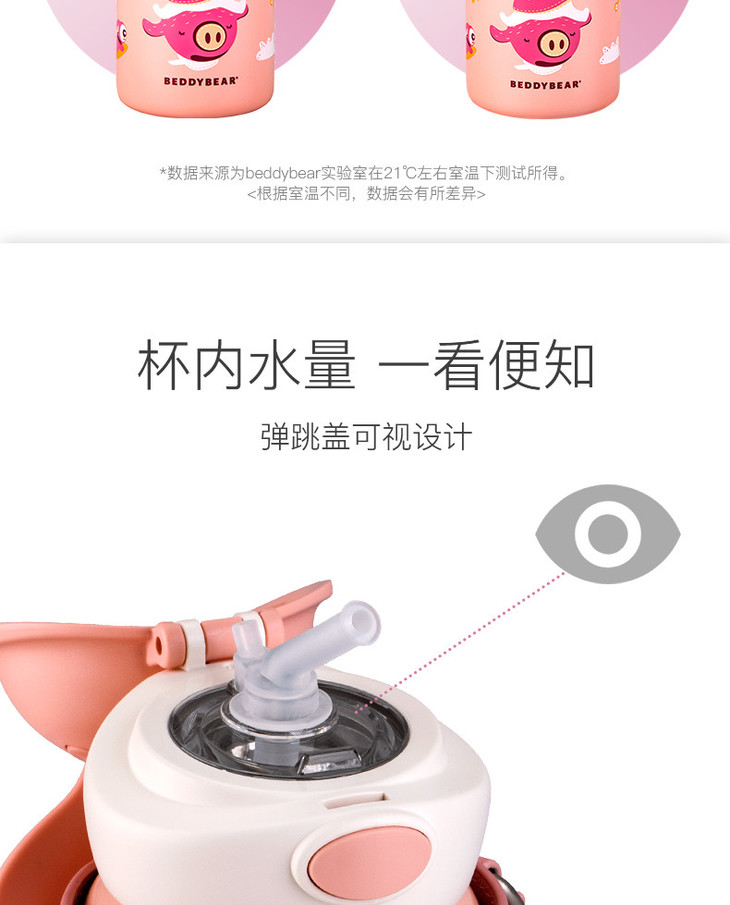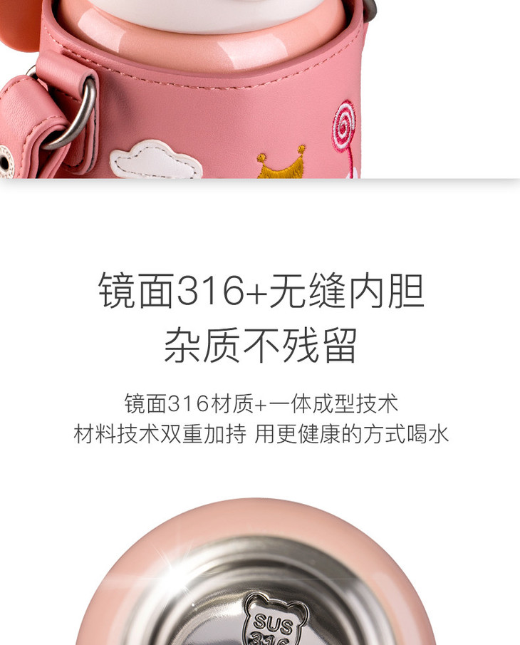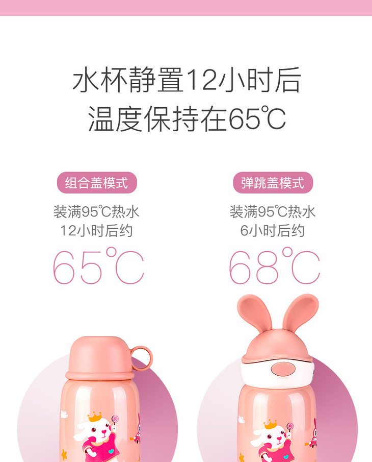 【品牌直发】【杯具熊定制款儿童杯】双杯盖 硅胶耳朵保温杯 杯身浮雕 600ml兔飞飞