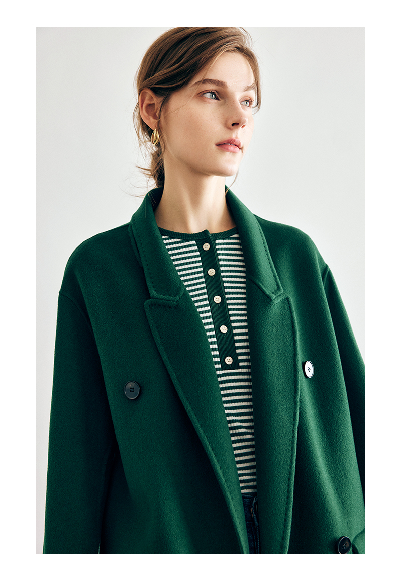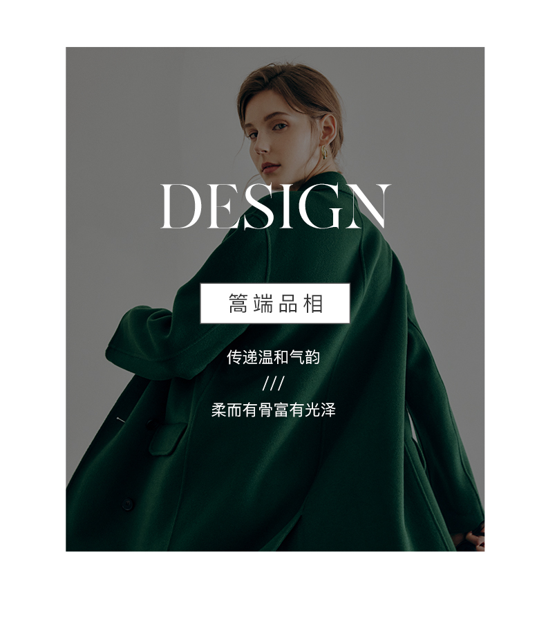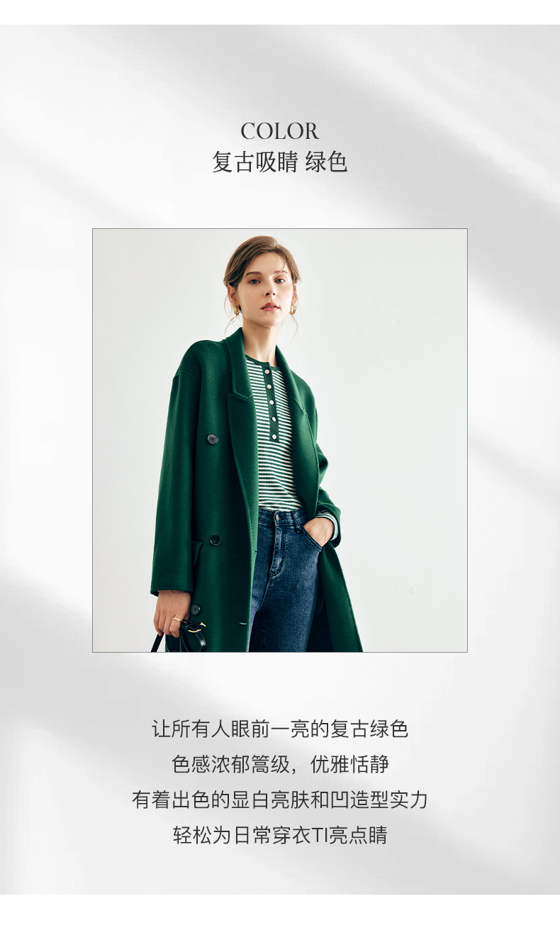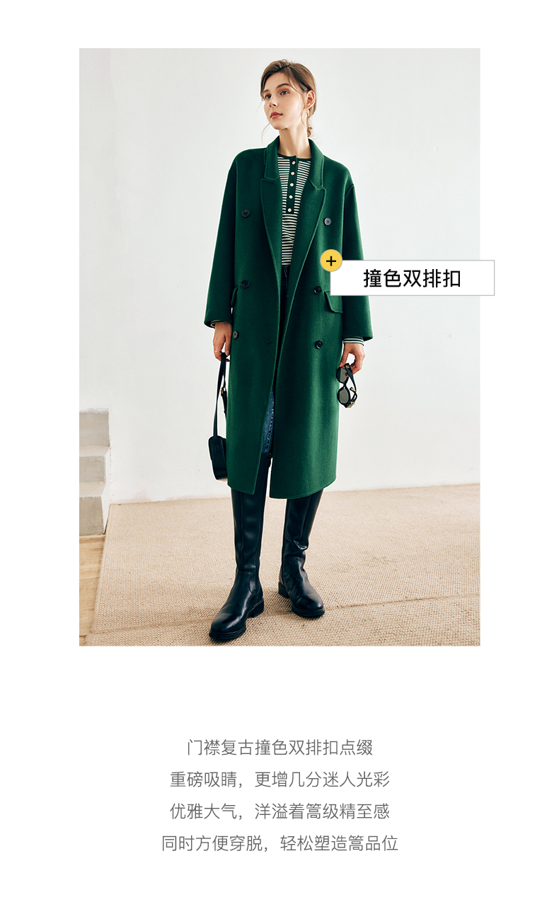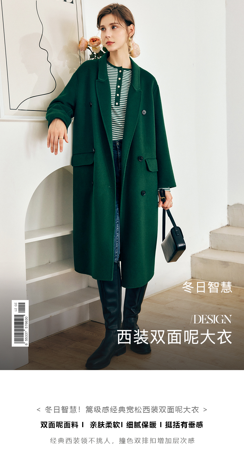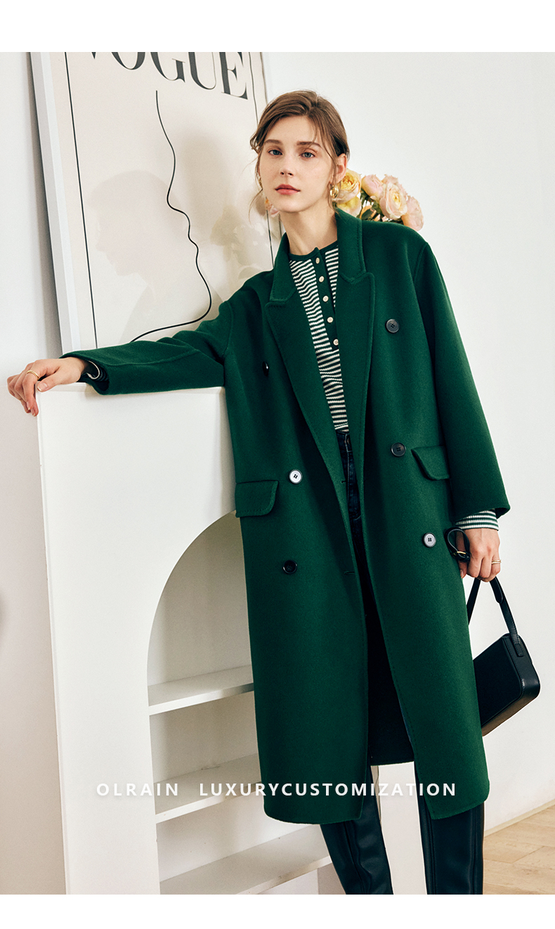 OLrain欧芮儿法式绿色毛呢外套女秋冬2022年新款宽松西装领大衣