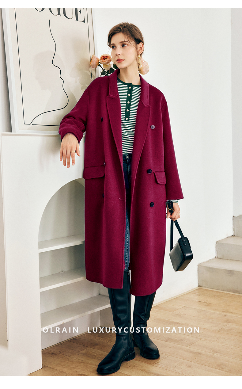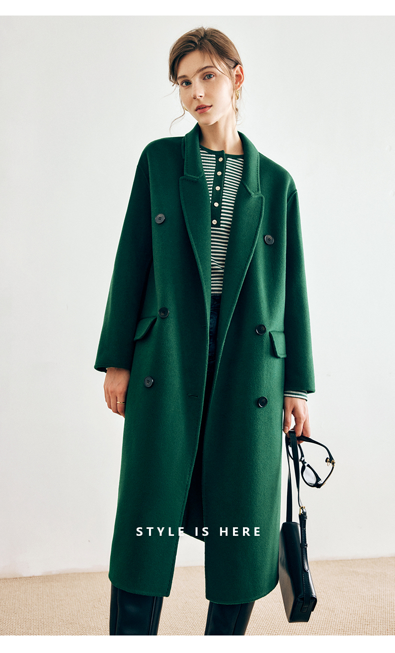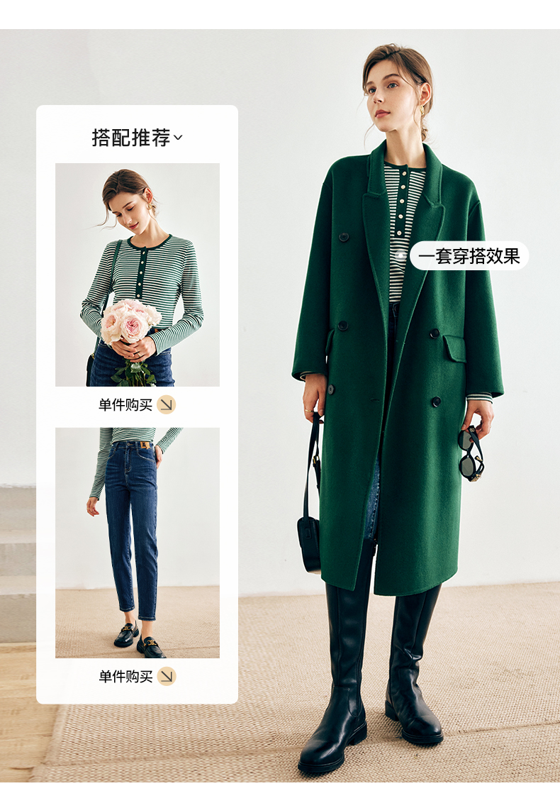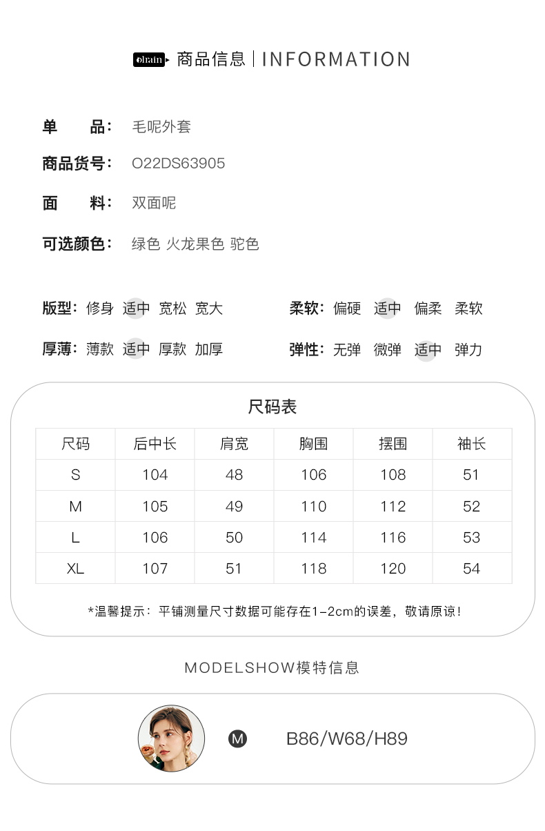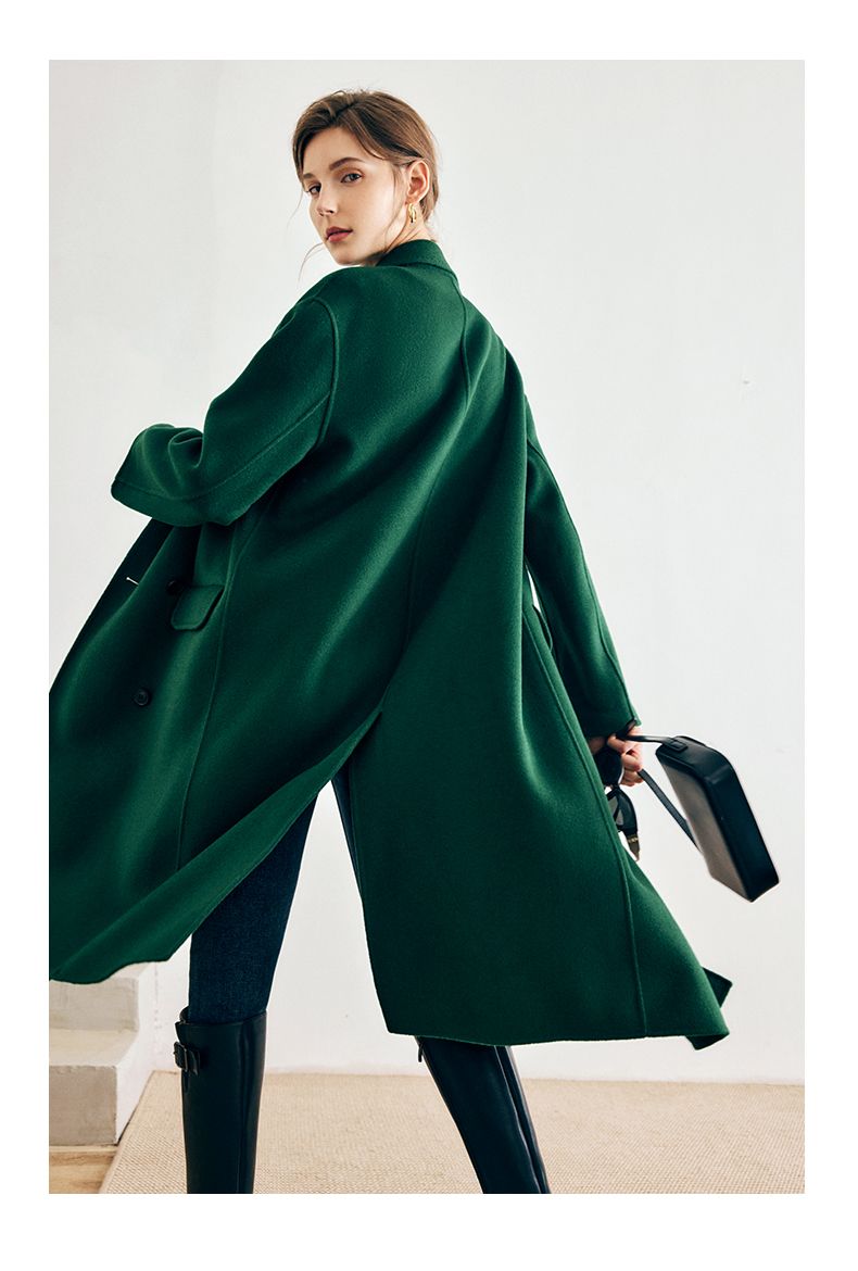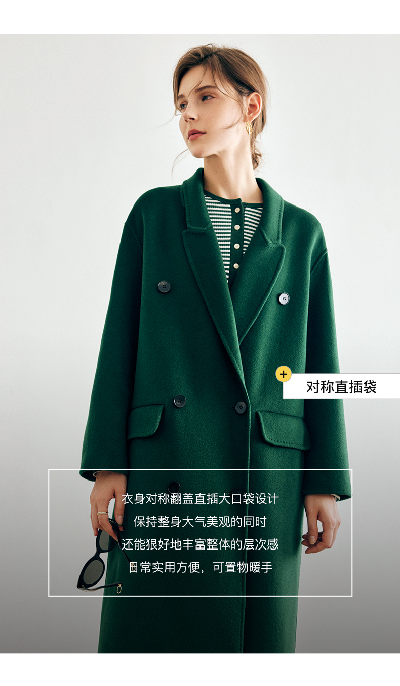 OLrain欧芮儿法式绿色毛呢外套女秋冬2022年新款宽松西装领大衣