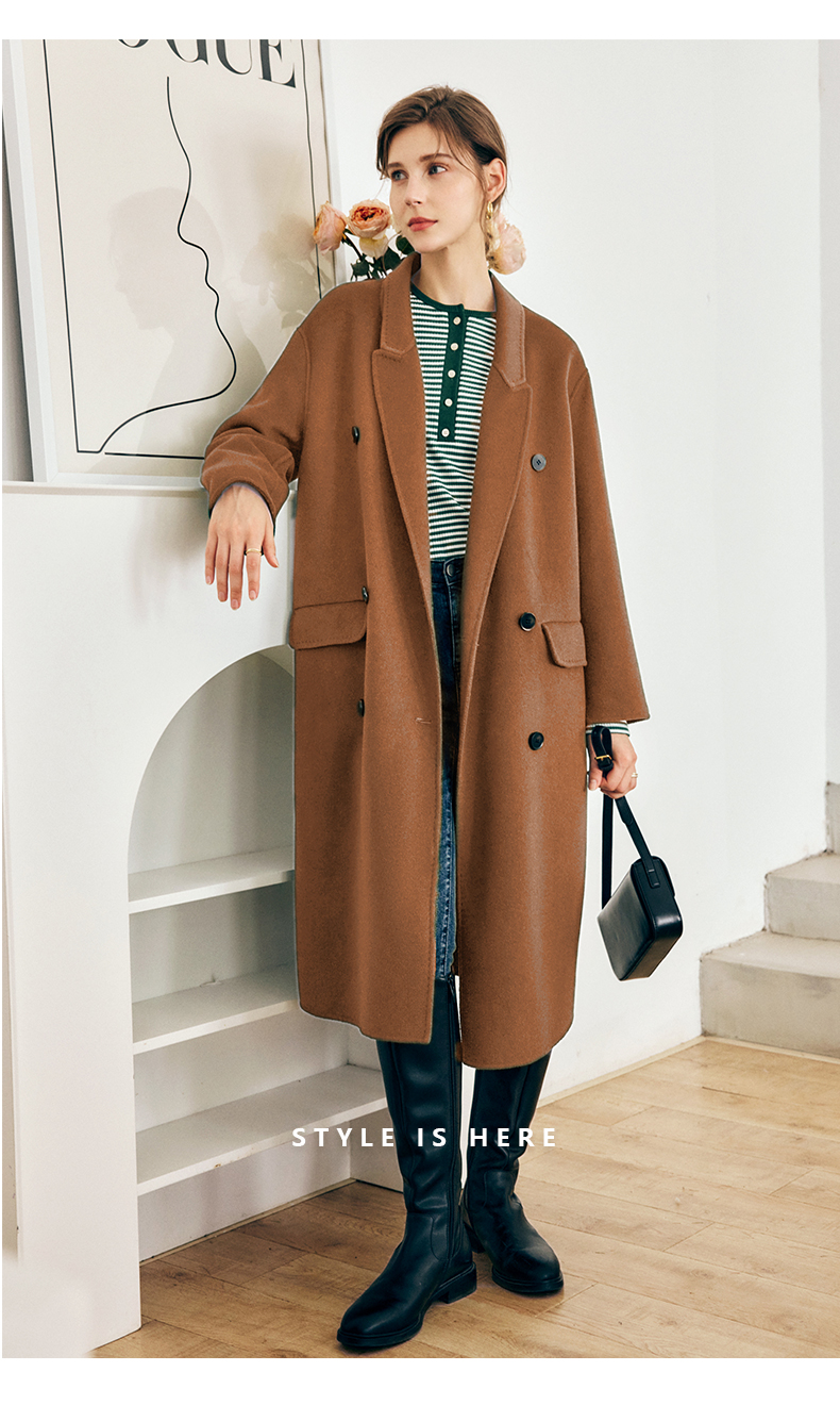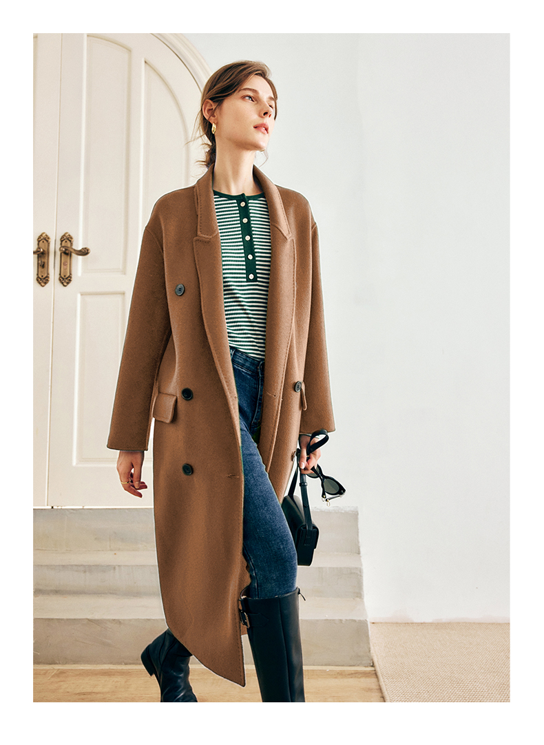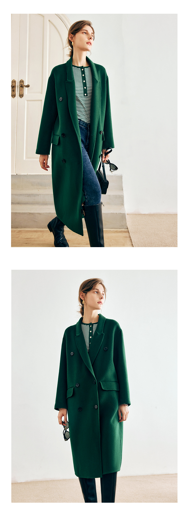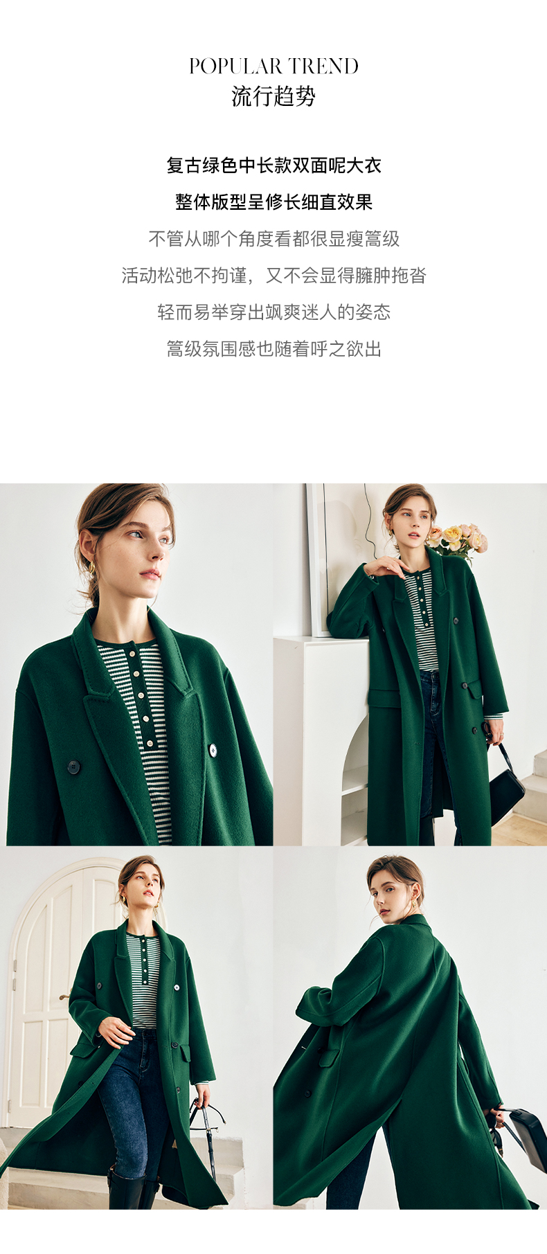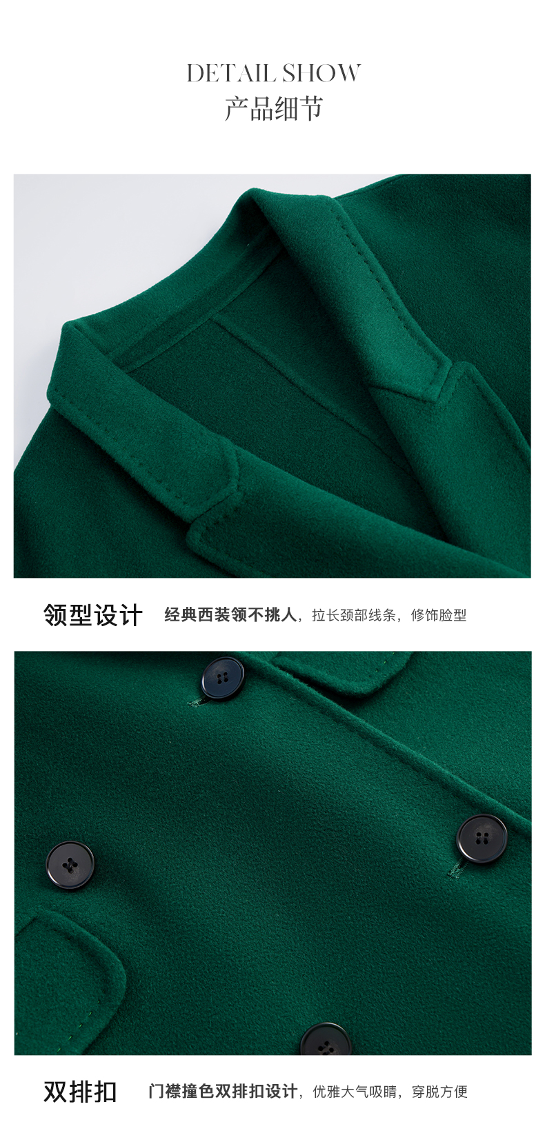 OLrain欧芮儿法式绿色毛呢外套女秋冬2022年新款宽松西装领大衣
