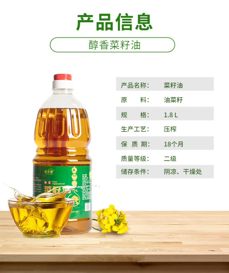 最安康手工压榨菜籽油1.8L桶装