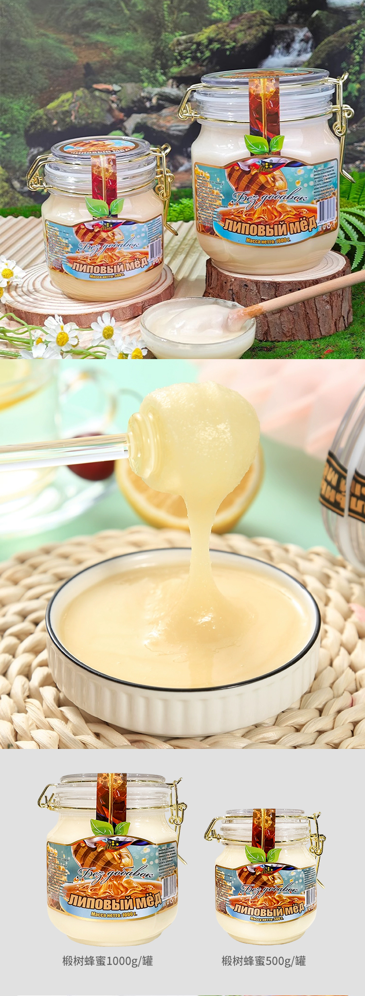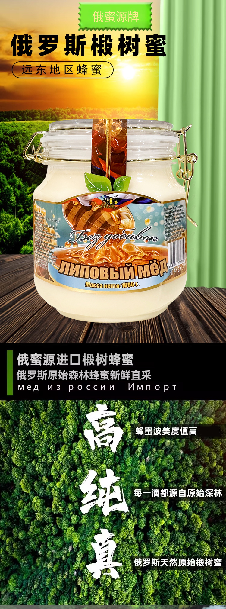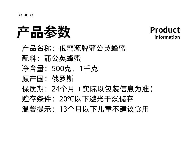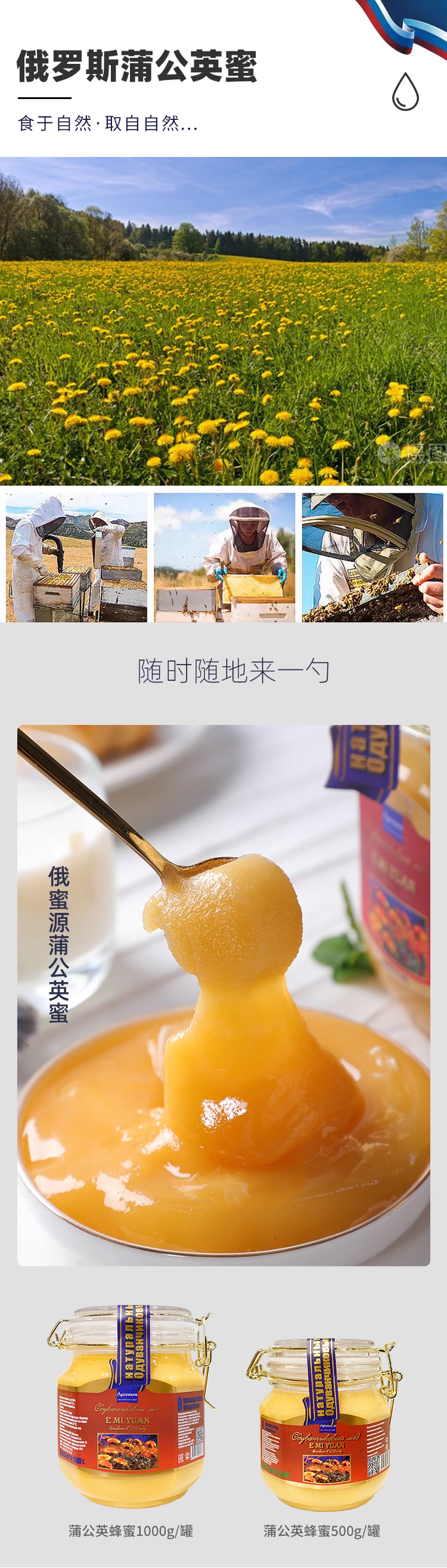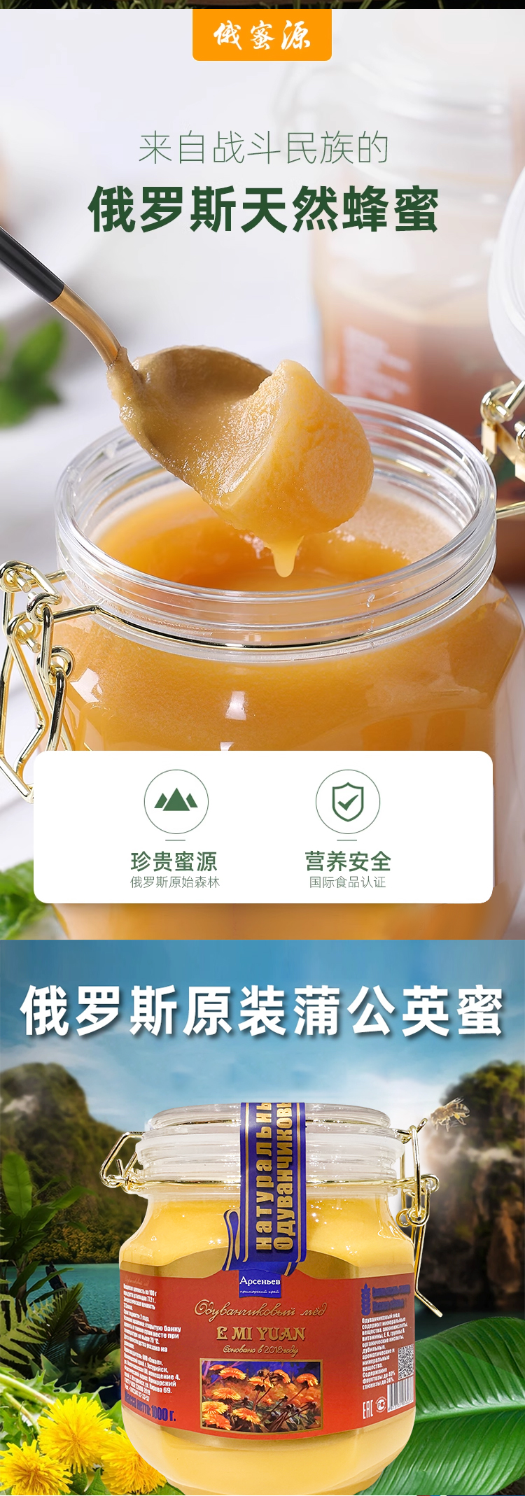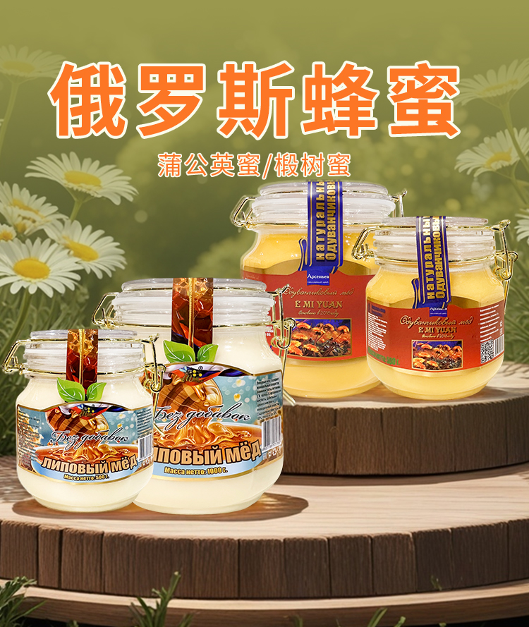 俄罗斯进口俄蜜源牌蜂蜜500g-1000g【椴树蜂蜜丨蒲公英蜂蜜】