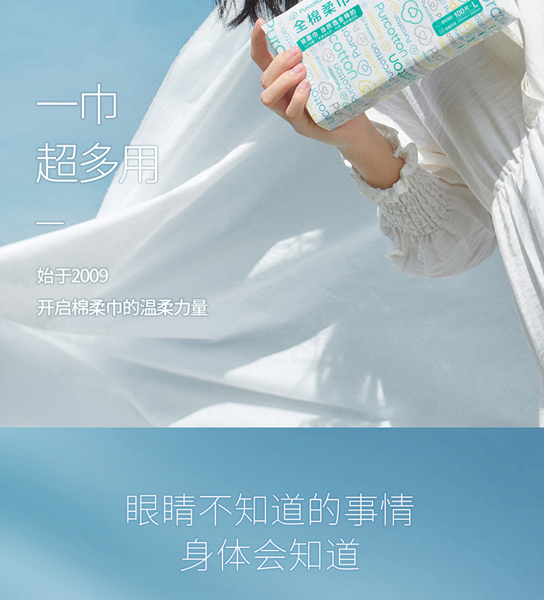 全棉时代 洗脸巾一次性擦脸巾20CM*20CM 100抽*6包