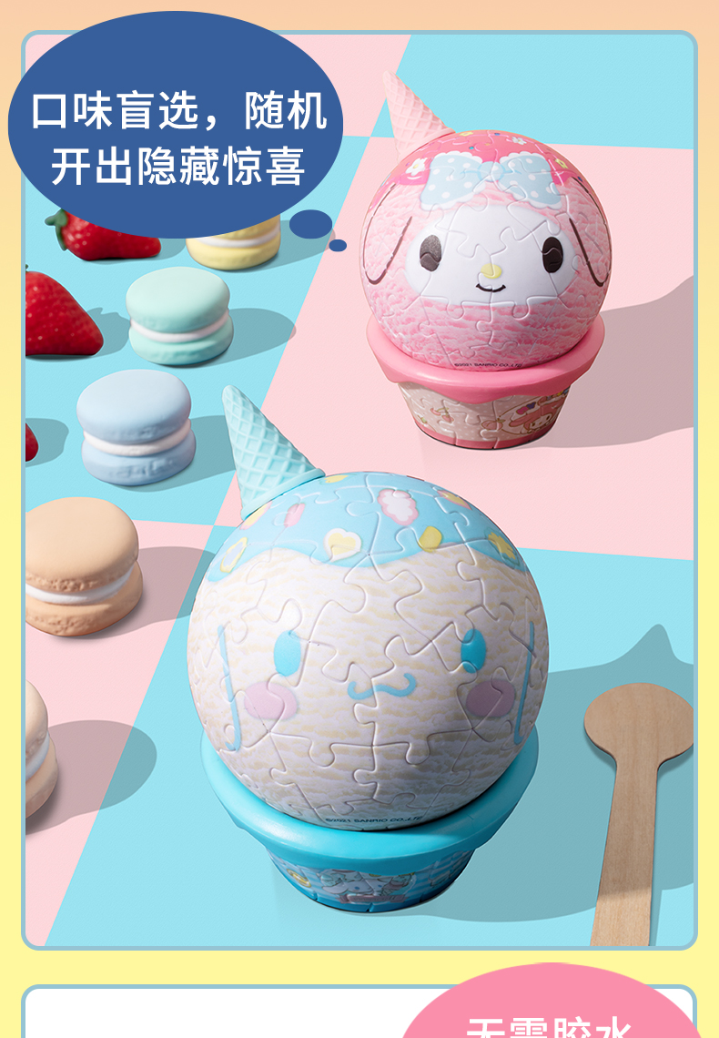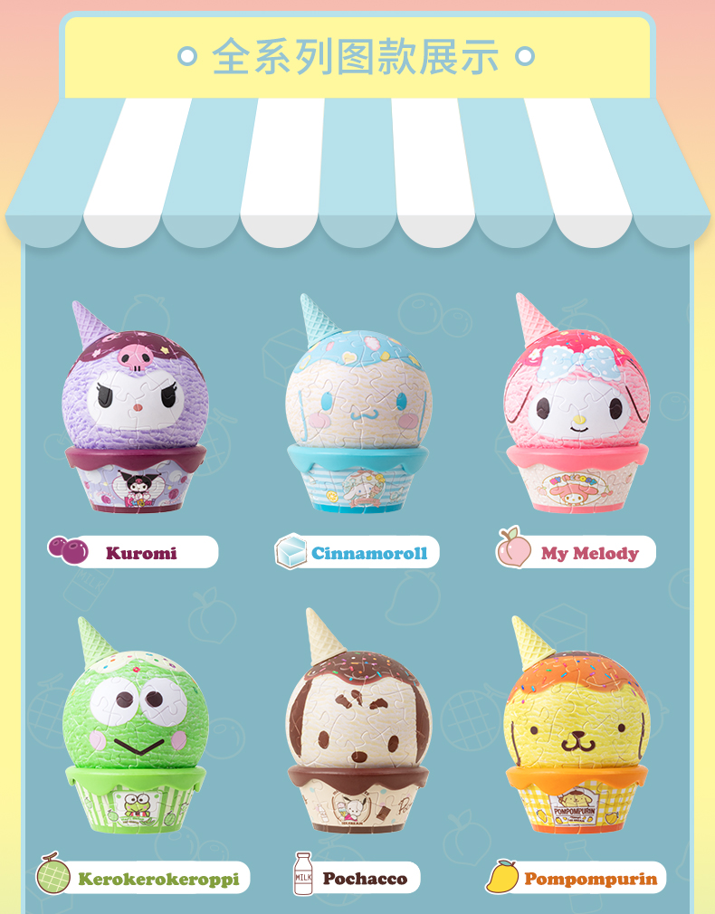84片 盲盒拼图 雪糕球塑料拼图 AC1001 三丽鸥- 甜蜜任选