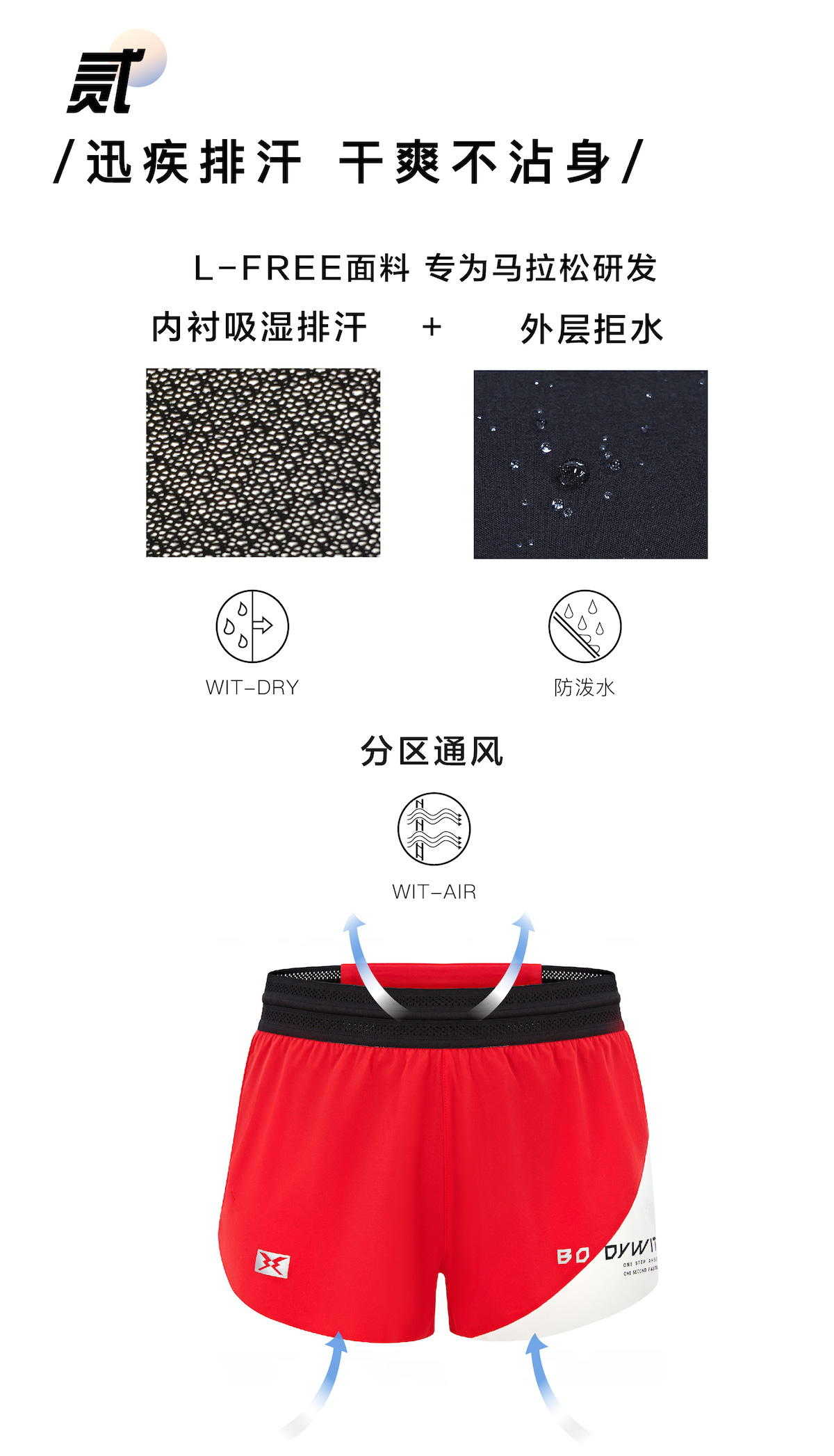 BODYWIT女飞天四代PRO二合一手机袋马拉松短裤