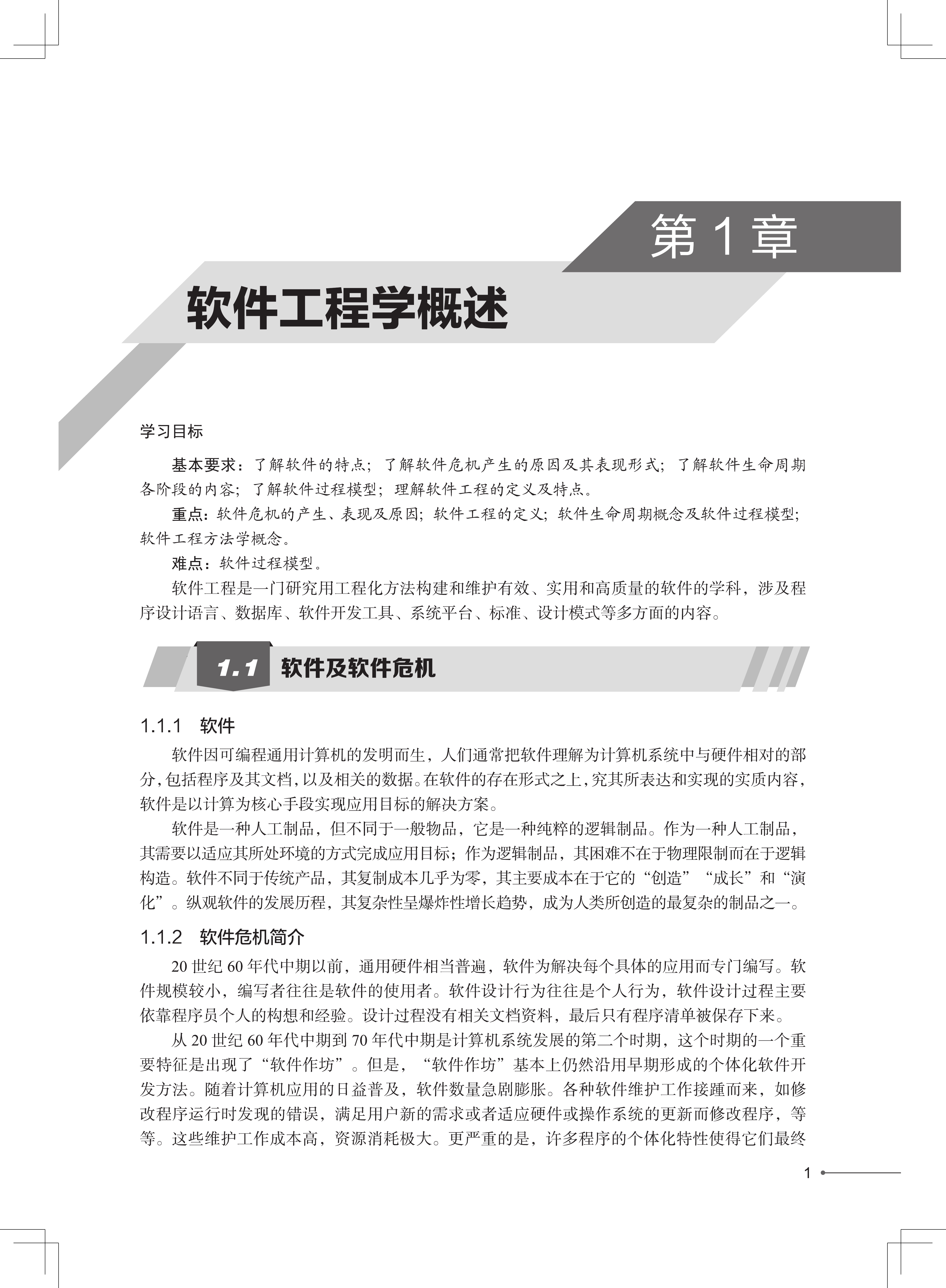 本书主要介绍软件工程的概念、原理和典型的方法学以及软件项目管理技术,旨在培养读者的软件工程思想及软件开发能力。本书理论与实践相结合,内容翔实,可操作性强,并融入课程思政内容。全书分为 11章。第 1章是软件工程学概述;第 2~ 6章阐述软件生命周期各个阶段的任务、过程、结构化方法和相关工具;第 7~ 10章讲述面向对象方法学引论,面向对象分析、设计和实现,第 11章介绍软件项目管理的相关知识。