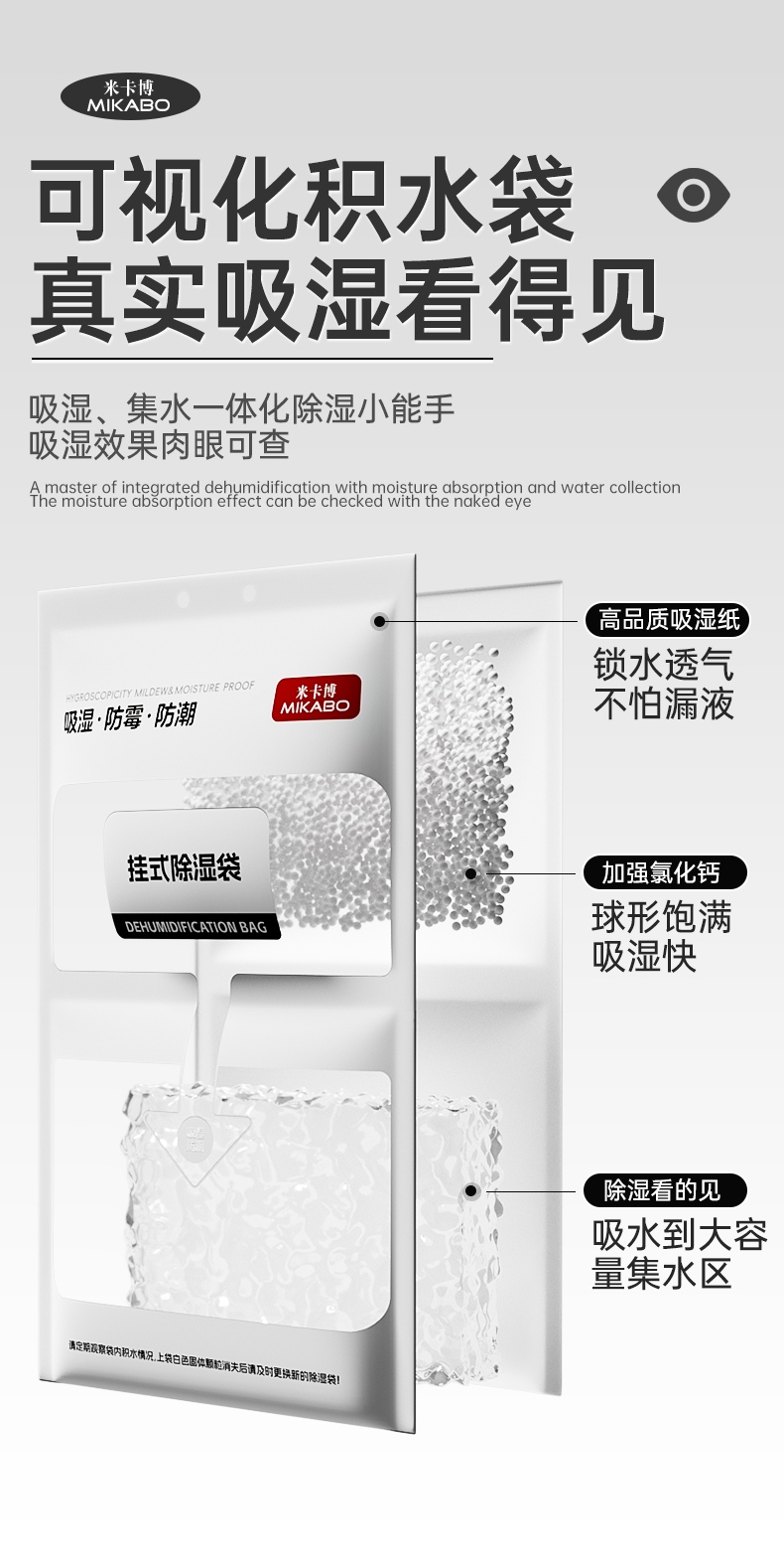 积分兑换【拍1发20袋-米卡博房间除湿袋】可视挂式吸湿袋 双层加厚 安全成分 吸湿不漏 无异味 母婴可用 居家/卧室/客厅/学生宿舍#异业福利