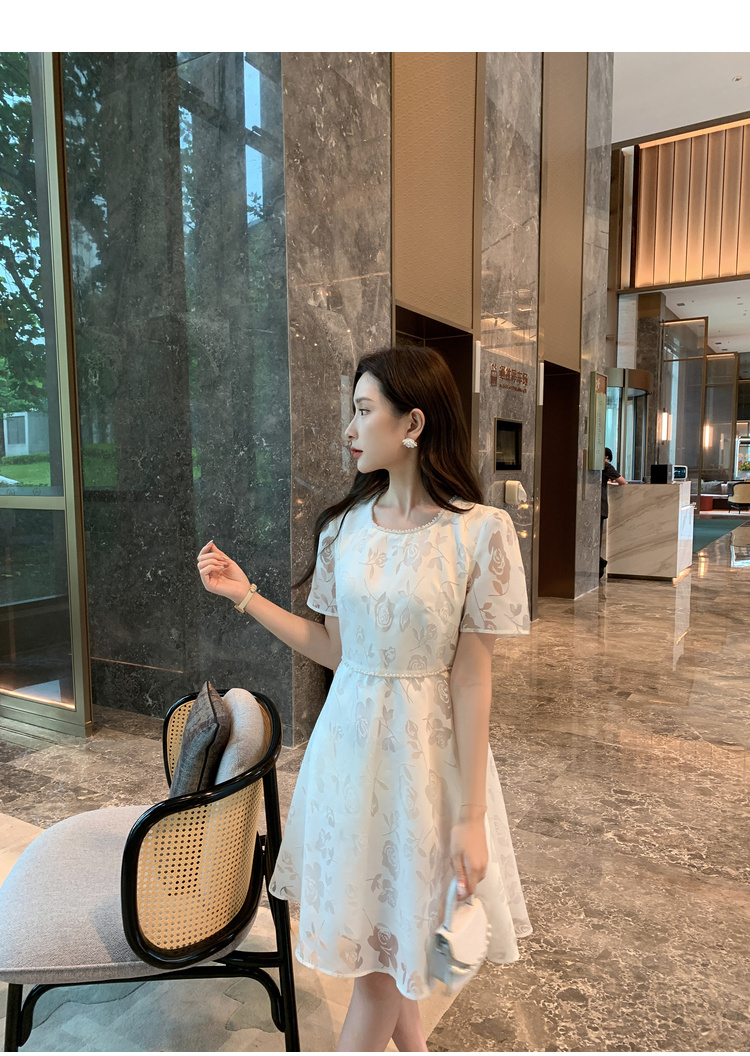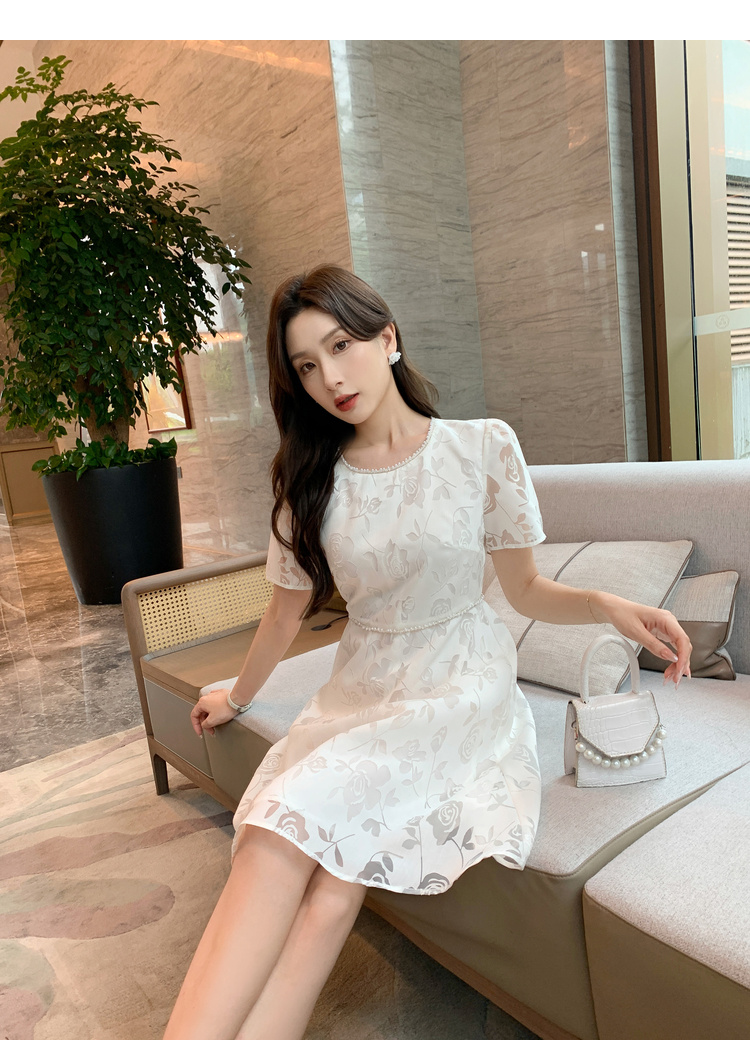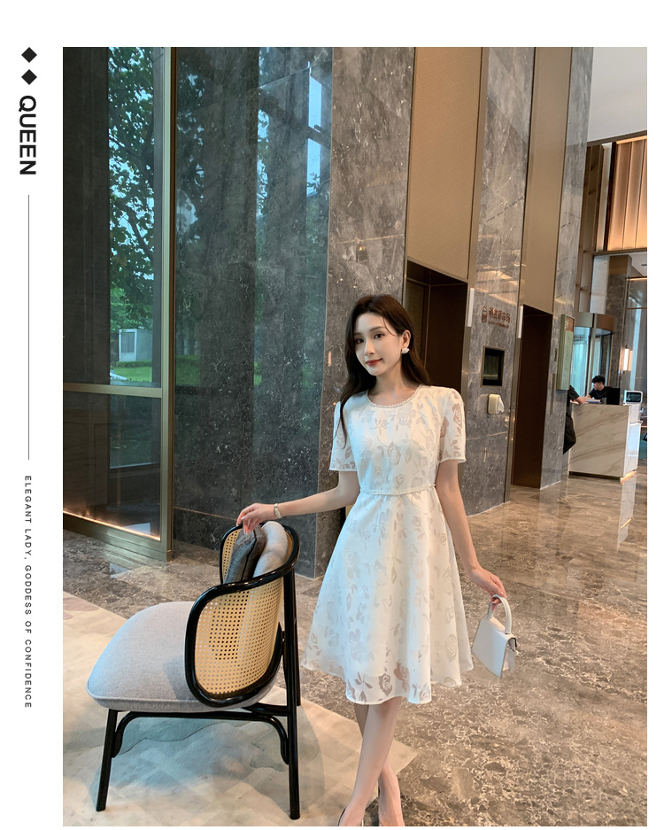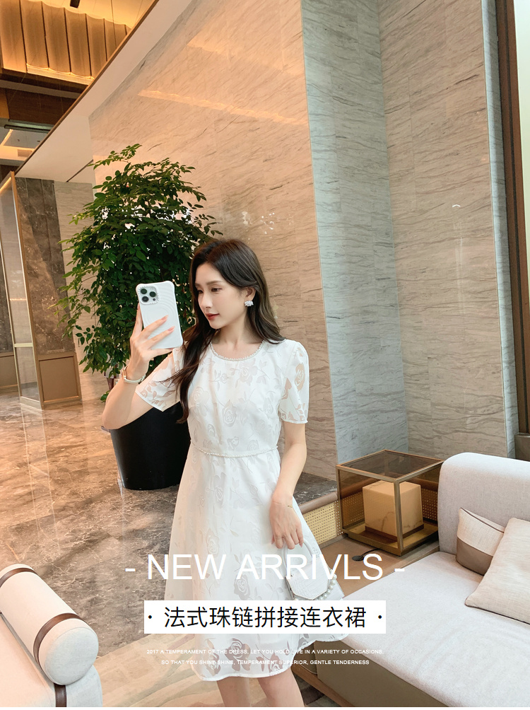 [奢姿轻奢系列]法式珠链连衣裙大码女装夏季新款胖妹妹圆领裙子8942860127