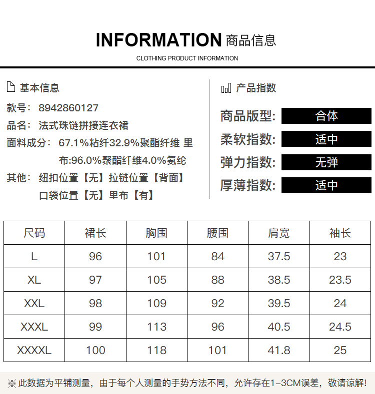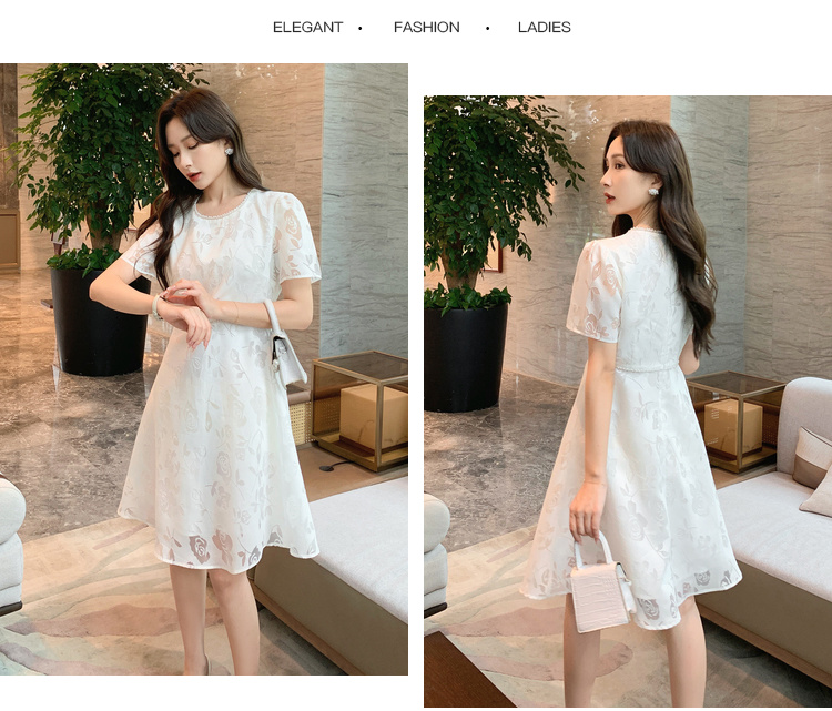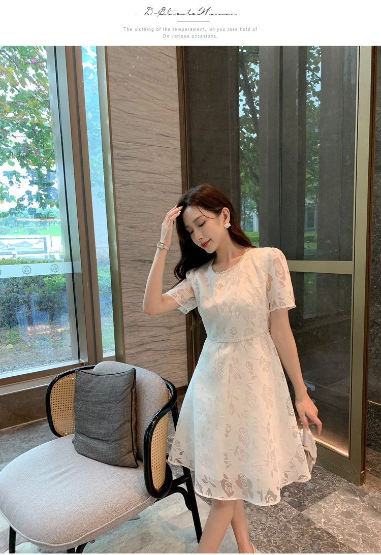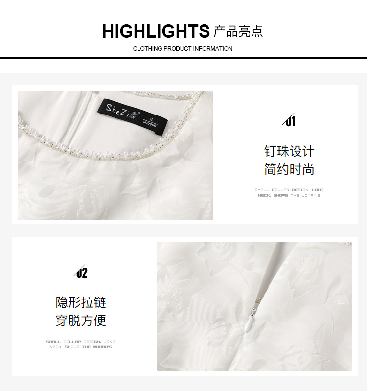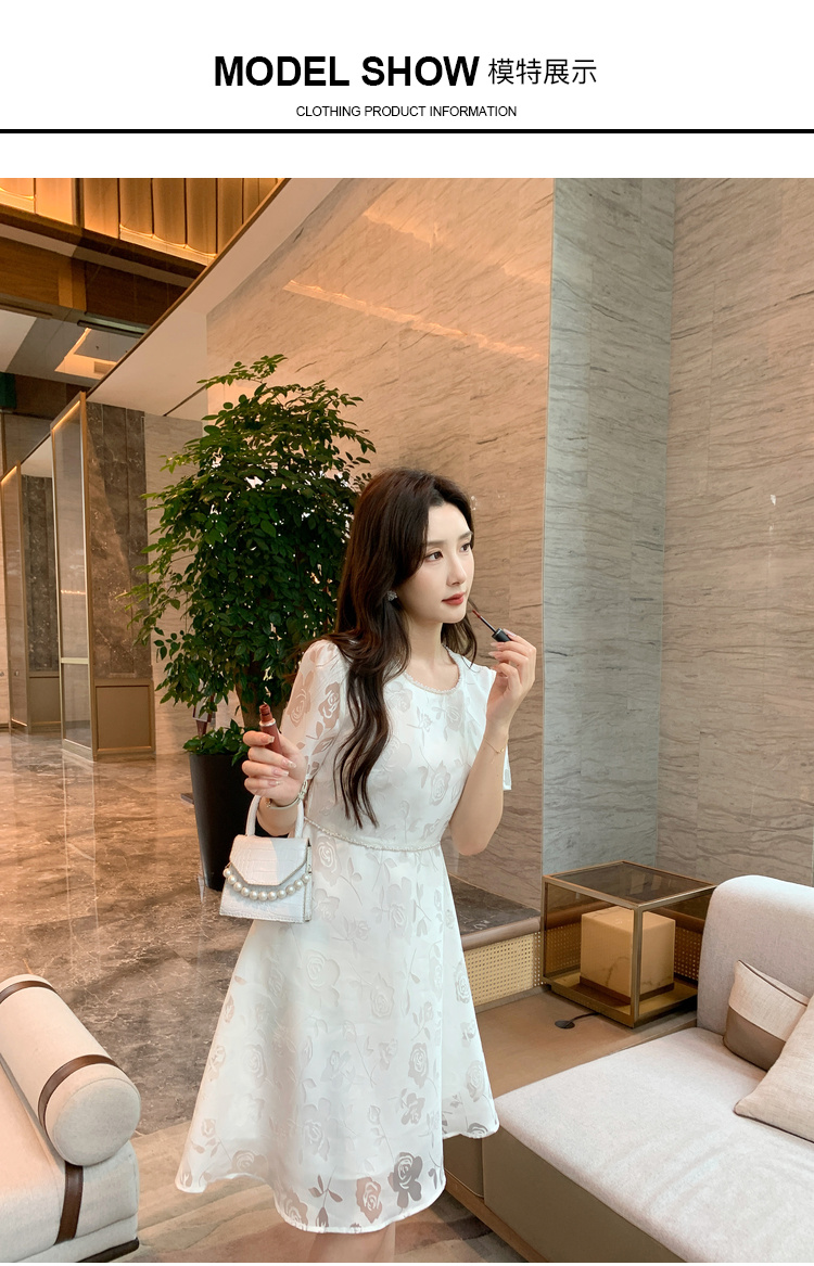 [奢姿轻奢系列]法式珠链连衣裙大码女装夏季新款胖妹妹圆领裙子8942860127