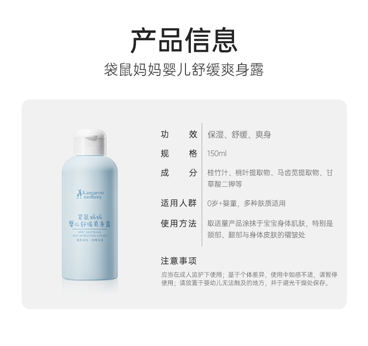 【婴儿爽身露】新生儿可用 舒缓热痱泛红 凝露质地缓解闷热 全身舒爽 婴儿舒缓爽身露150ml