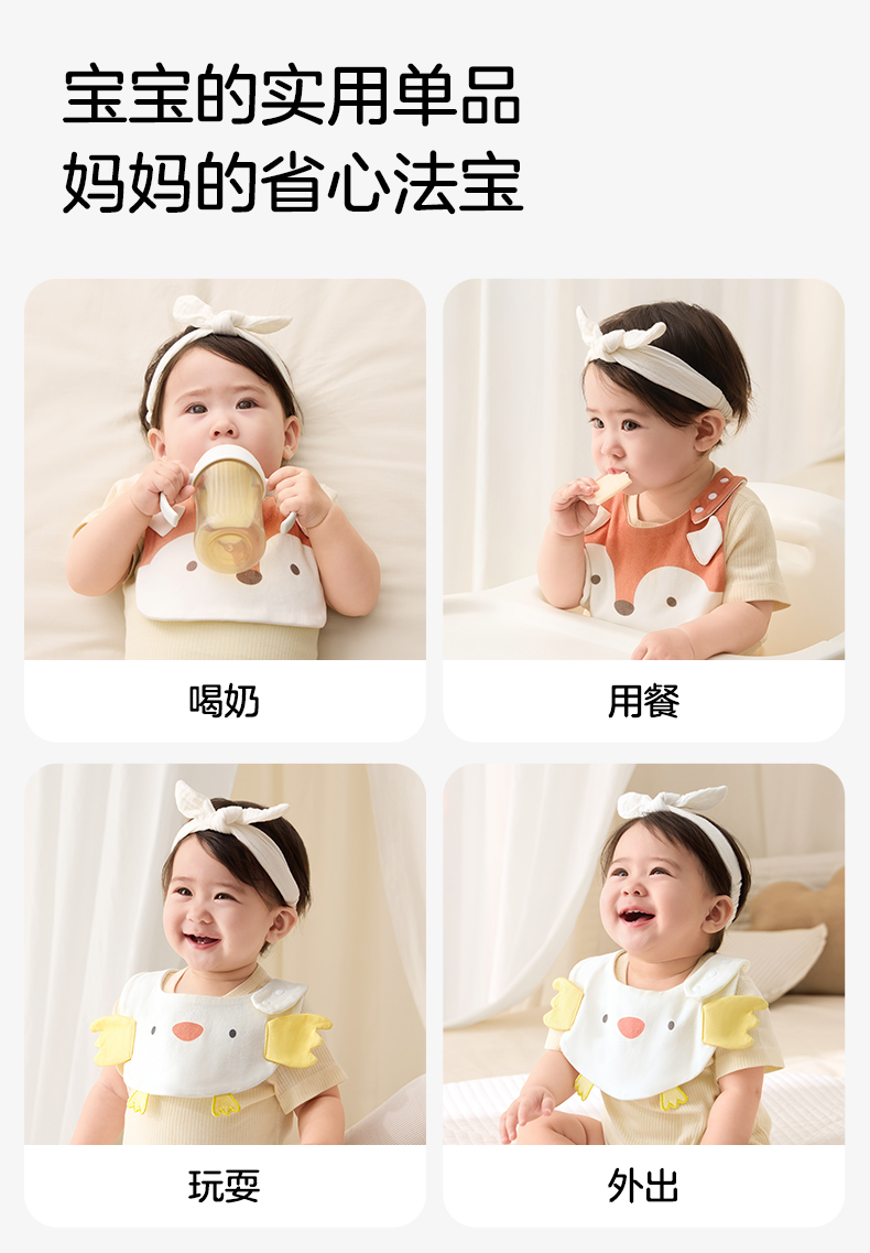 婴儿围嘴纯棉a类新生儿男女宝宝萌趣口水巾