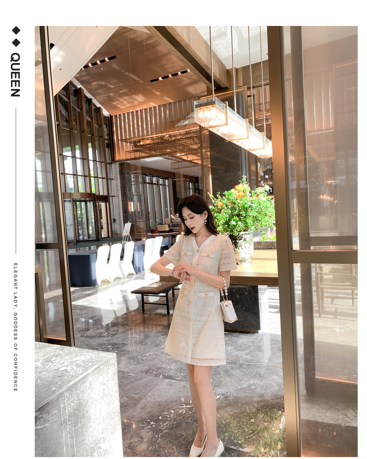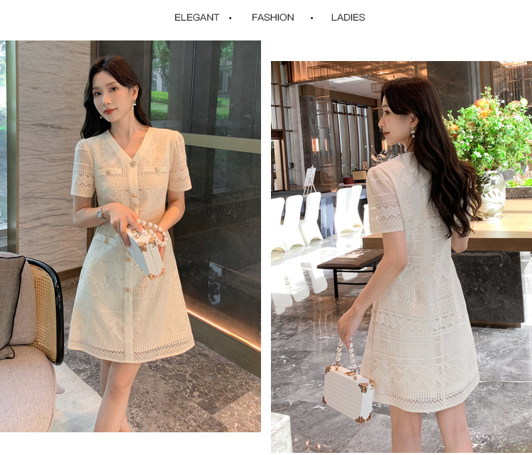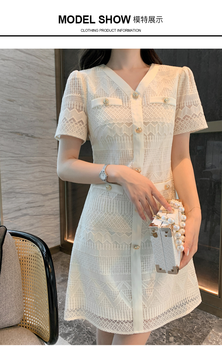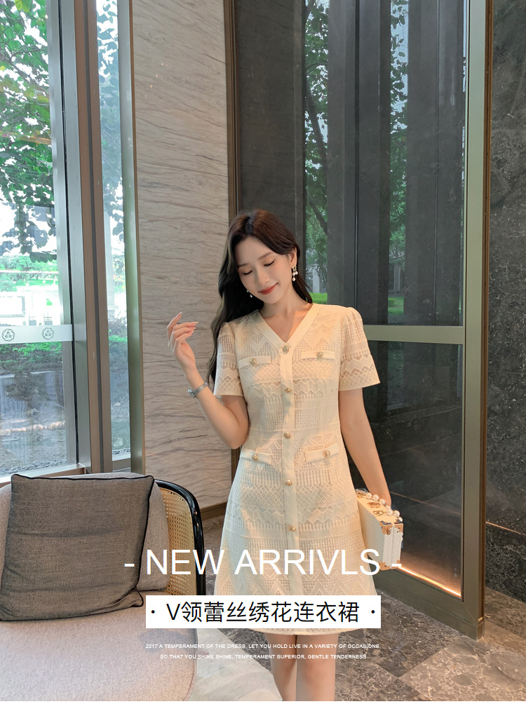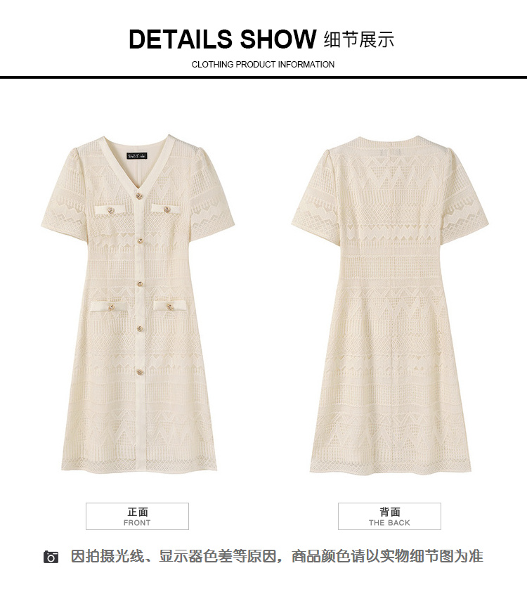 【清仓超15天不保价】奢姿2025年夏季新款大码女装气质V领裙子胖妹妹蕾丝绣花连衣裙9942826439【1】