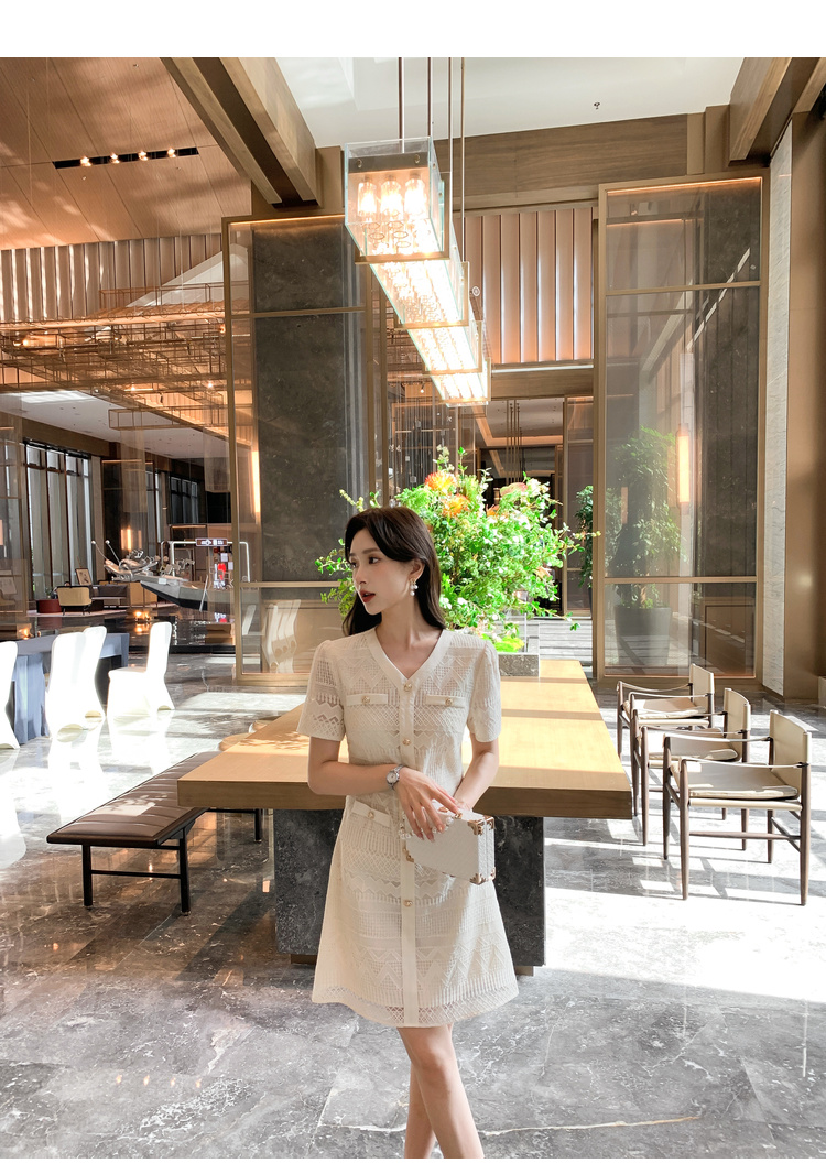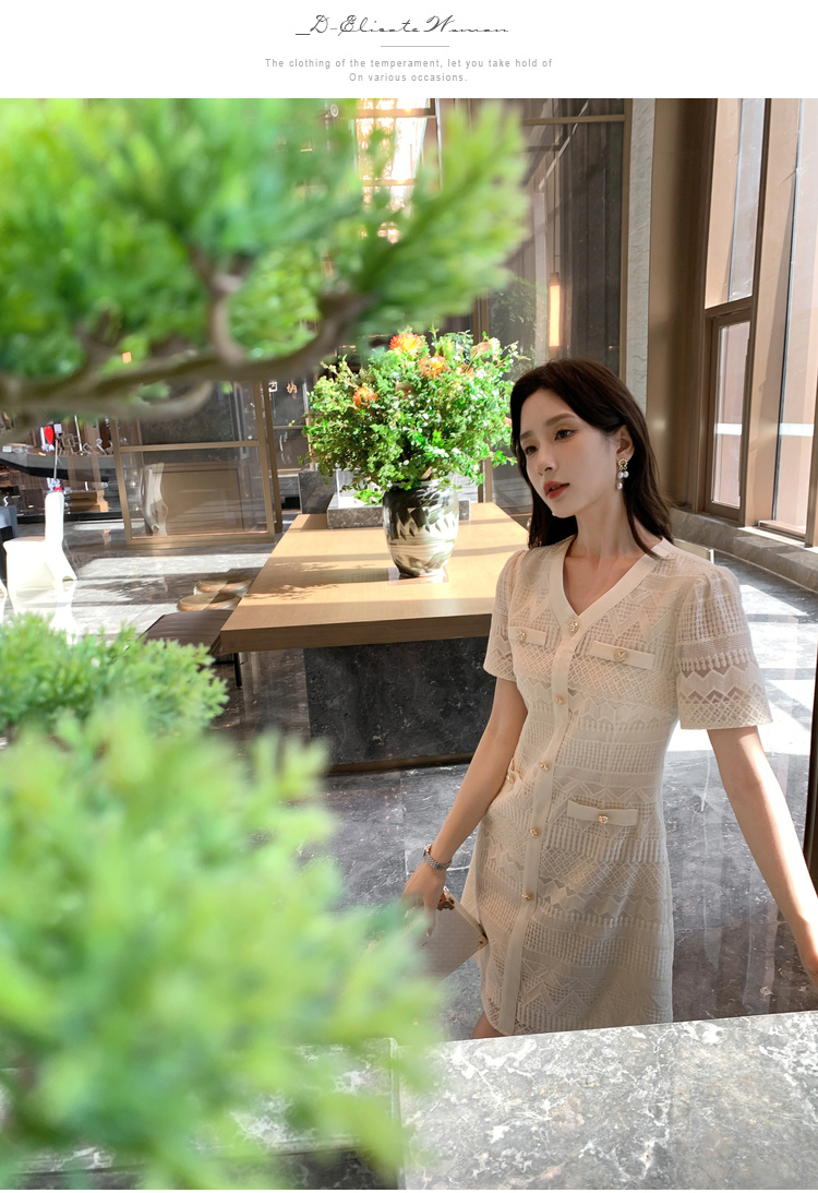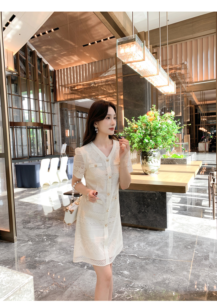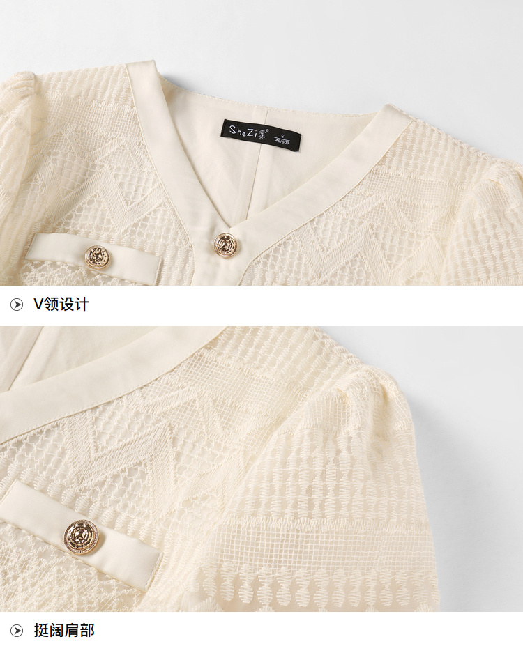 【清仓超15天不保价】奢姿2025年夏季新款大码女装气质V领裙子胖妹妹蕾丝绣花连衣裙9942826439【1】
