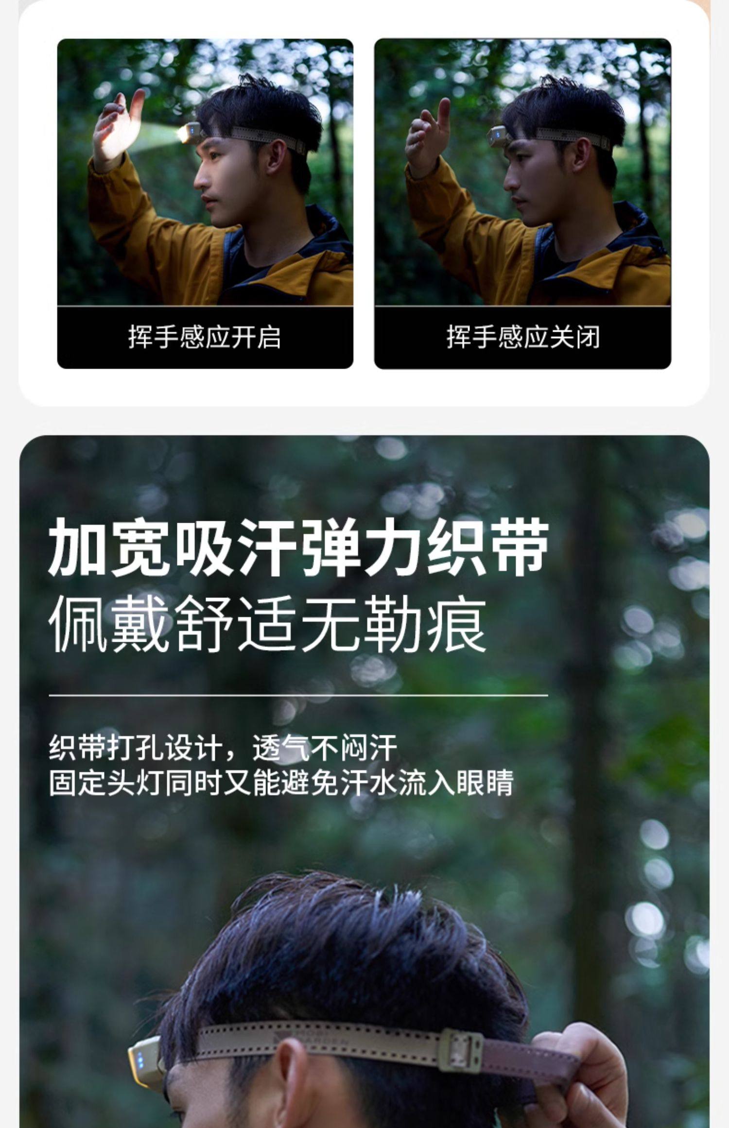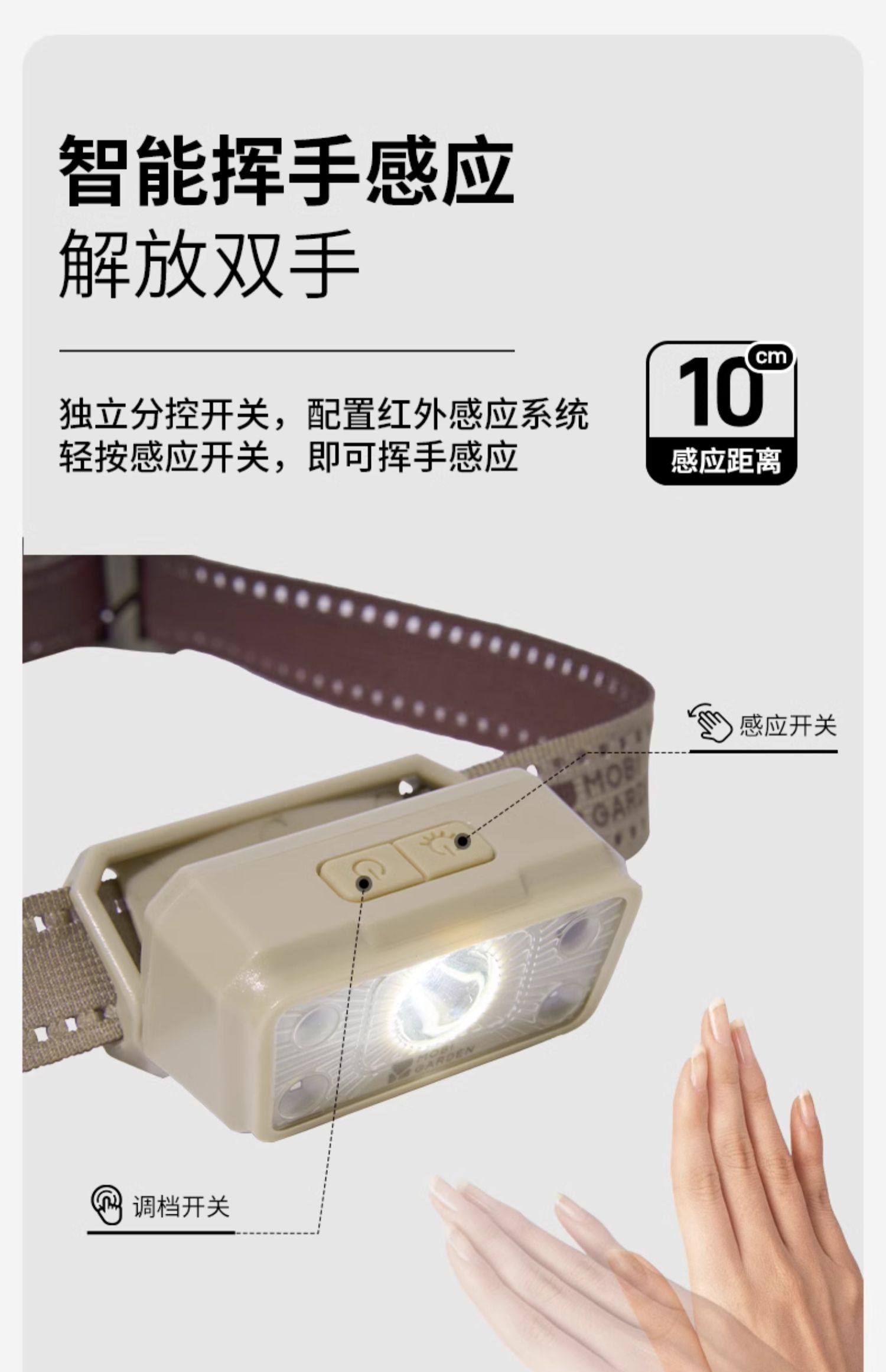 牧高笛零度头灯感应头灯户外夜钓强光充电超亮长续航头戴式照明灯