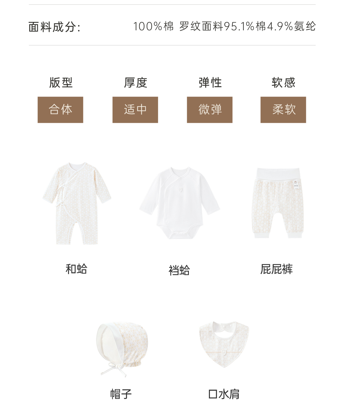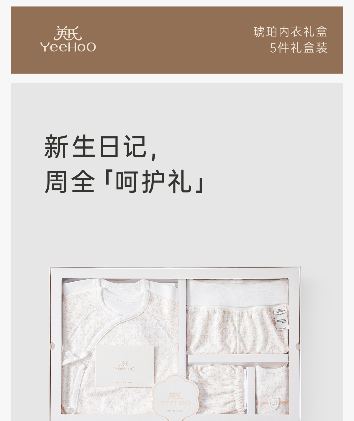 英氏婴儿衣服2023款新生儿满月送礼高档5件套礼盒YMLNJ0P013A