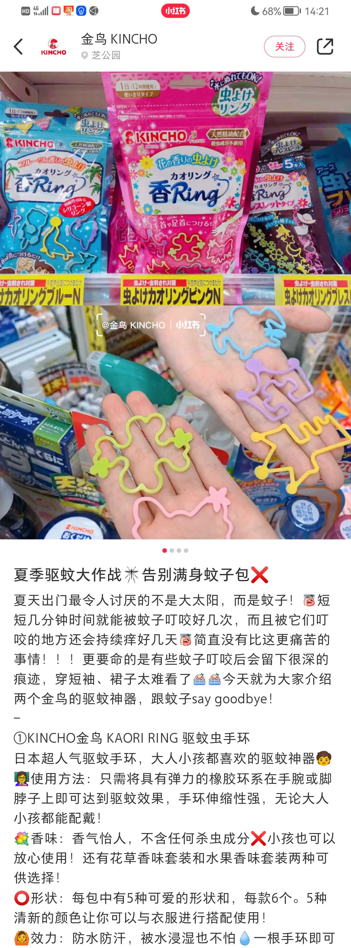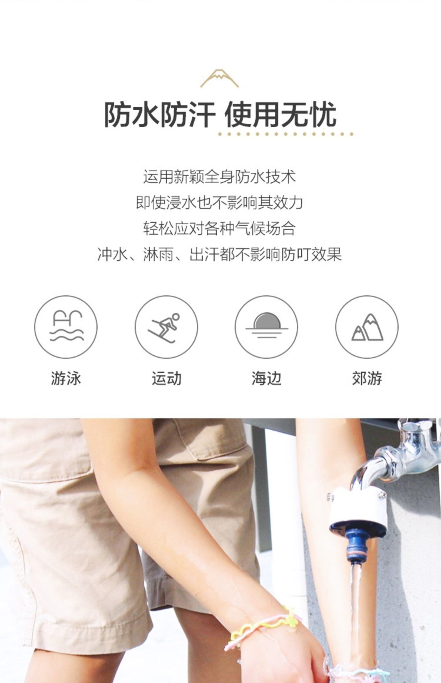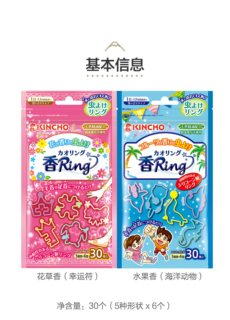 这款手环是日本KINCHO金鸟,是世界上第一家发明蚊香的公司,专注做驱蚊杀虫已经130多年了。研究了下手环的驱蚊原理,传统的驱蚊产品含有的四氟苯酯和避蚊胺DEET是有危害性的,而这个手环主打配方安全,是用一种纳米技术将从植物中提取到的精油,萃取出天然活性粒子,融进食用级生物硅胶里,然后制成固态香胶的手环,慢慢挥发,达到驱蚊的效果。手环是防水的,湿了也不会影响驱蚊效果,游泳也可以戴。