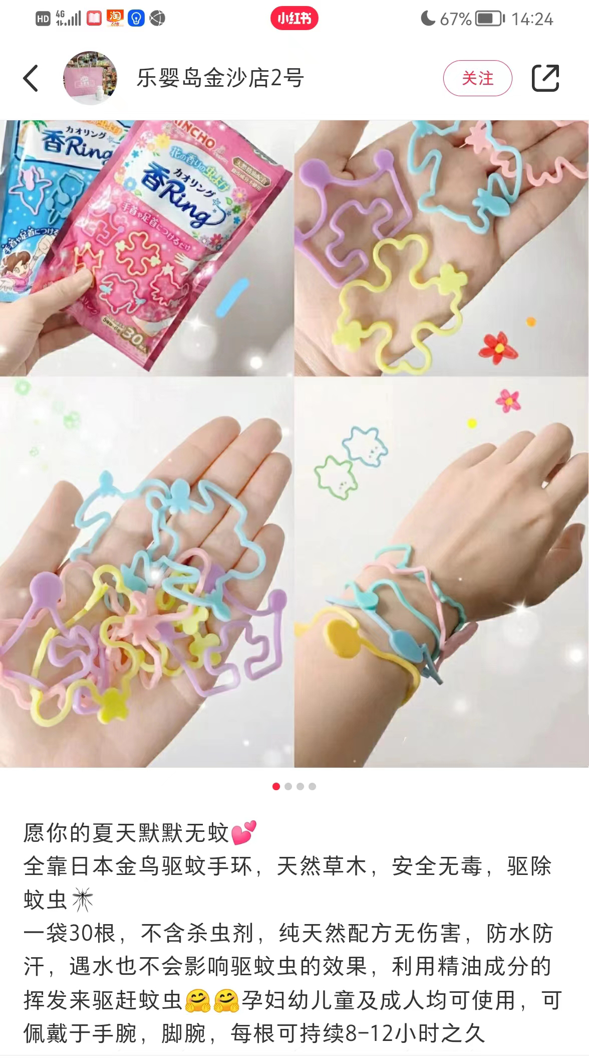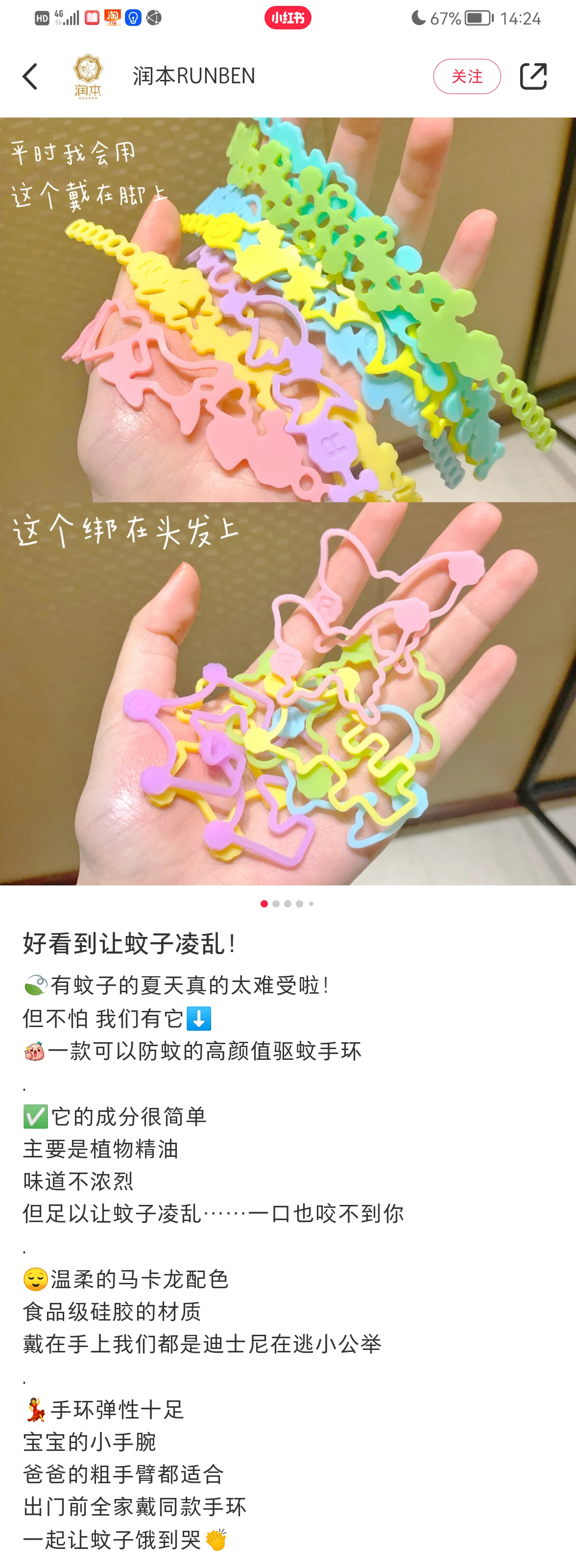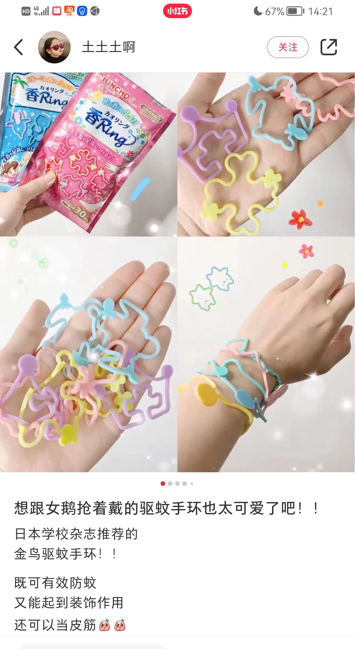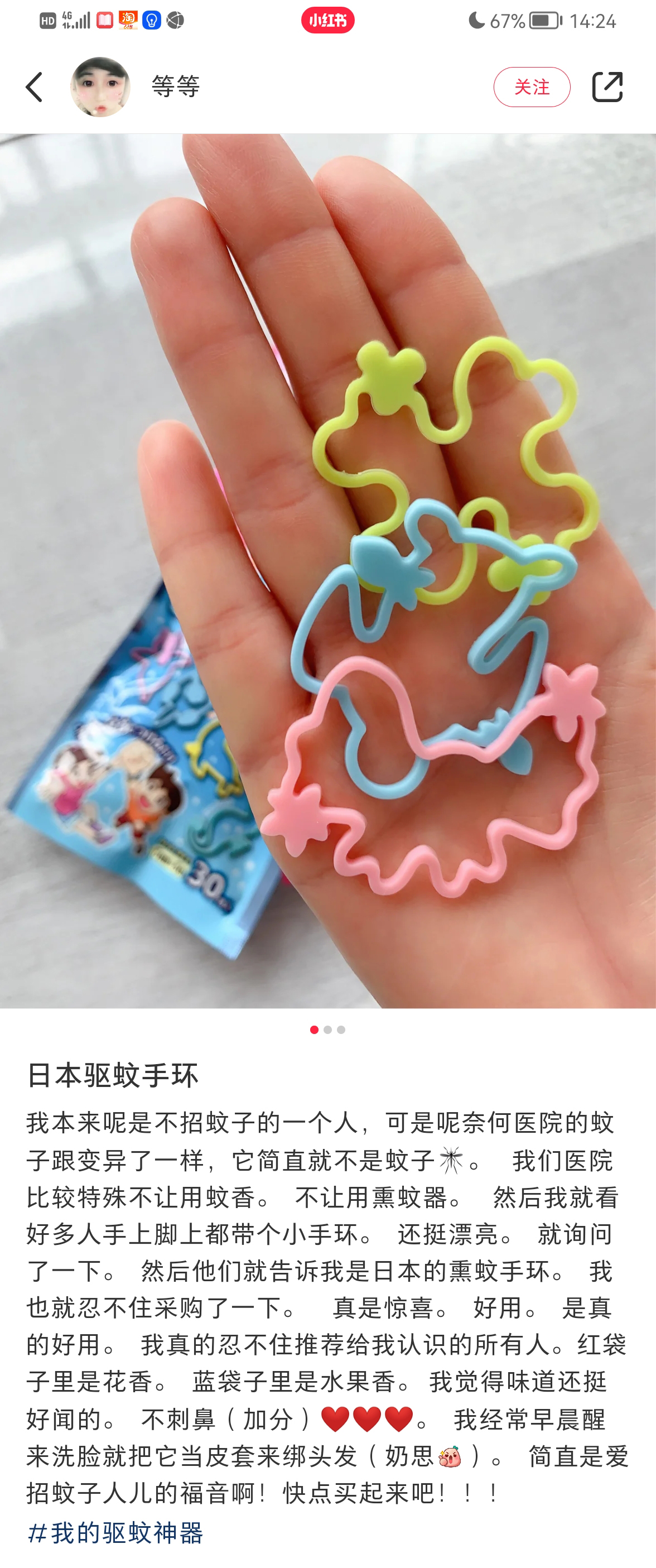 再给大家上一款防蚊手环,彩色卡通的形状,像个小皮筋一样,戴在手上很可爱,大人小孩都能戴。