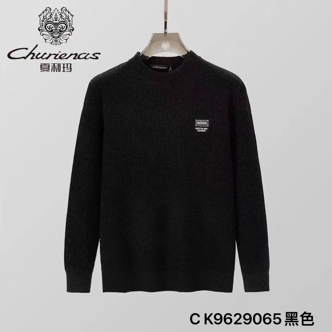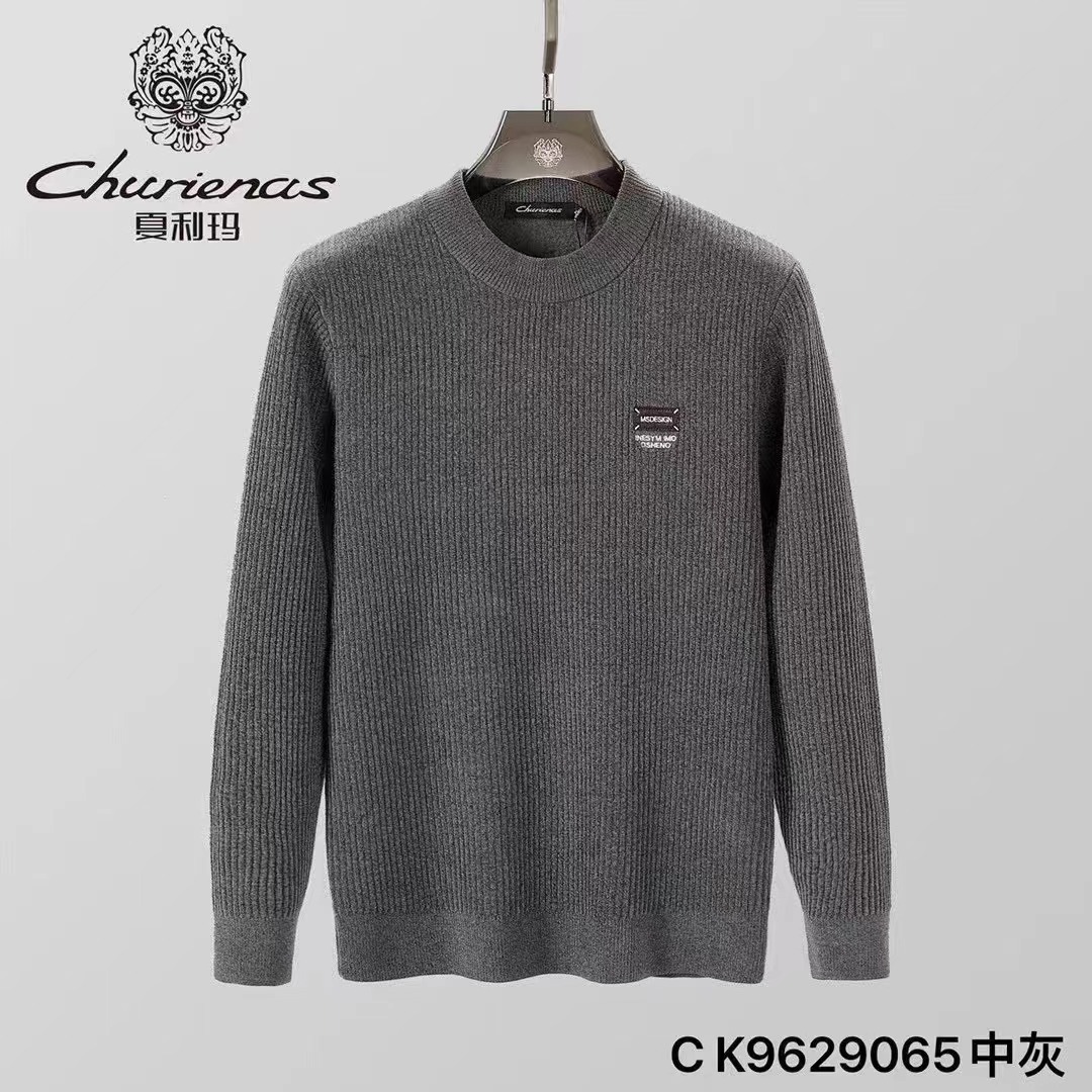 29065# 高端圆领加绒针织毛衣男士2025新款商务保暖内搭打底衫男款上衣