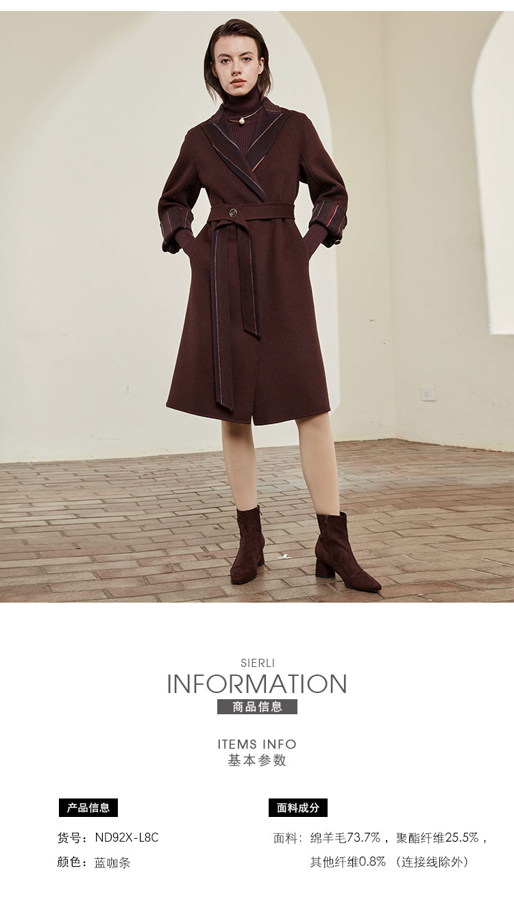 ND92X斯尔丽商场同款[正反两面可穿]时尚干练枪驳领显高羊毛大衣女外套