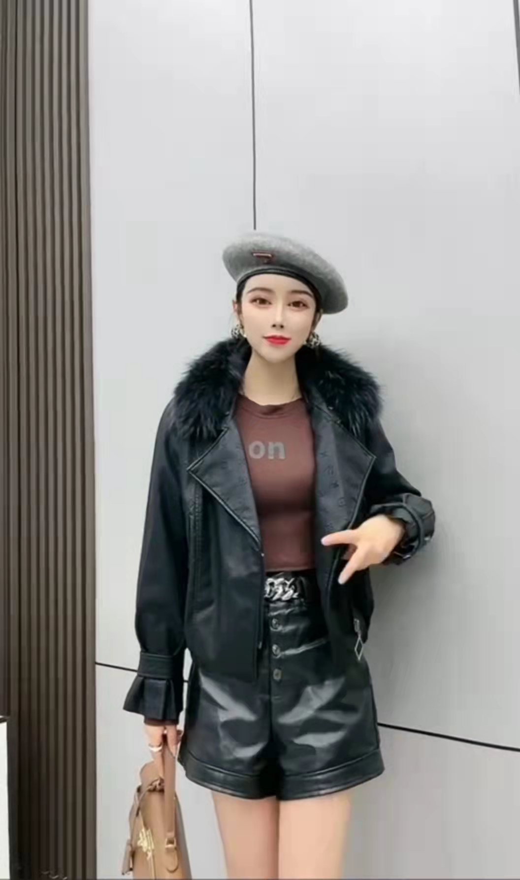 谦亿隆棉皮油,货号211152,小款设计,真皮毛领