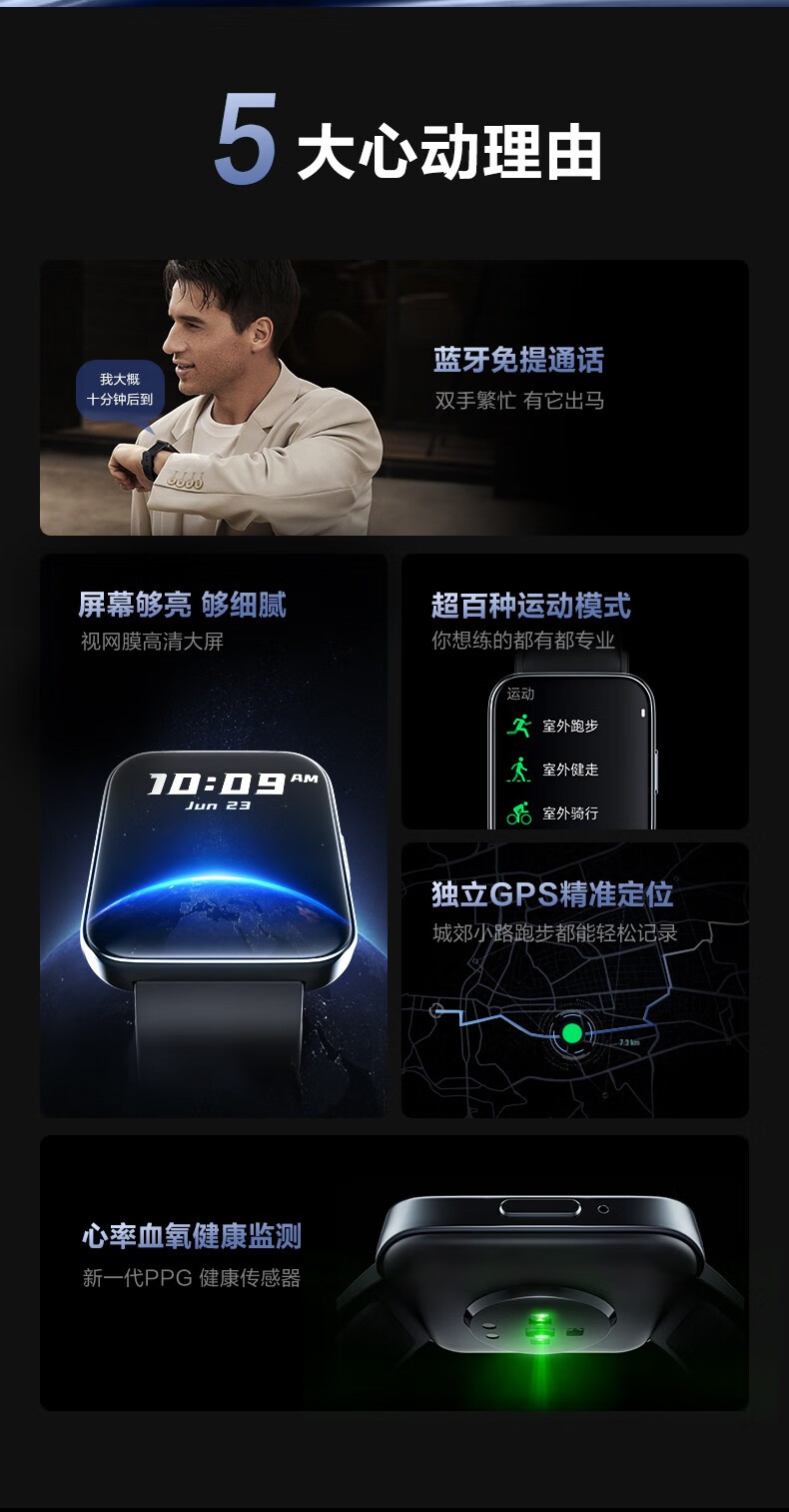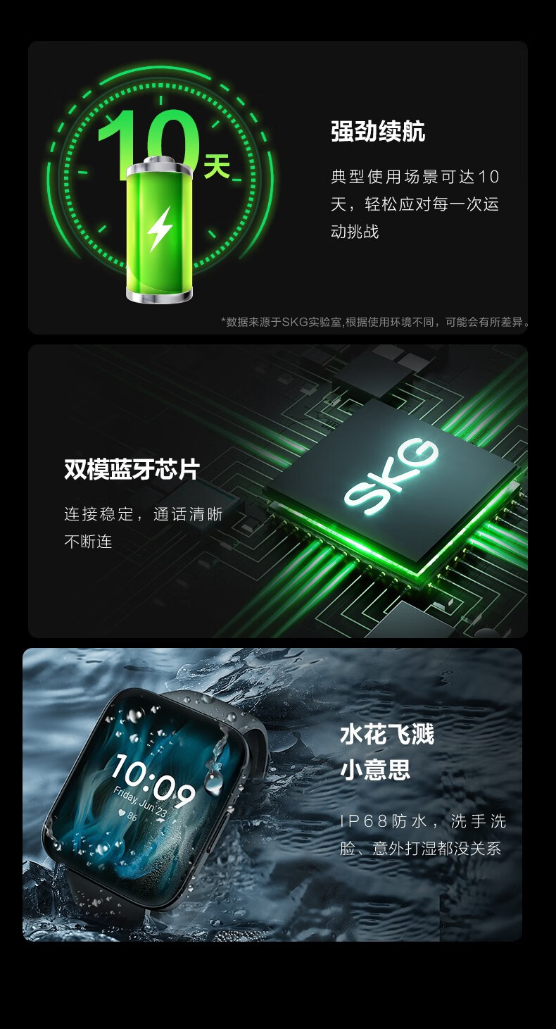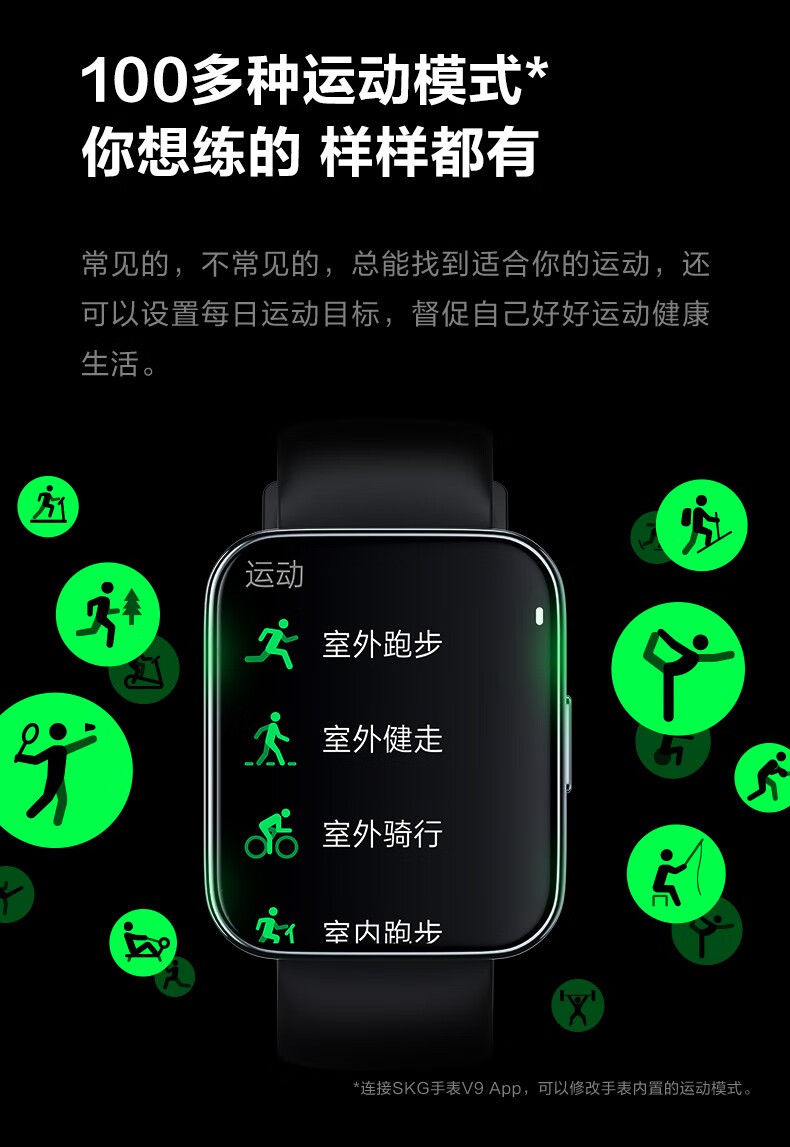 SKG智能手表 V9系列1代豪华款 心电记录仪血氧检测长续航防尘防水运动健康监测多功能高端
