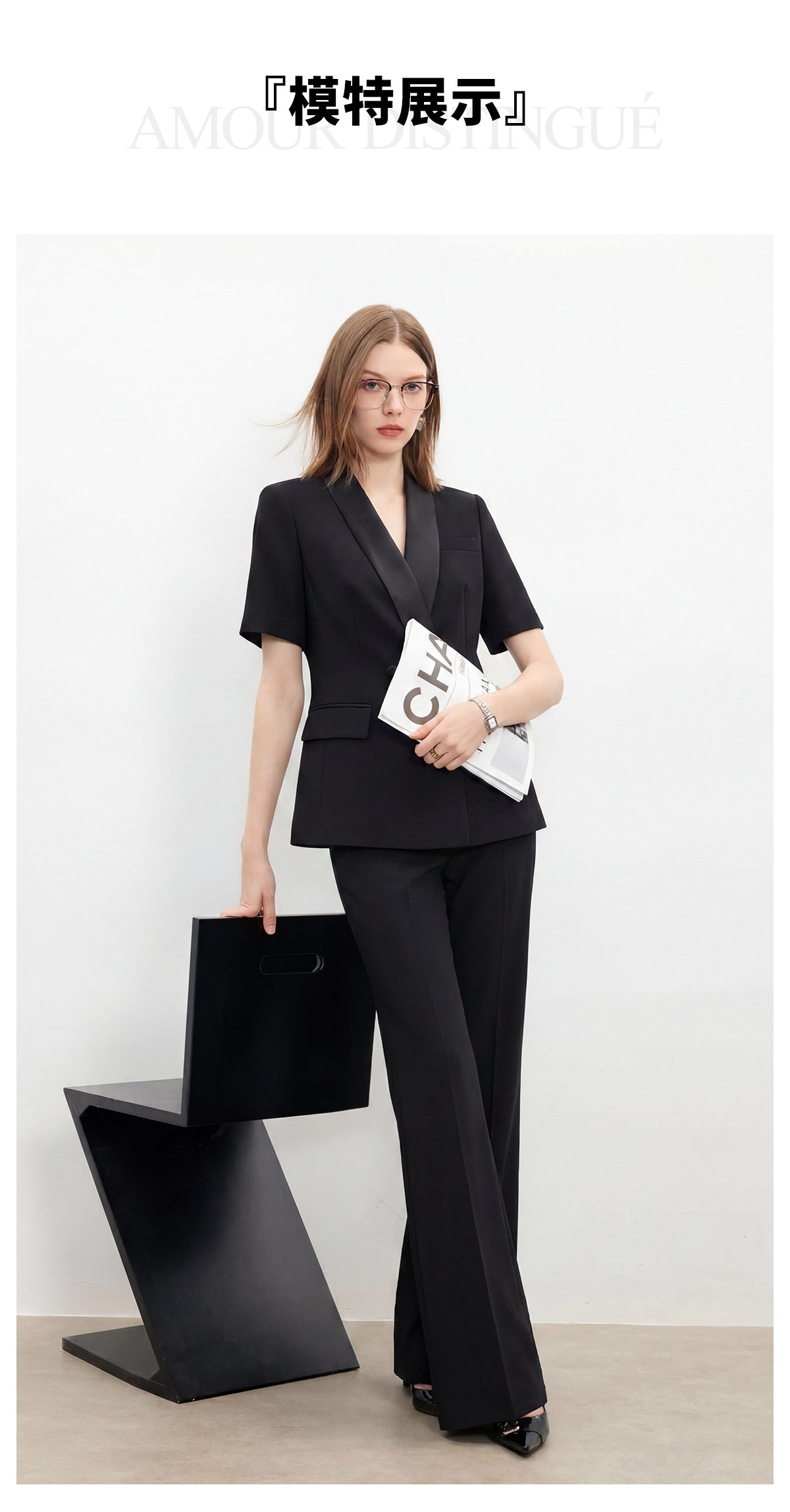 IWY/黑色职场总裁女夏短袖高级感商务气质优雅西装套裤套装C6038+P6039