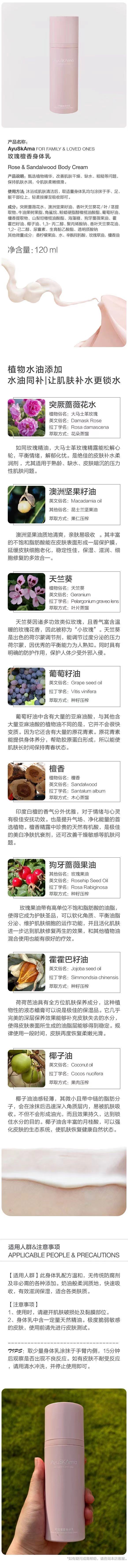 猫太推荐---- AyuSkAma 玫瑰檀香身体乳 温和植物配方 补水滋润 改善粗糙 120ml
