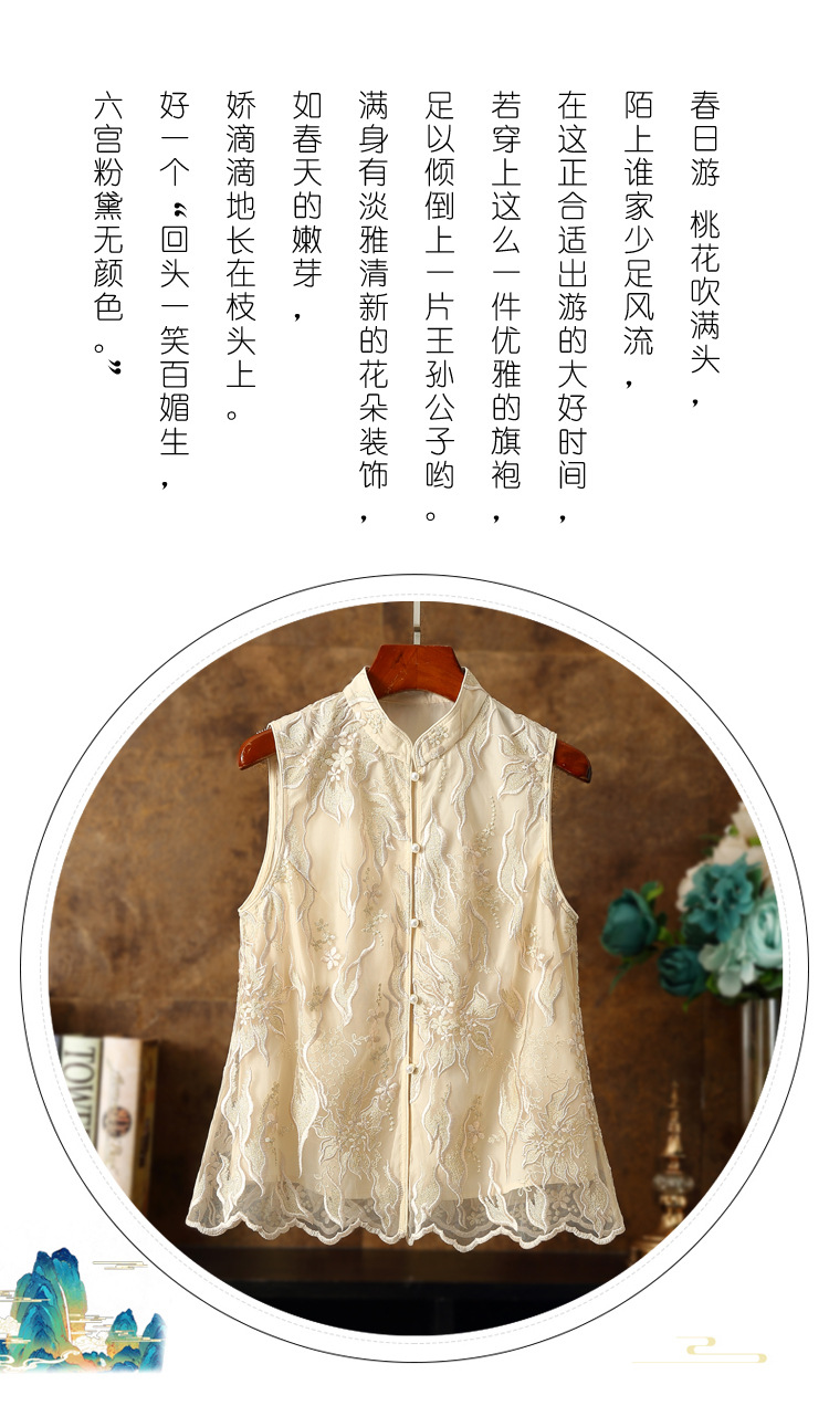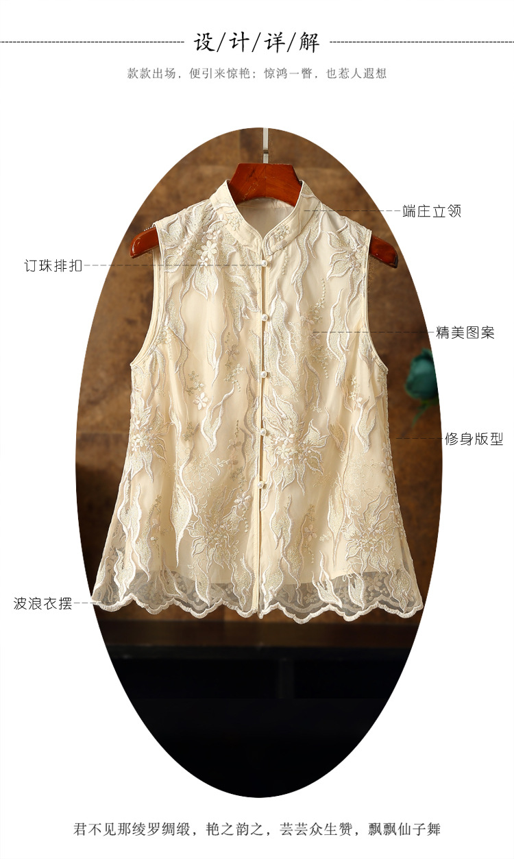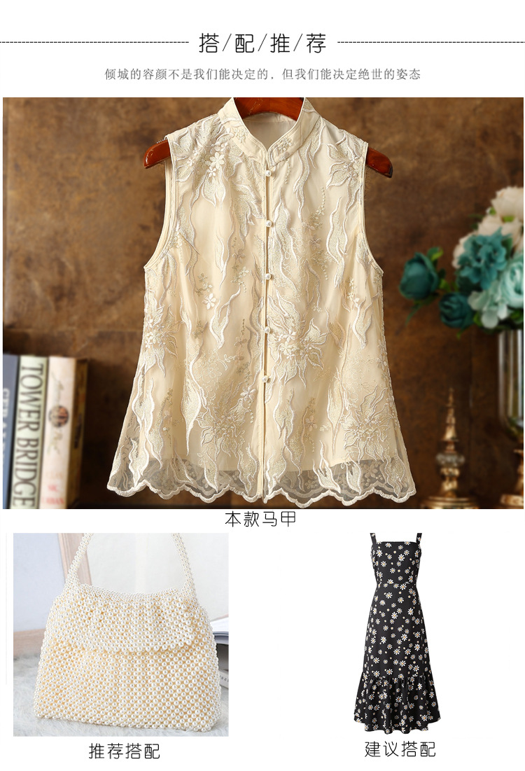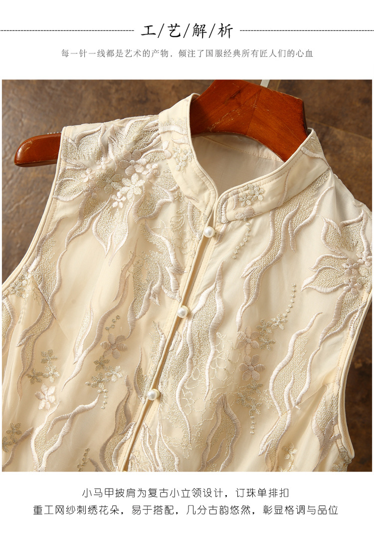 新款马甲,蕾丝网纱刺绣花朵坎肩披肩国潮无袖小披肩背心外搭ZSM-230528