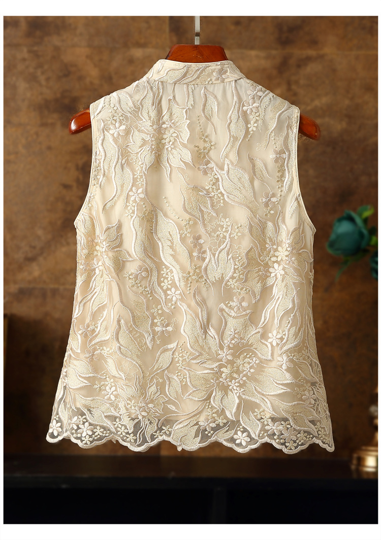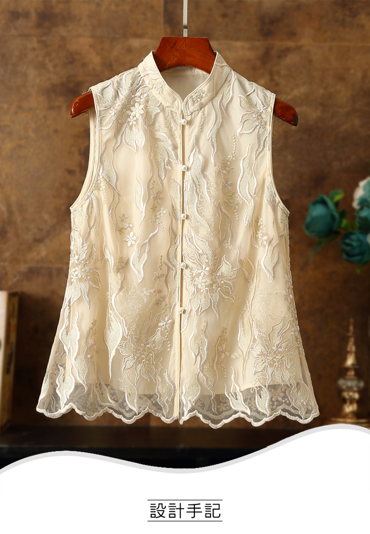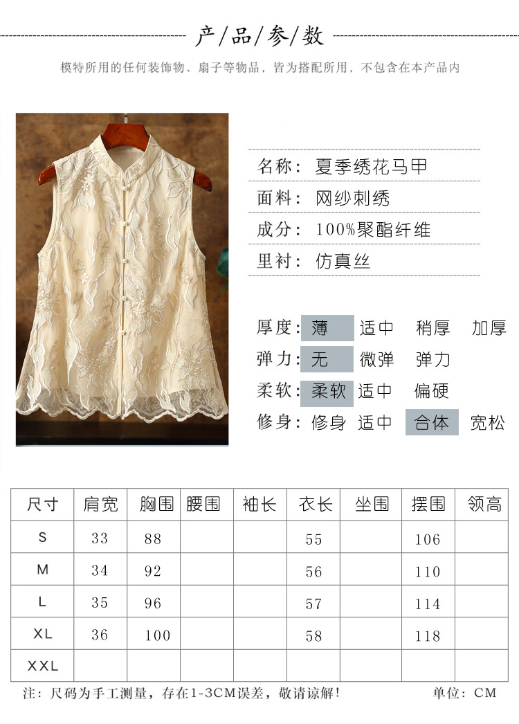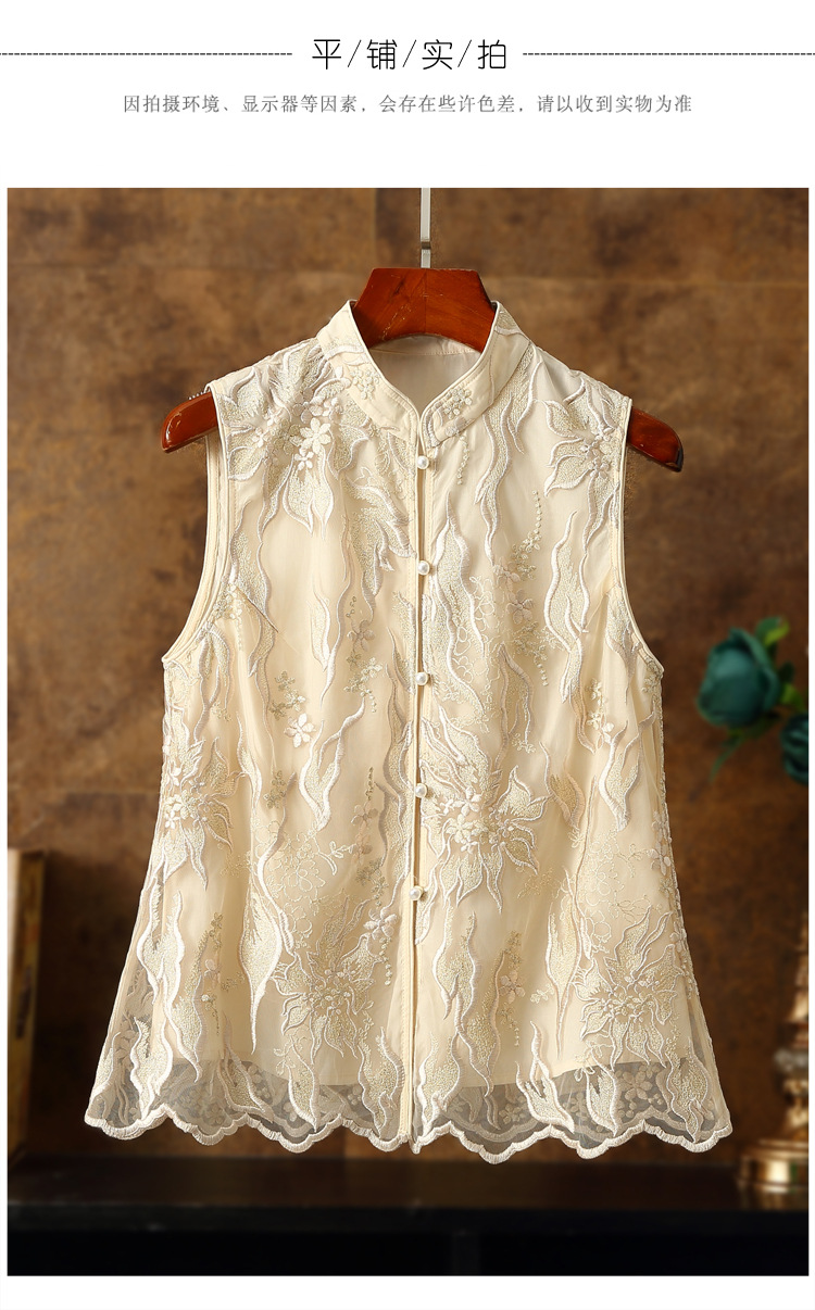 新款马甲,蕾丝网纱刺绣花朵坎肩披肩国潮无袖小披肩背心外搭ZSM-230528