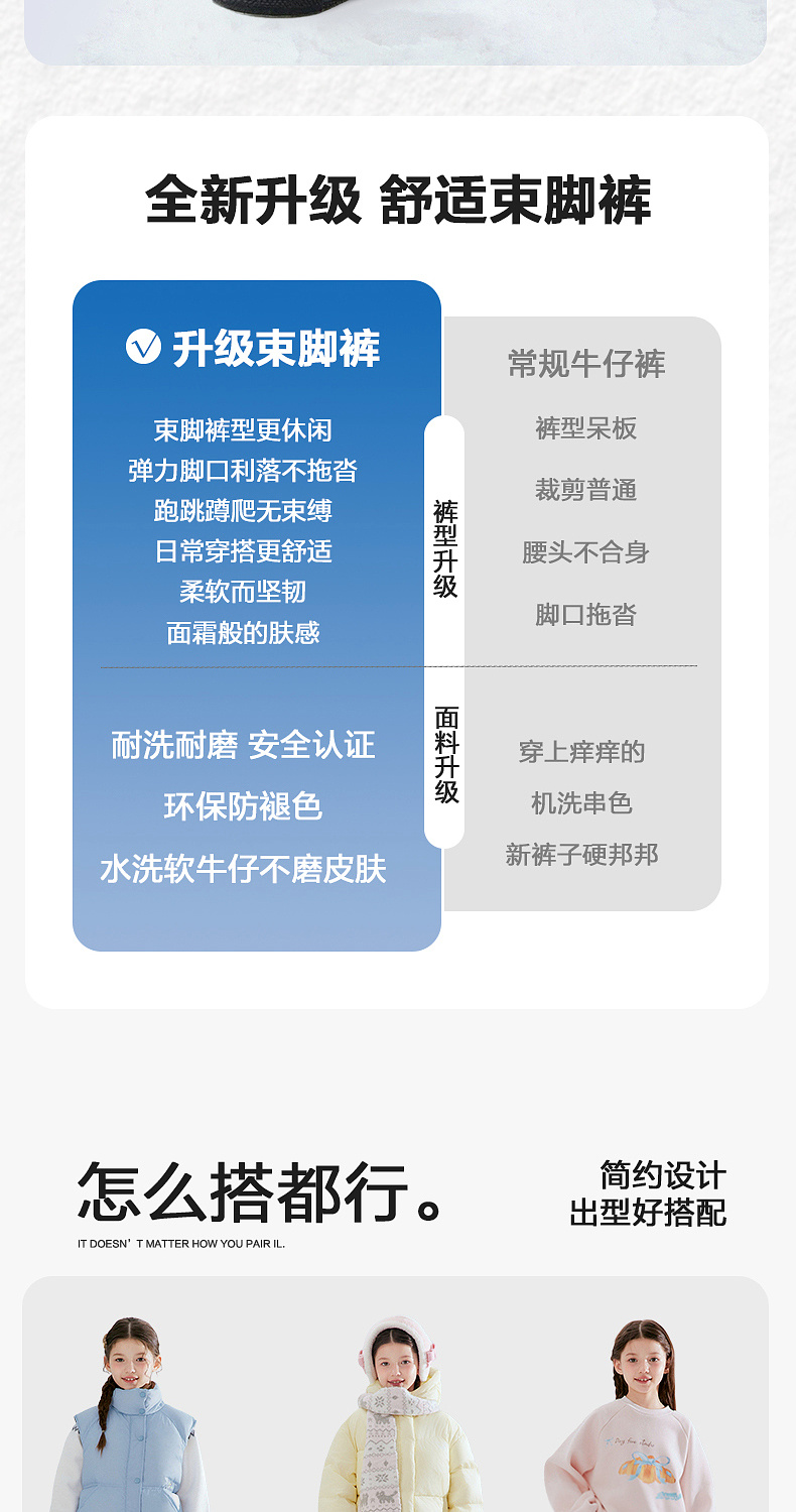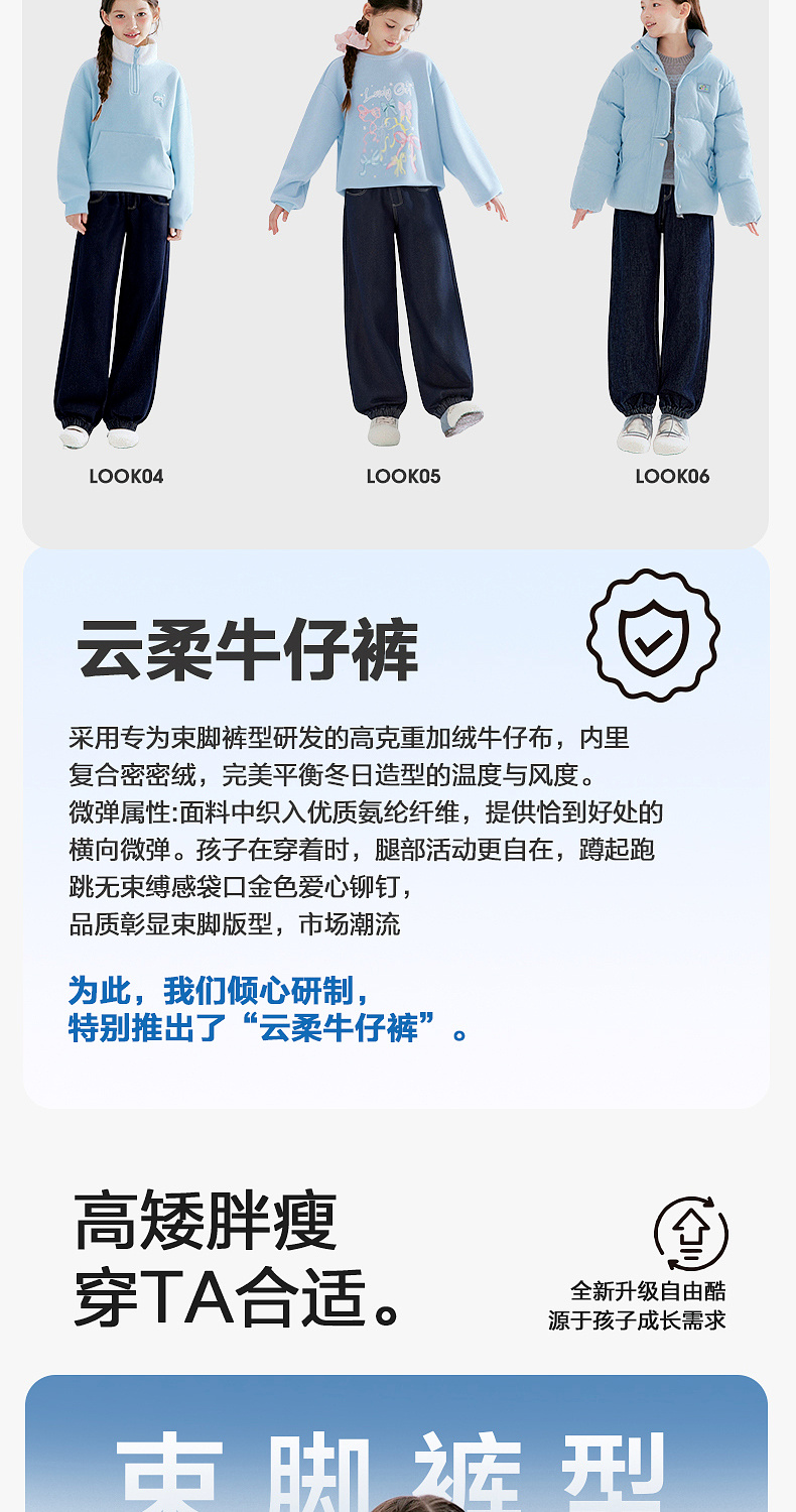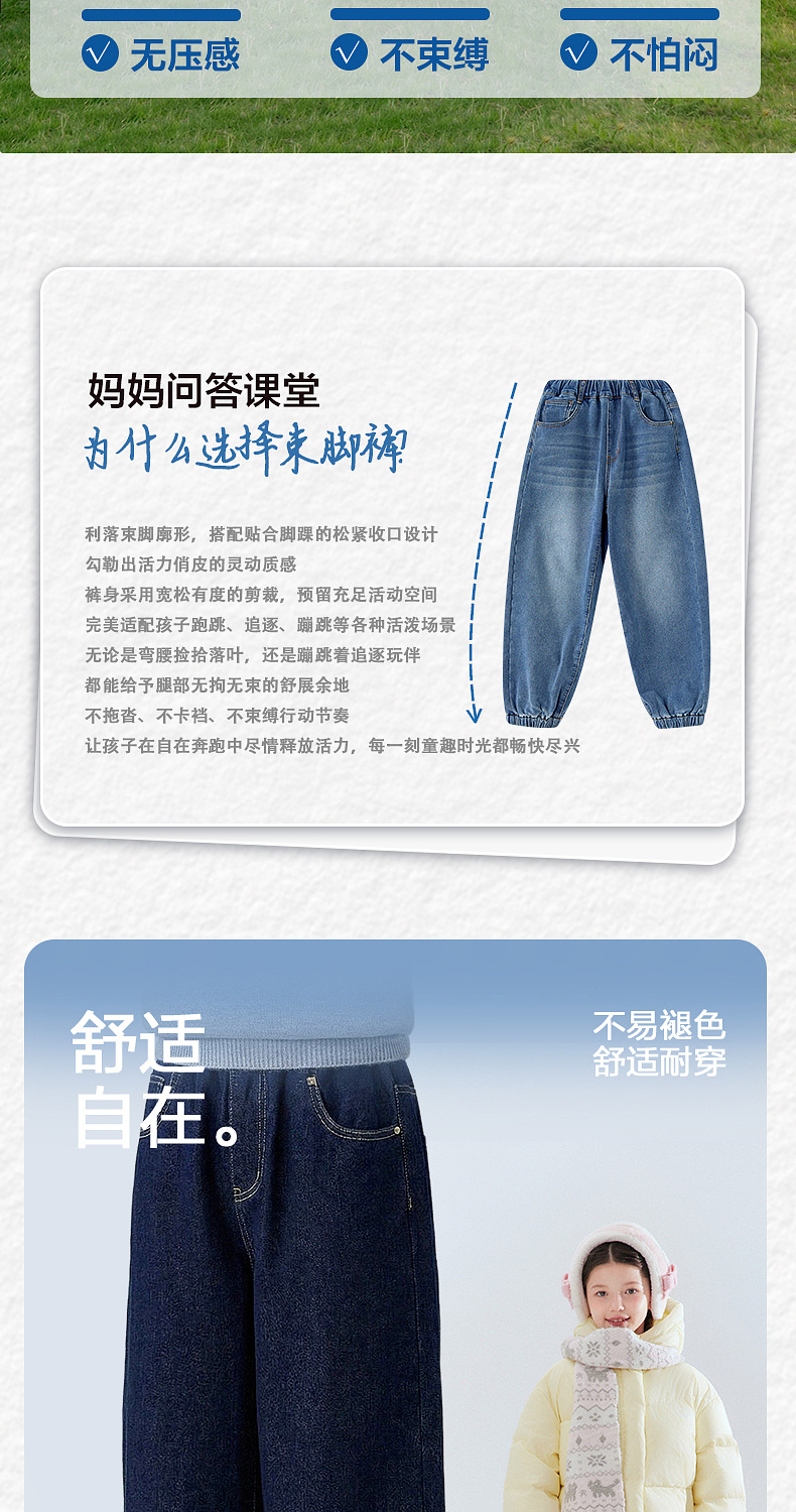 笛莎Deesha 童装女童裤子2025年冬季新款大童女孩儿童洋气束脚裤牛仔裤长裤