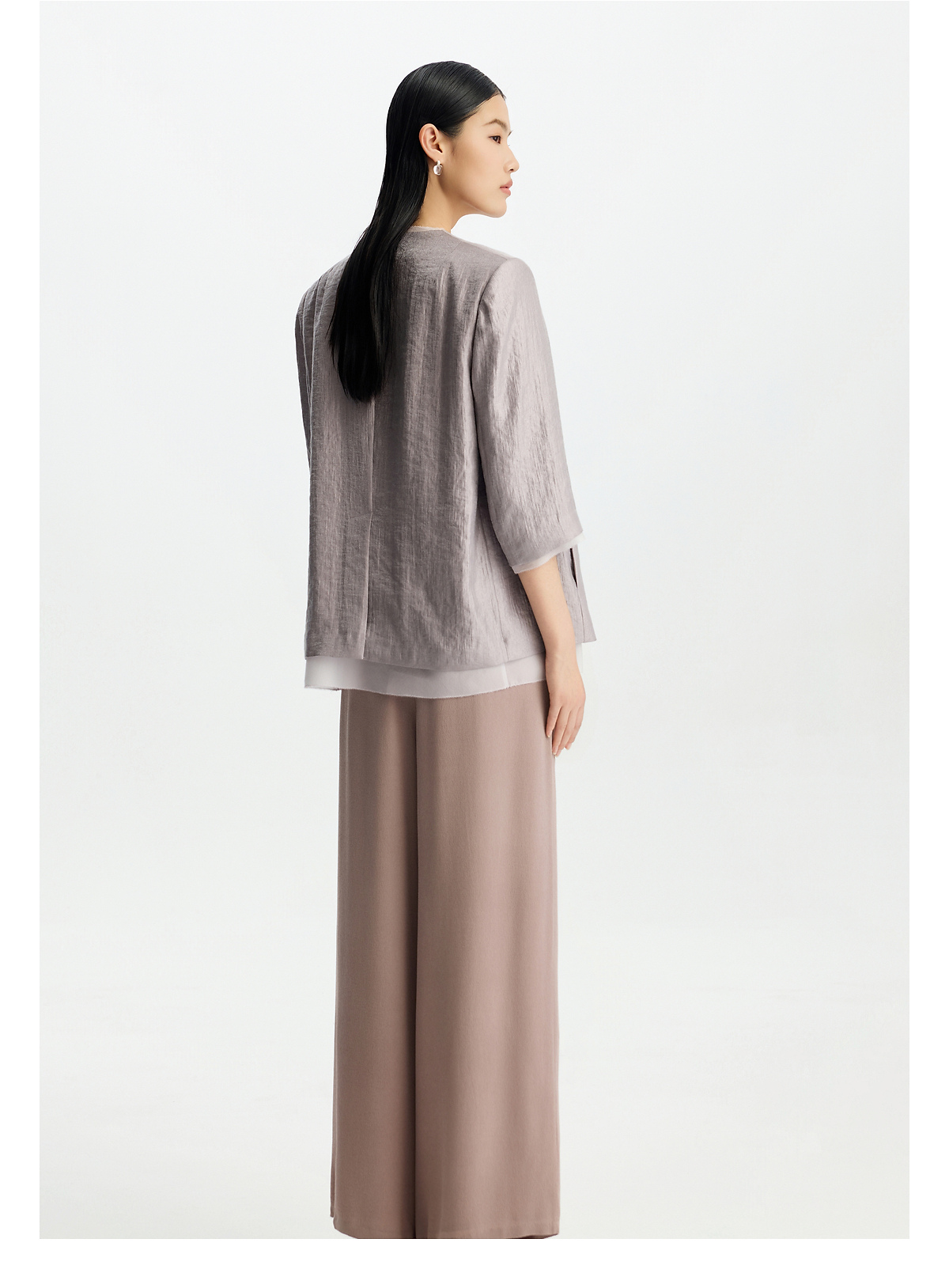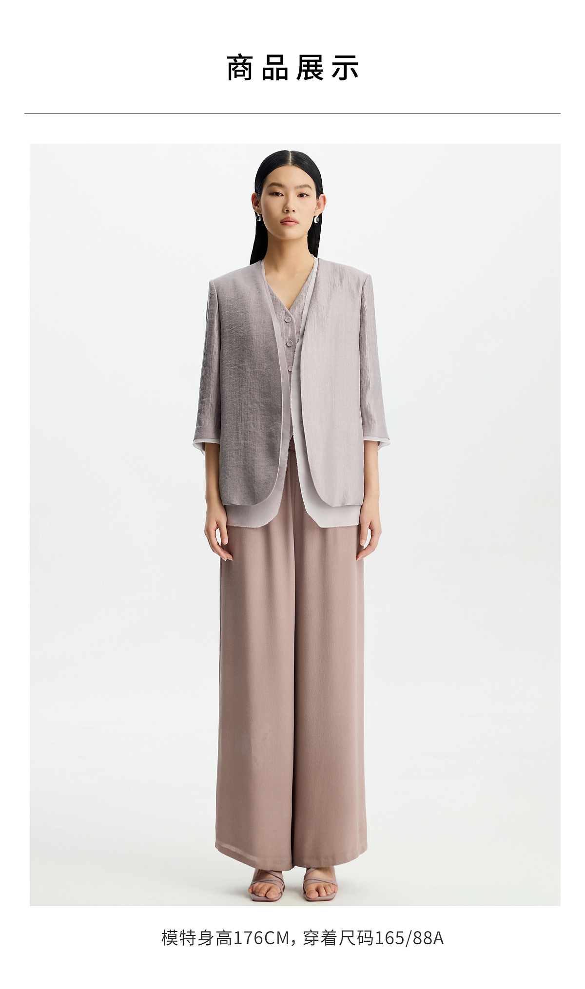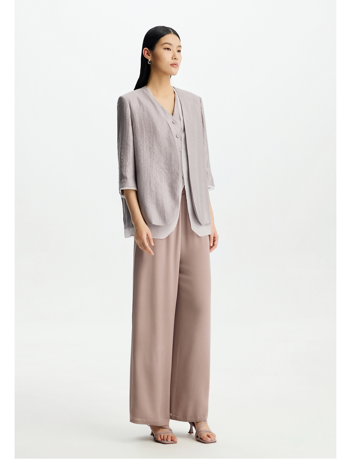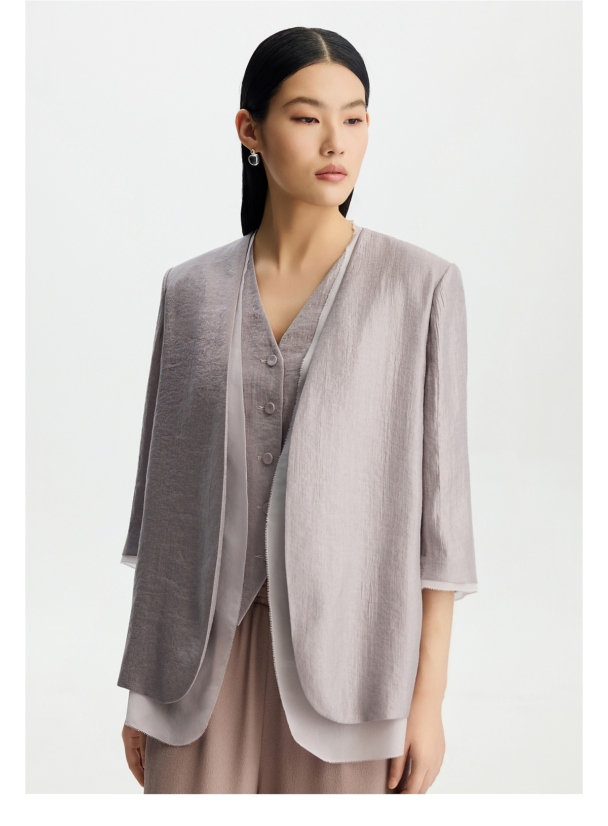 PURE TOUCH女26春夏新款七分袖v领西服外套双层时尚珠光开襟西装