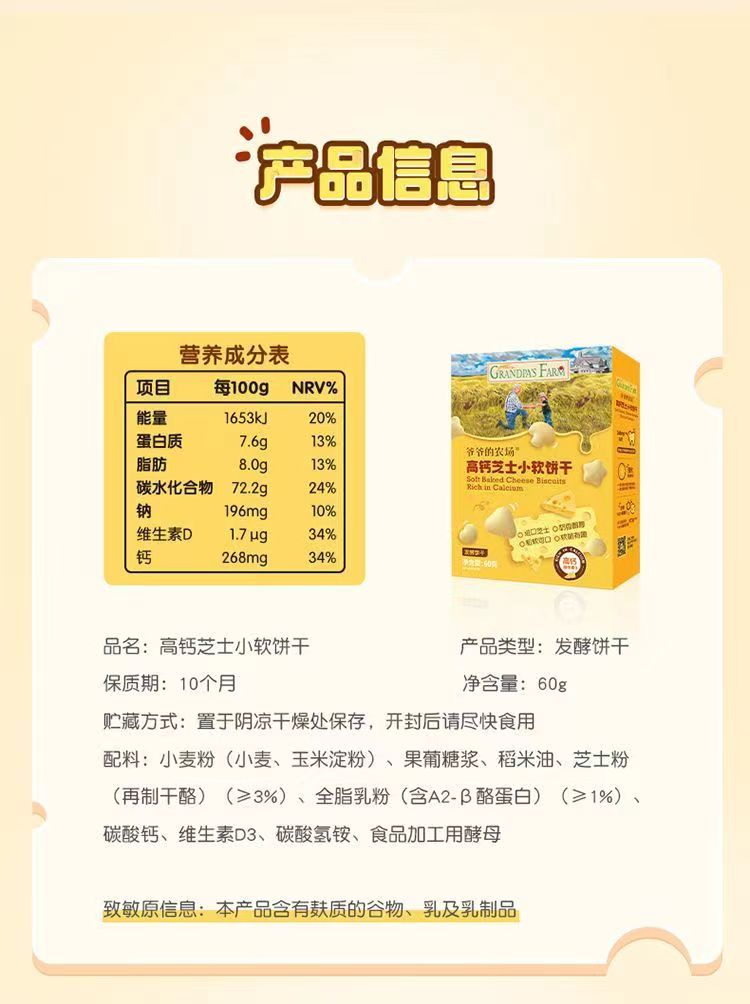 【阶梯满减】 Grandpa's Farm 爷爷的农场 高钙芝士小软饼干60g