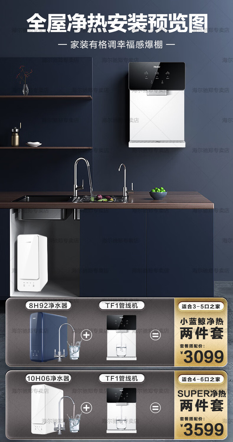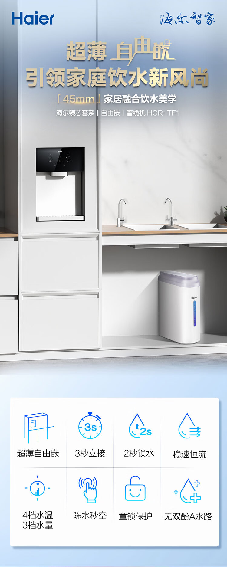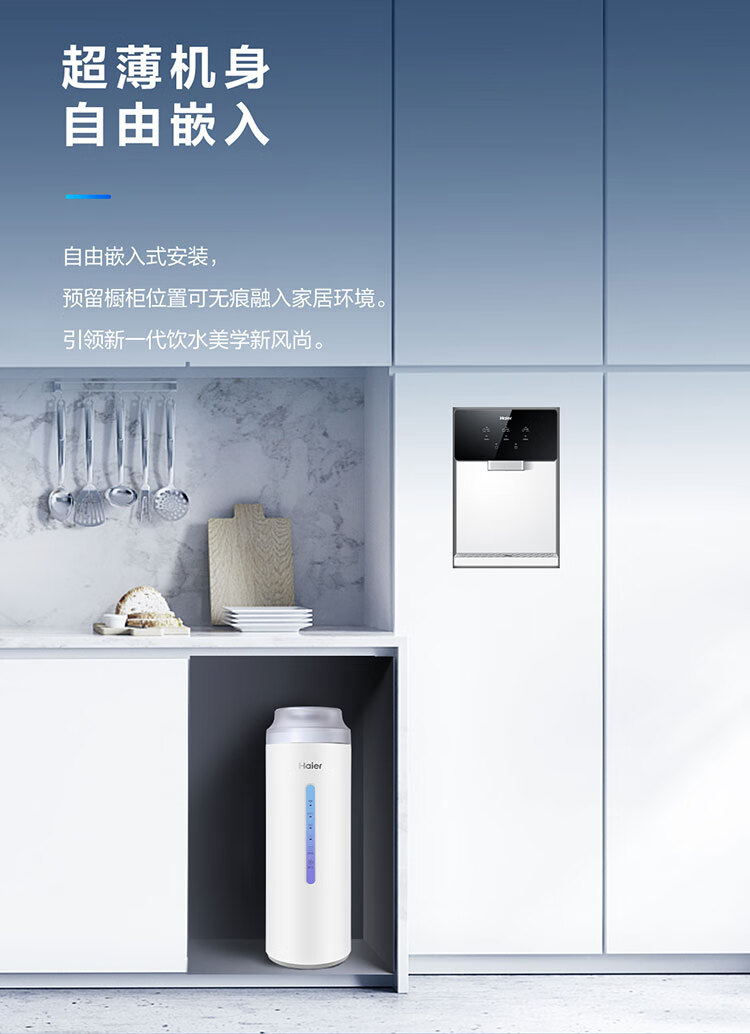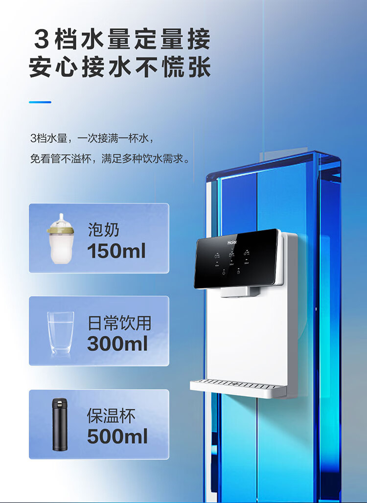 【万人空巷】海尔(Haier) 家用净水器伴侣管线机壁挂式速热饮水机 即热即饮多档调温直饮机HGR-TFV1U1 矿石银6档调温_手机智控