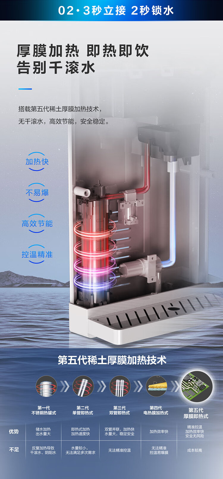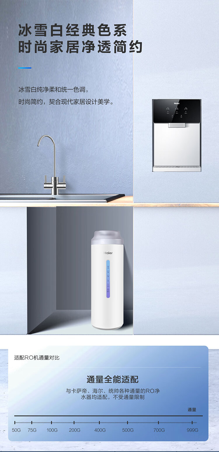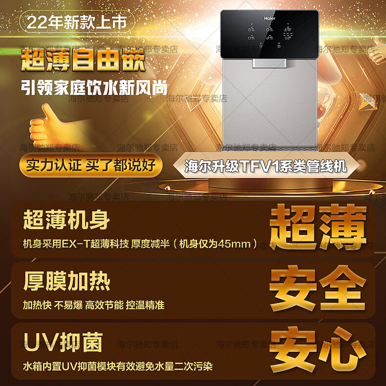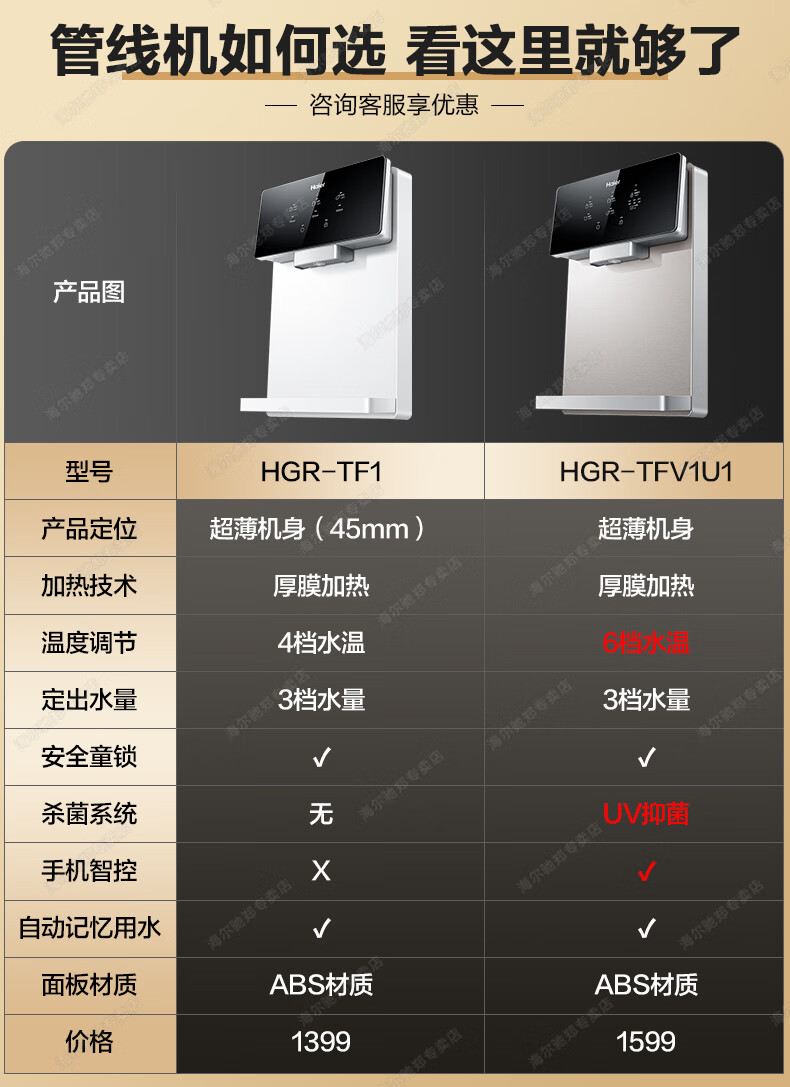 【万人空巷】海尔(Haier) 家用净水器伴侣管线机壁挂式速热饮水机 即热即饮多档调温直饮机HGR-TFV1U1 矿石银6档调温_手机智控