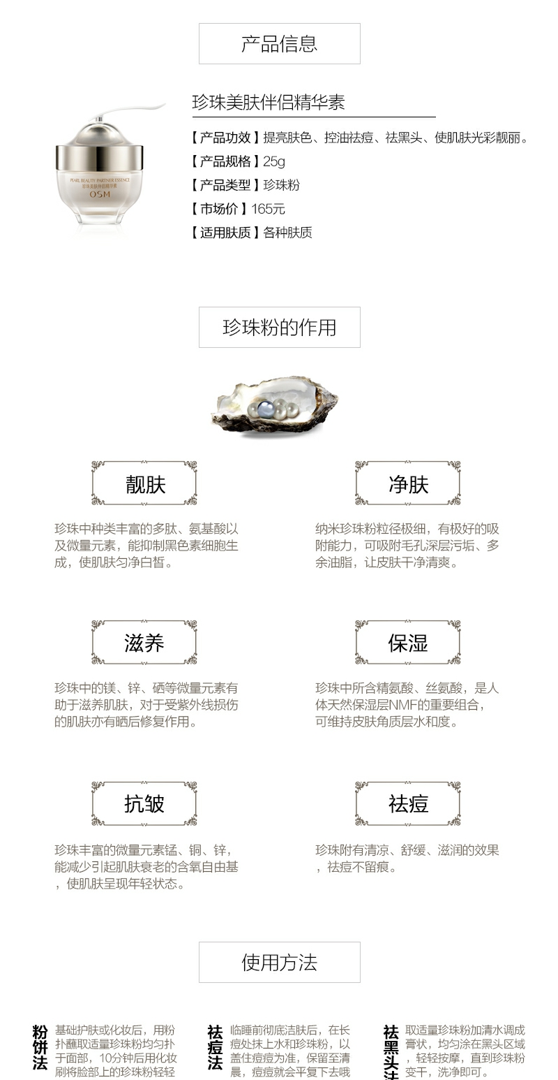 【YZ】欧诗漫珍珠美肤伴侣精华素珍珠粉外用面膜粉天然祛痘印纯美白