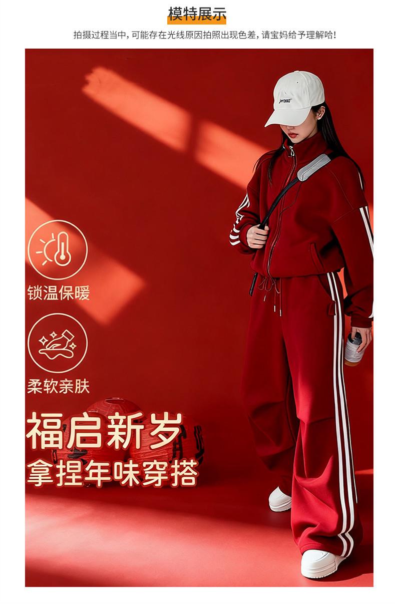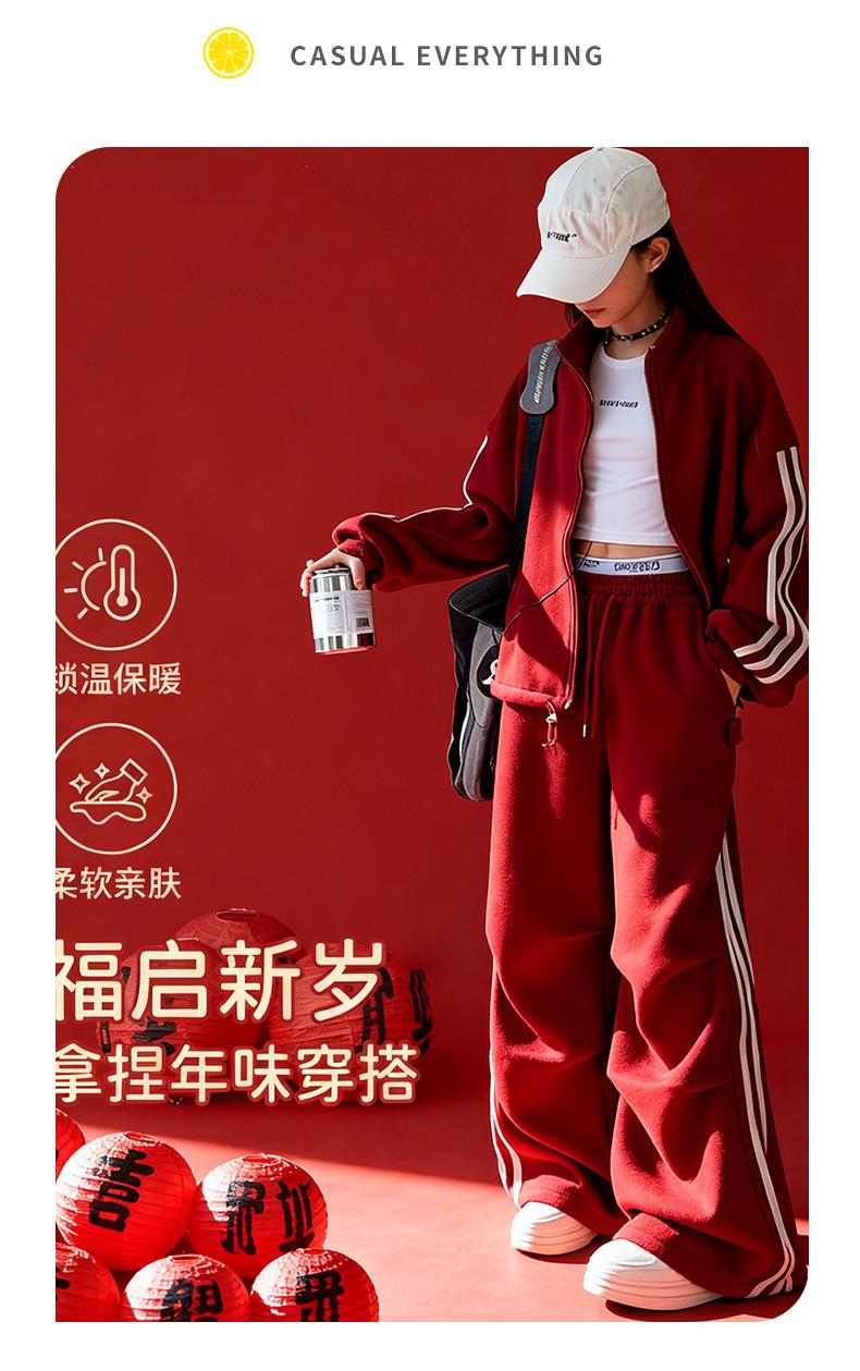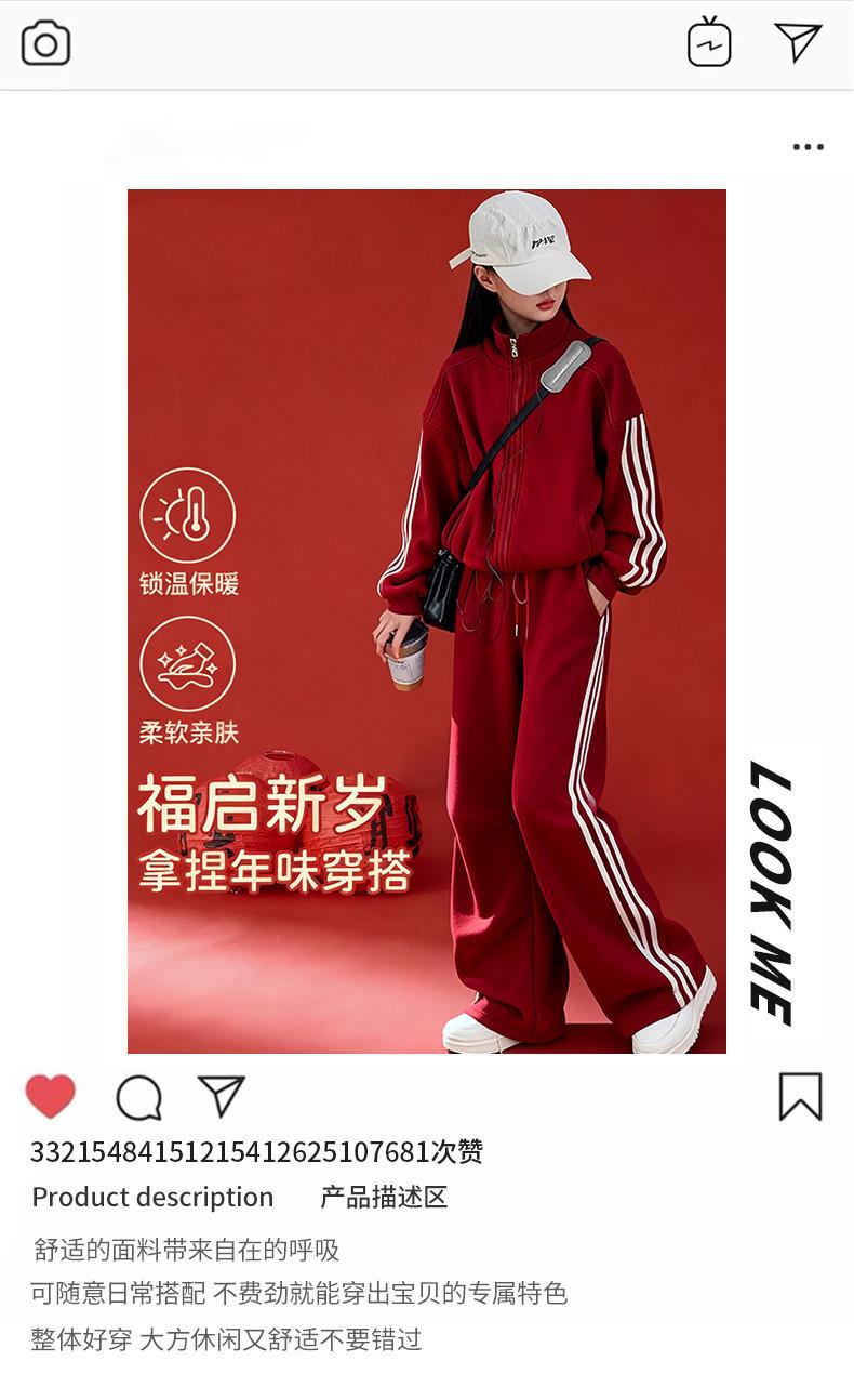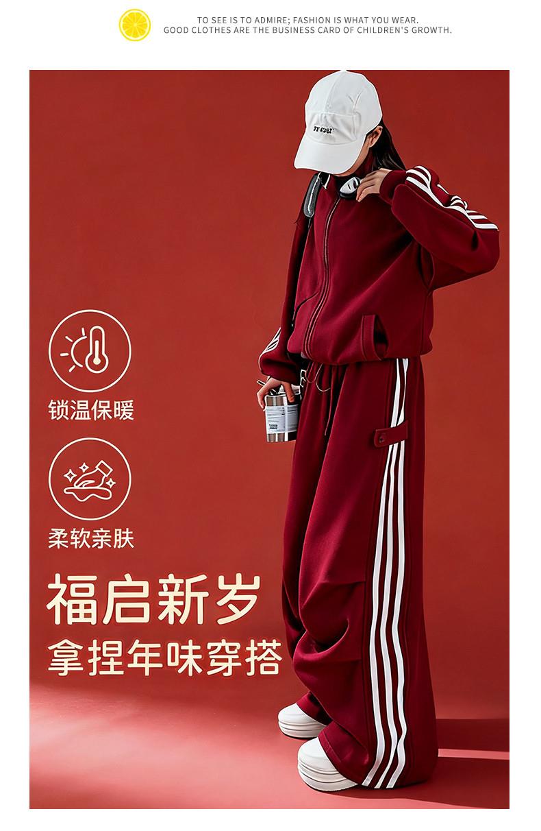 女童秋冬加绒套装韩系穿搭时尚女孩加绒红色喜庆拜年服长裤两件套