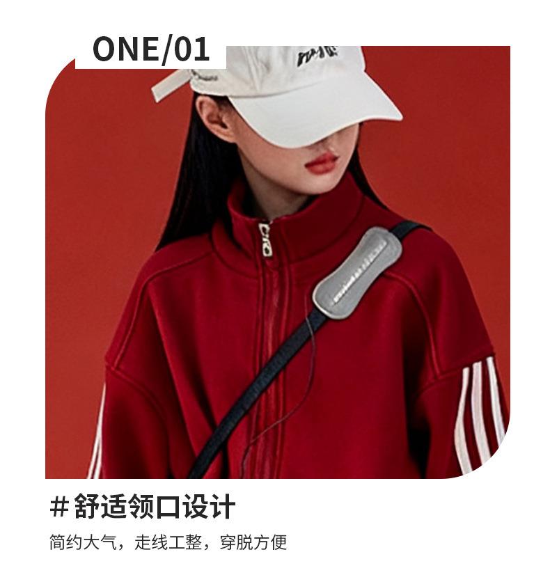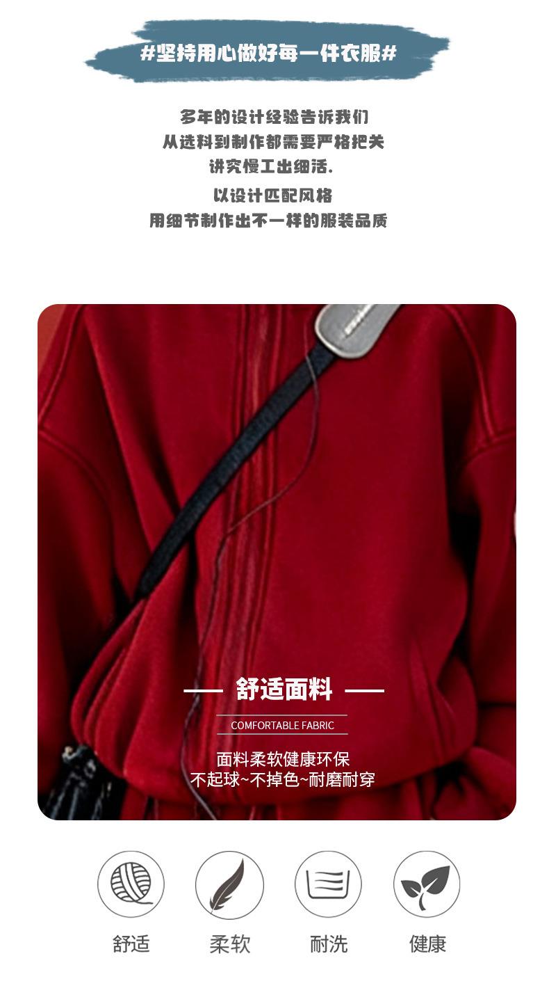 中大儿童新年风红色加绒连帽两件套女童秋冬季新款时髦拜年服套装