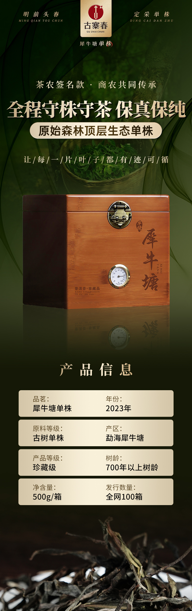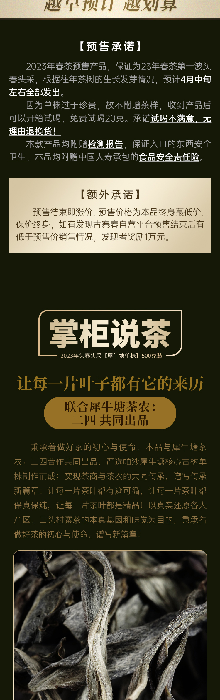 春茶预售【犀牛塘单株】茶农联合出品,一树一成品纯料至尊升级包装为500克更具收藏与送礼价值